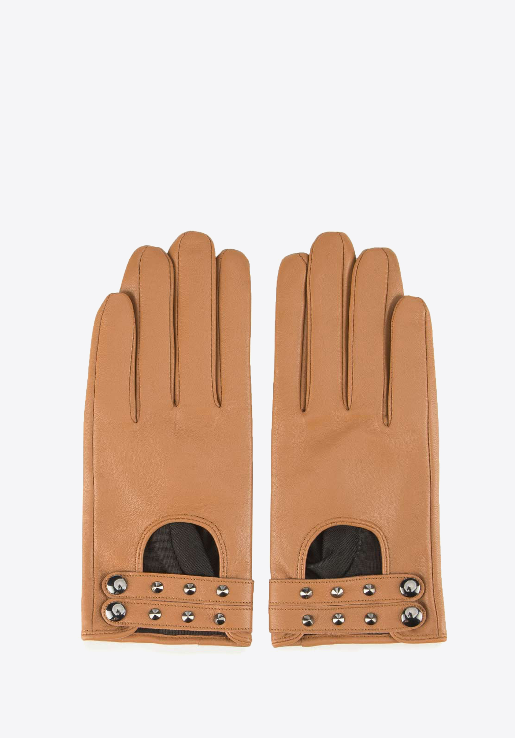 Dámské rukavice jsou vyrobené z nejkvalitnější ovčí kůže. Klasický vzor byl obohacen originálním ornamentem v podobě kulatých cvočků. Pohodlné uzavření se západkou usnadňuje nasazení rukavic. Elegantní povrch dodává výrazu každému dámskému stylu. Model je k dispozici ve dvou barvách.