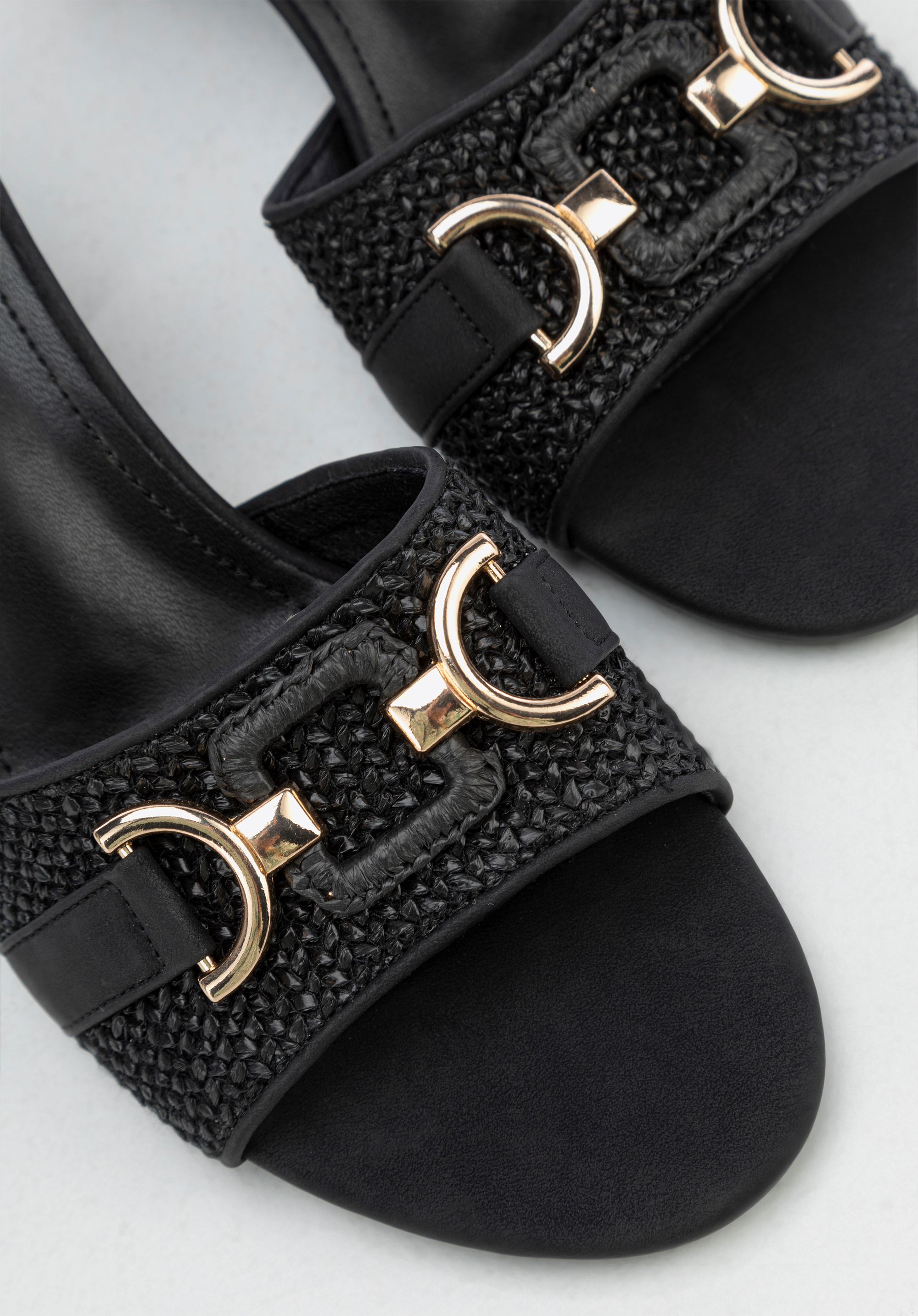 Tyto jedinečné sandály jsou samotnou esencí letní elegance. Jsou vyrobeny z odolného syntetického materiálu s texturou podobnou rafii a spojují rafinovaný styl s funkčností. Nazouvací design s otevřenou špičkou a patou nabízí prodyšnost v horkých dnech, zatímco robustní bloková pata dodává subtilní výšku a celodenní pohodlí.