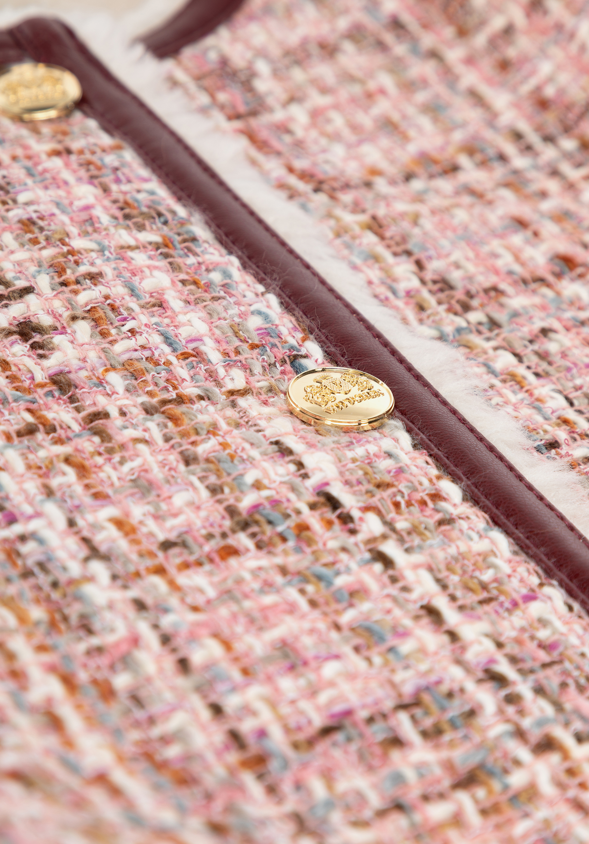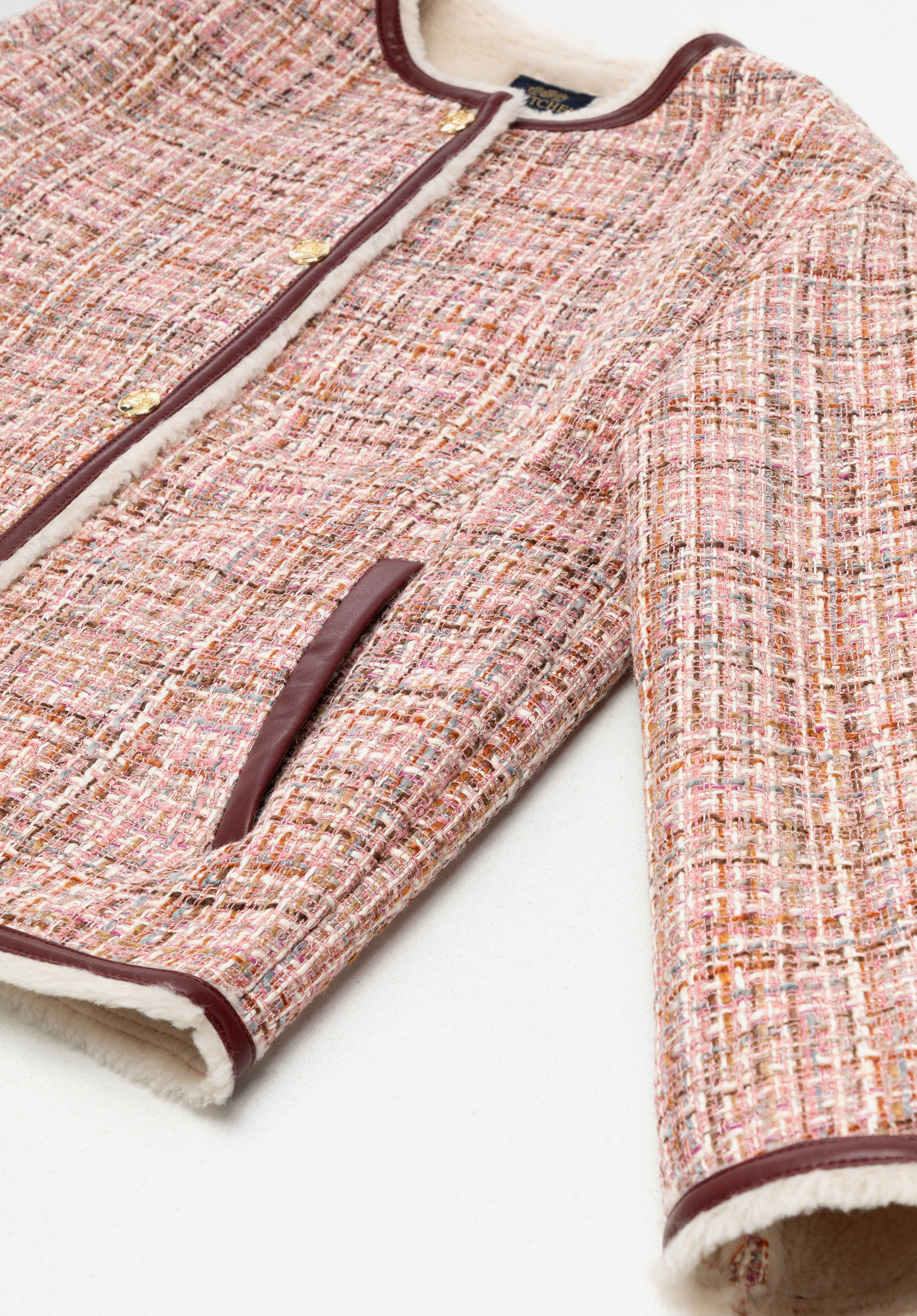 - Vnější materiál : Vysoce kvalitní polyesterový tvíd s bohatou texturou a jemnými vícebarevnými přízemi.