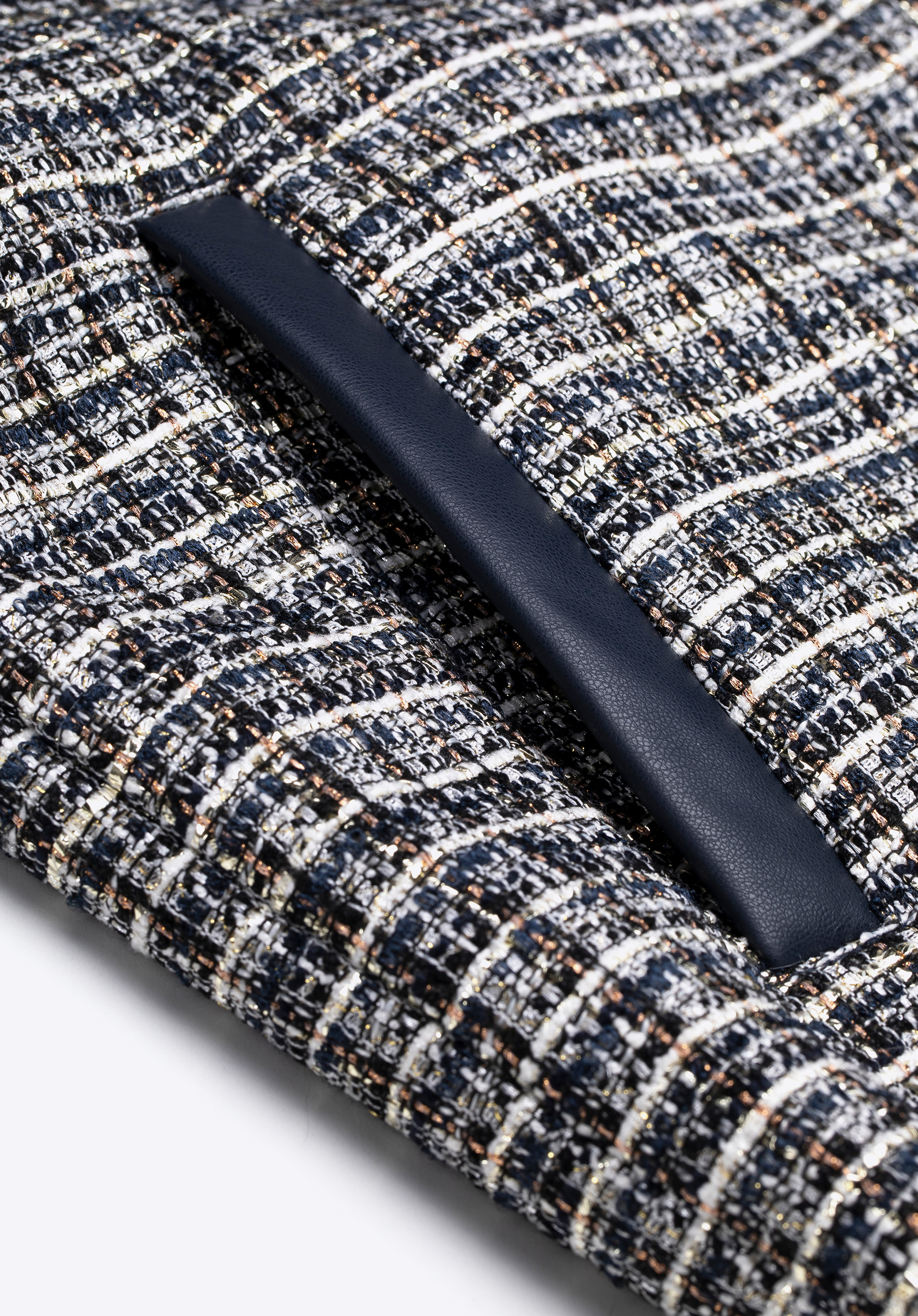 - Vnější materiál : Vysoce kvalitní polyesterový tvíd s bohatou texturou a jemnými vícebarevnými přízemi.