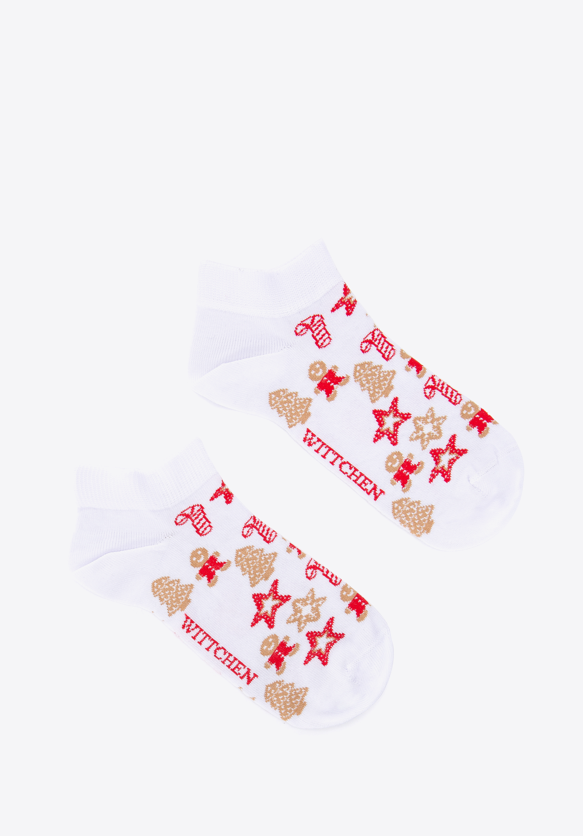 Vzor s ozdobami na vánoční stromeček a perníčky s polevou rozzáří váš každodenní outfit. Tyto ponožky jsou vyrobeny z extrémně jemné na dotek bavlněné směsi pro lepší pružnost.