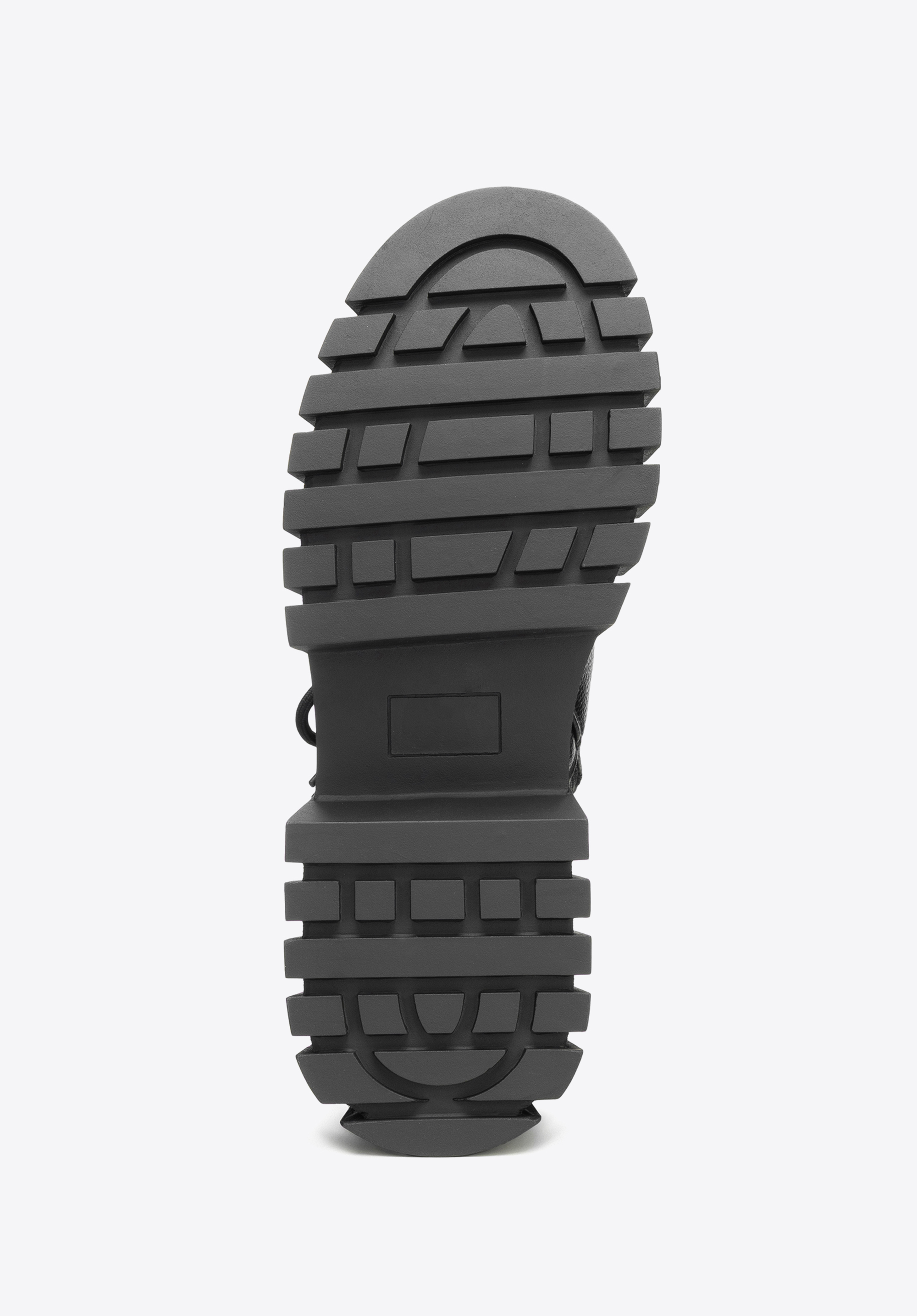 Tyto módní vojenské boty kombinují pohodlí, moderní design a funkčnost. Vyrobeny z umělé kůže a lemovány plyšovou umělou ovčí přízí , poskytují teplo a pohodlí i v nejchladnějším počasí. Boční zip zajišťuje snadné nazouvání a zouvání, zatímco přední tkaničky perfektně padnou. Tyto boty dodají vašemu vzhledu styl a osobitost a zajistí celodenní pohodlí a útulné teplo.