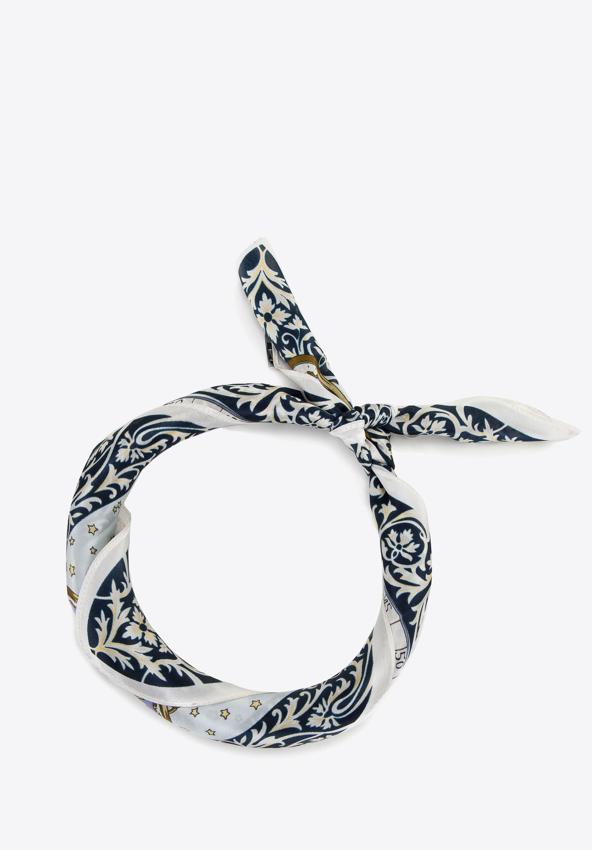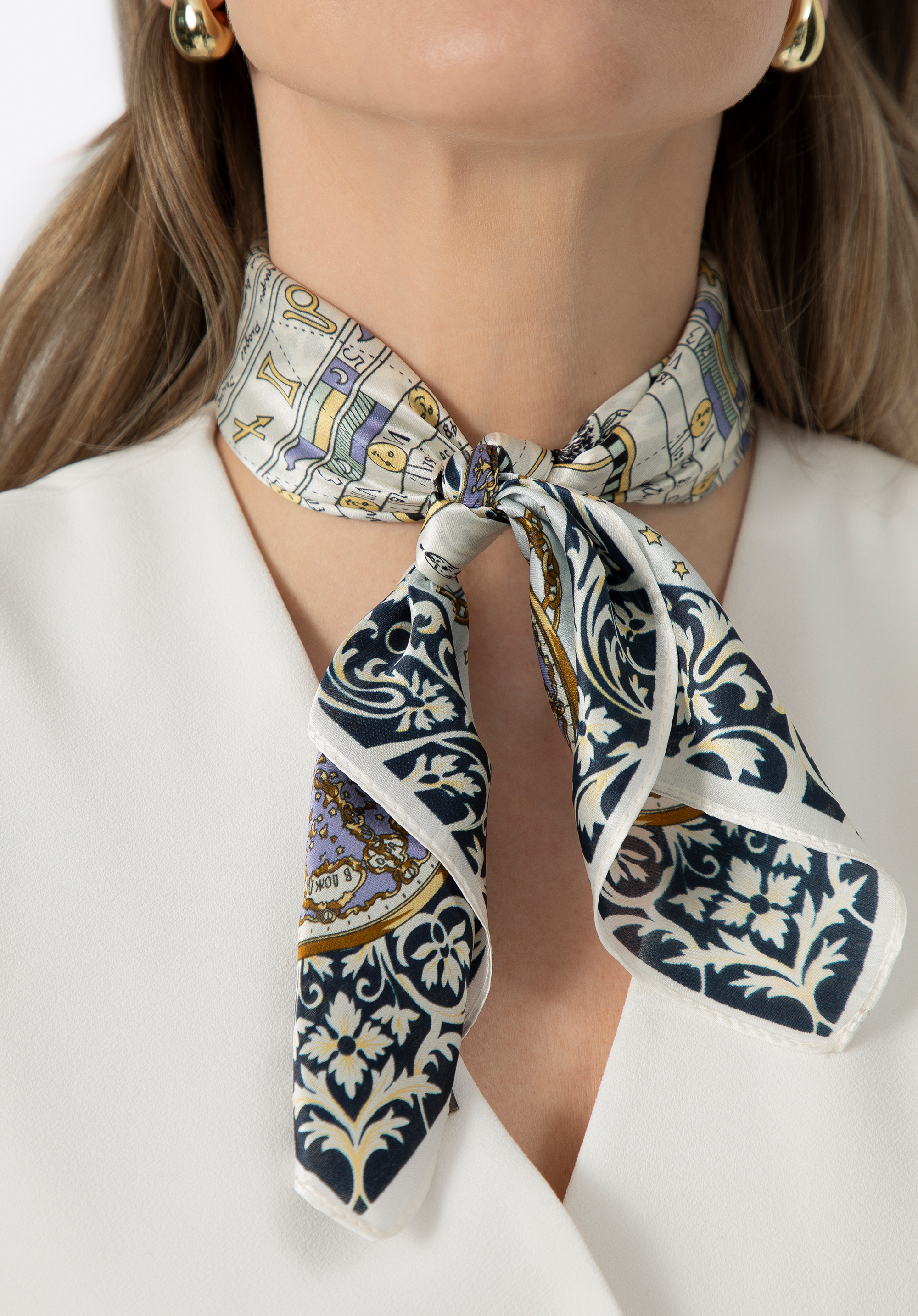 Tento elegantní šátek dodá šik každé ženě. Je vyroben z hladkého hedvábí s jemným leskem. Je lehký a krásně se rouši, takže můžete ho snadno umístit na krku nebo uvázat na rukojeť tašky. Každý vzor vypadá zajímavě jak po rozložení, tak po srolování. Tento model elegantně podtrhne váš styl. Vzorovaný dámský hedvábný šátek je nadčasovým doplňkem, který bude se hodit při mnoha příležitostech.
