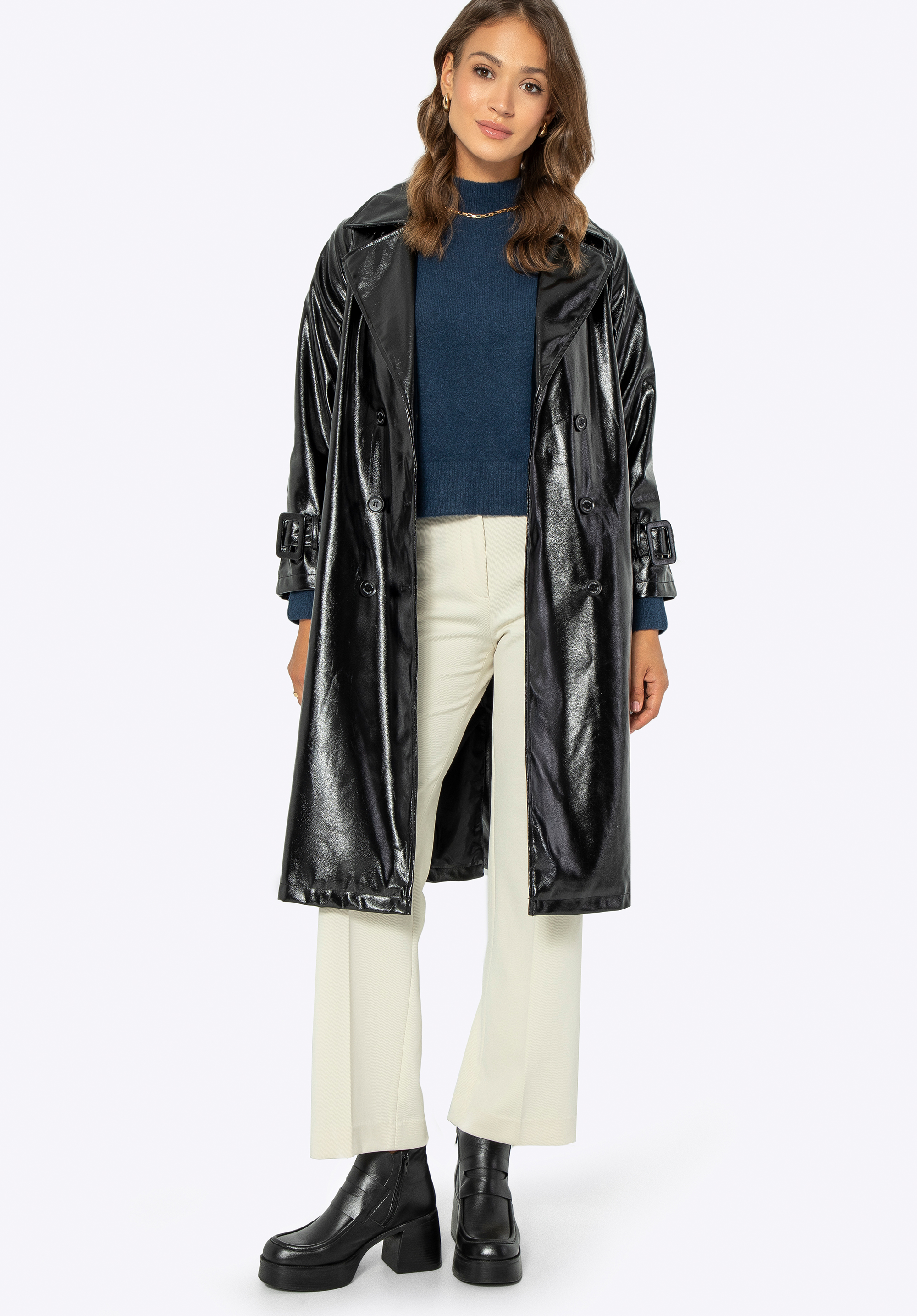 - Design: Stylový široký límec dodává kabátu charakter a zdůrazňuje eleganci, zatímco ochrana proti dešti vzadu dodává kabátu výjimečný šarm a klasický styl.
