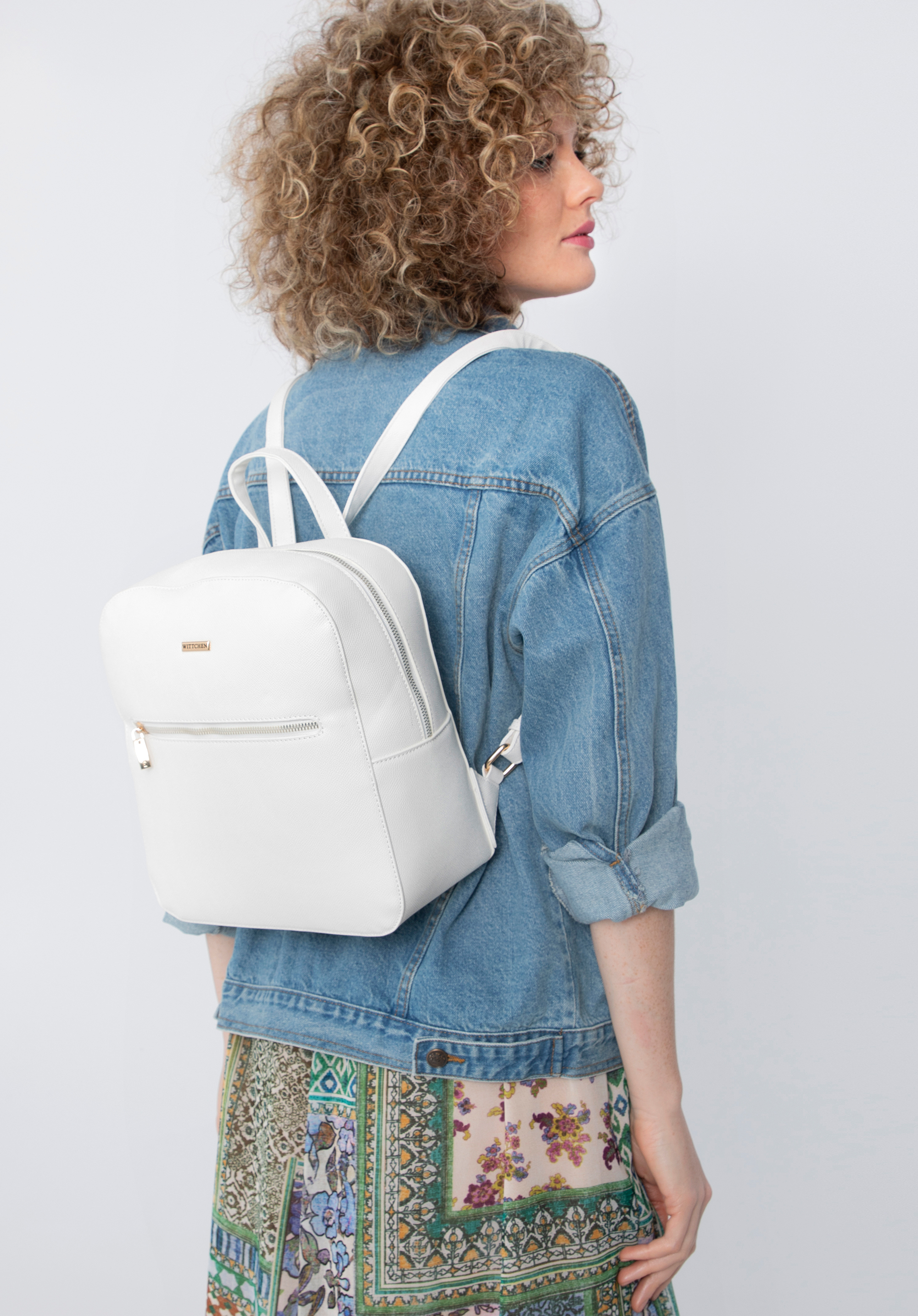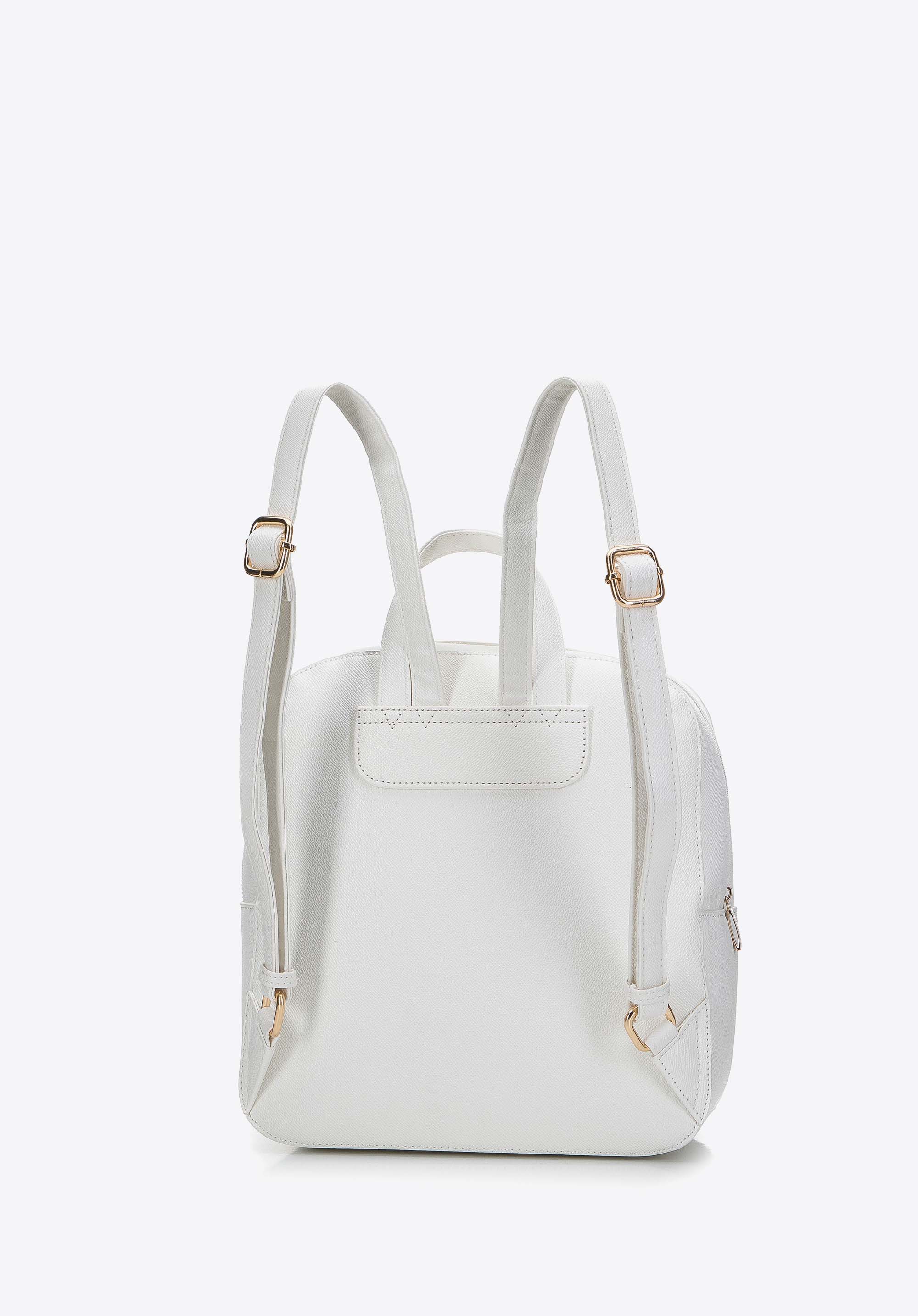Tento nadčasový batoh je skvělou volbou pro milovníky minimalismu. Jednoduchý tvar doplňuji lesklé kovové prvky zlaté barvy. Dovnitř vejde peněženka, malá kosmetická taška, kalendář, náhradní šátek a pár drobností - ideální na víkendový výlet, piknik nebo do kina. Je vyroben z vysoce kvalitní ekologické kůže s originální texturou. Jednoduchý dámský batoh z ekologické kůže je univerzálním doplňkem, který můžete nosit mnoho let.