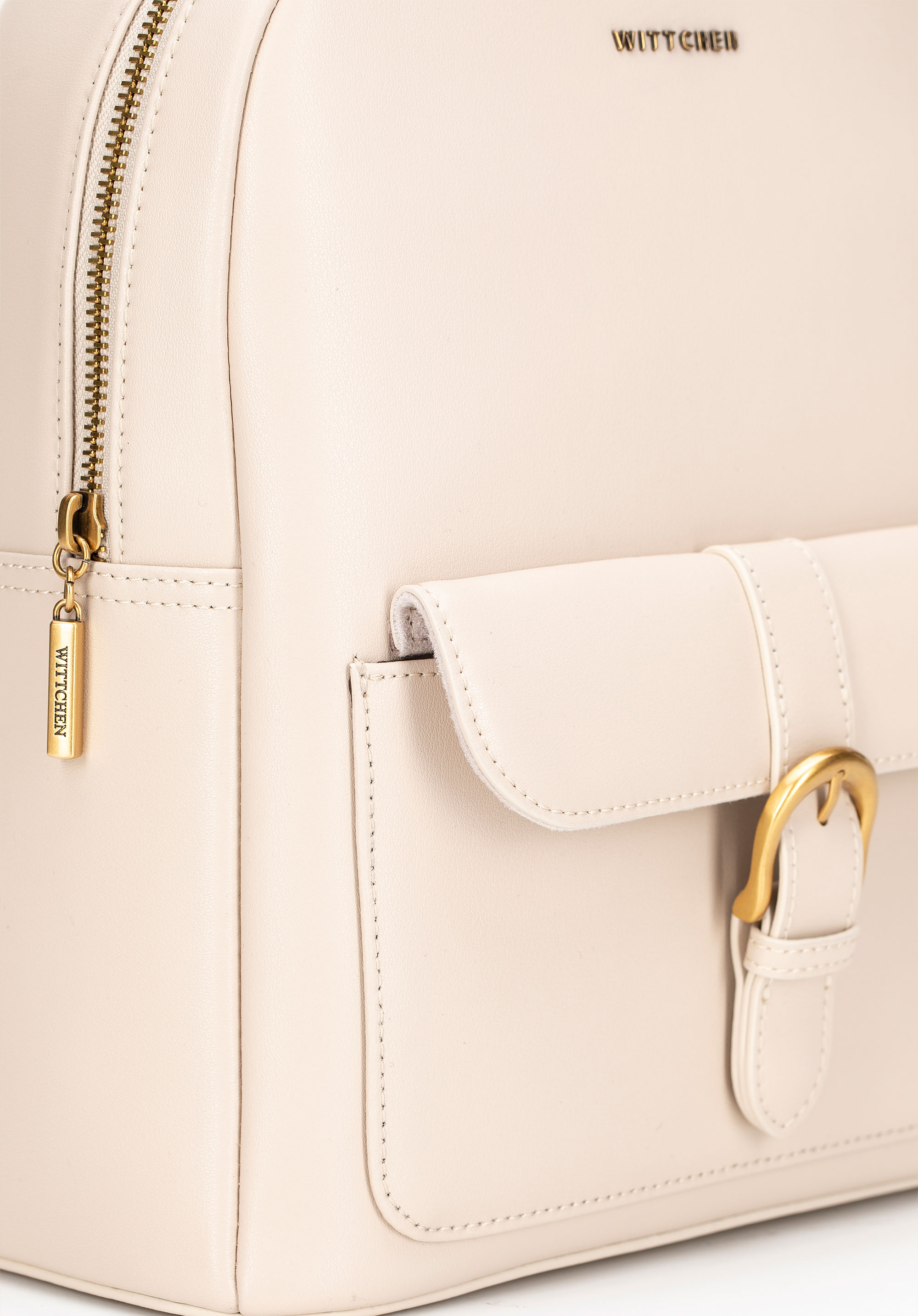- Materiál: Přírodní kůže, elegantní a odolná, s detaily z mikrovlákna na rukojeti, popruzích, ozdobné klopě a vnitřním lemování, které zajišťují lehkost, pohodlí a každodenní praktičnost.