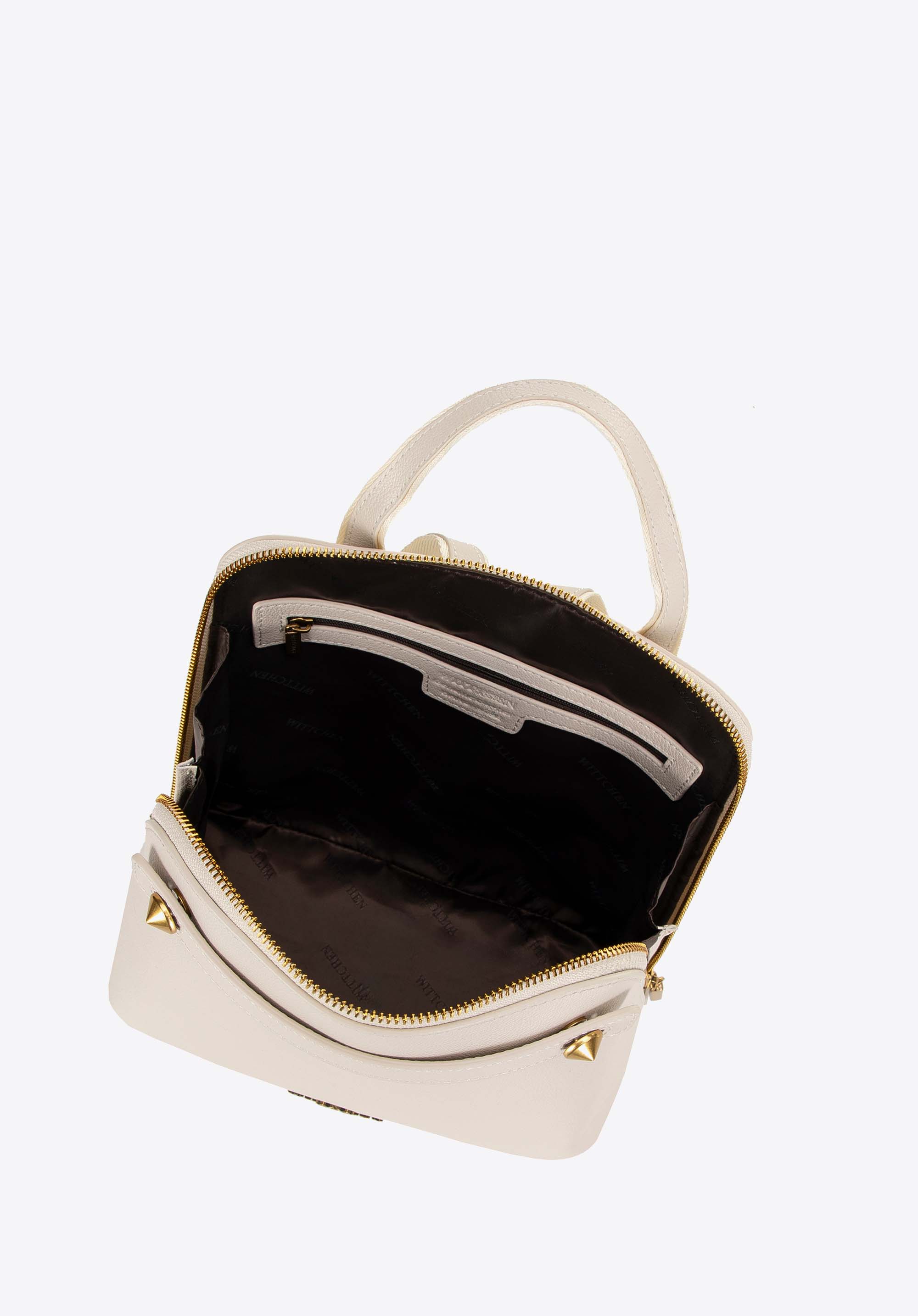 Tento jedinečný lichoběžníkový batoh je perfektním řešením pro ženy, které hledají kombinaci stylu a funkčnosti. Vyroben z vysoce kvalitní přírodní kůže, zajišťuje odolnost a nadčasový elegantní vzhled, který vydrží mnoho sezón. Díky širokému otevírání je každodenní používání batohu mimořádně pohodlné a ozdobné nýty a popruh na přední straně mu dodávají charakter, který obohatí jakýkoli styling.