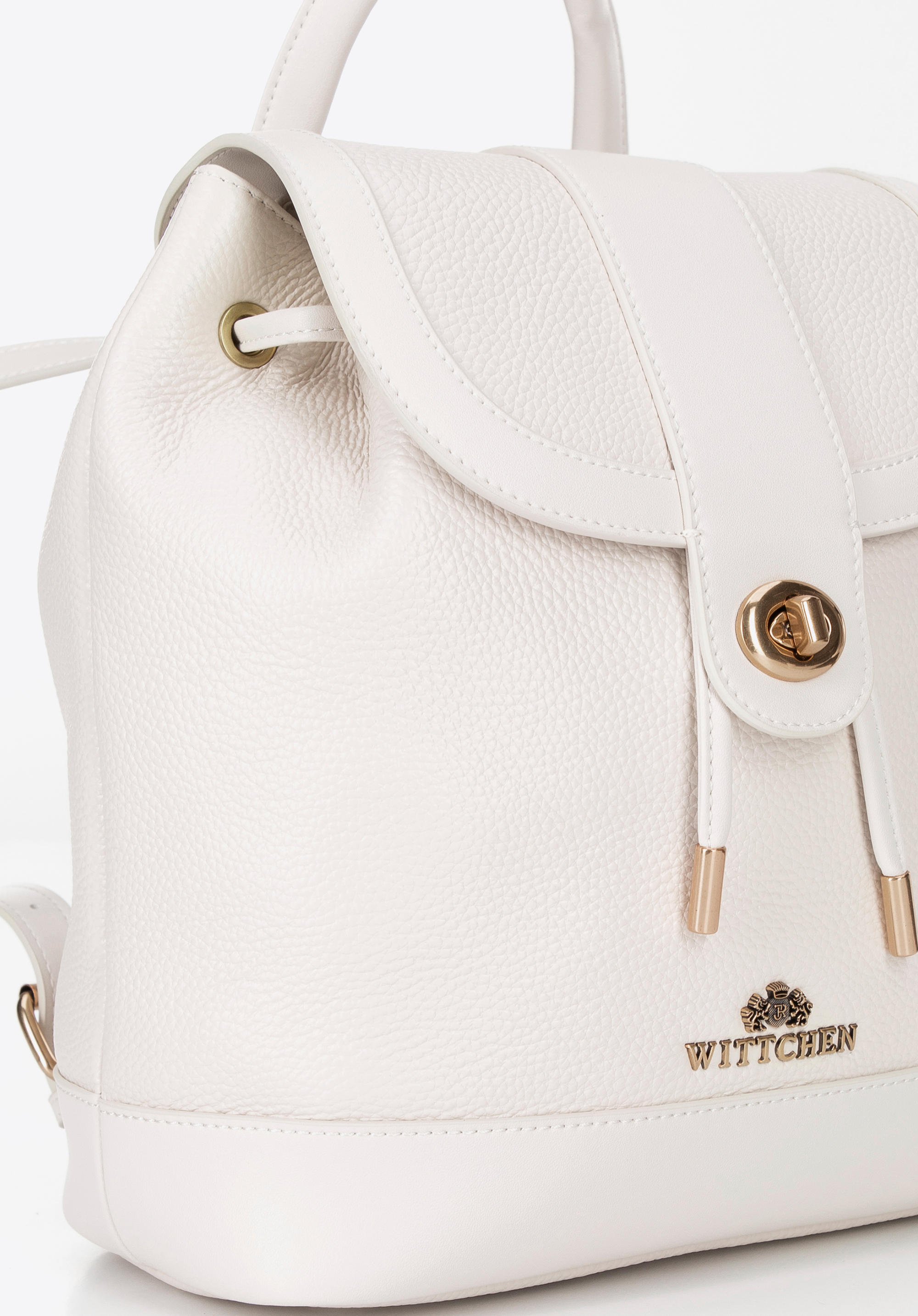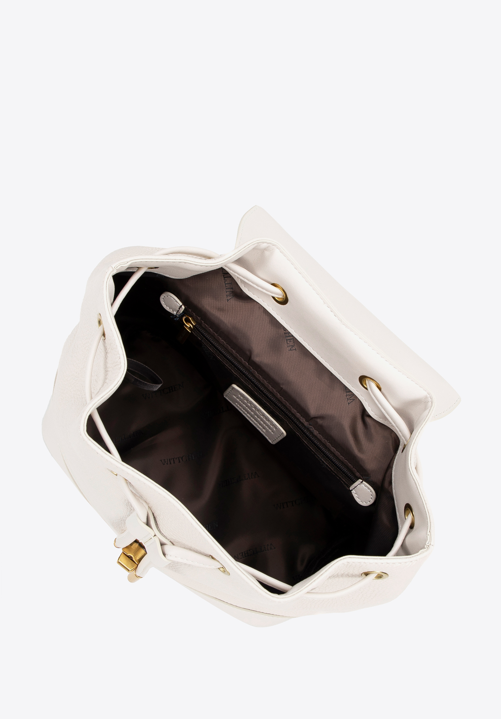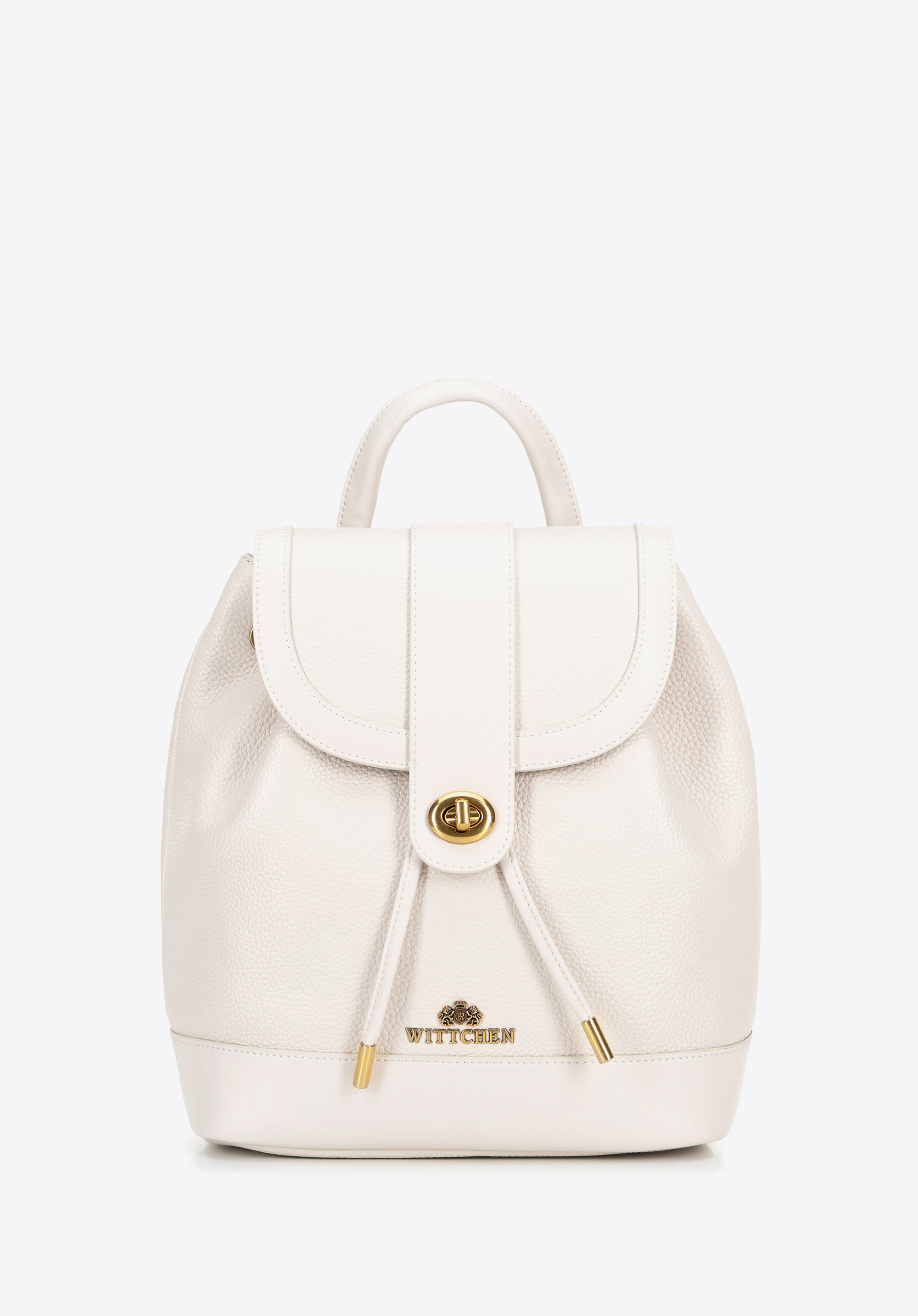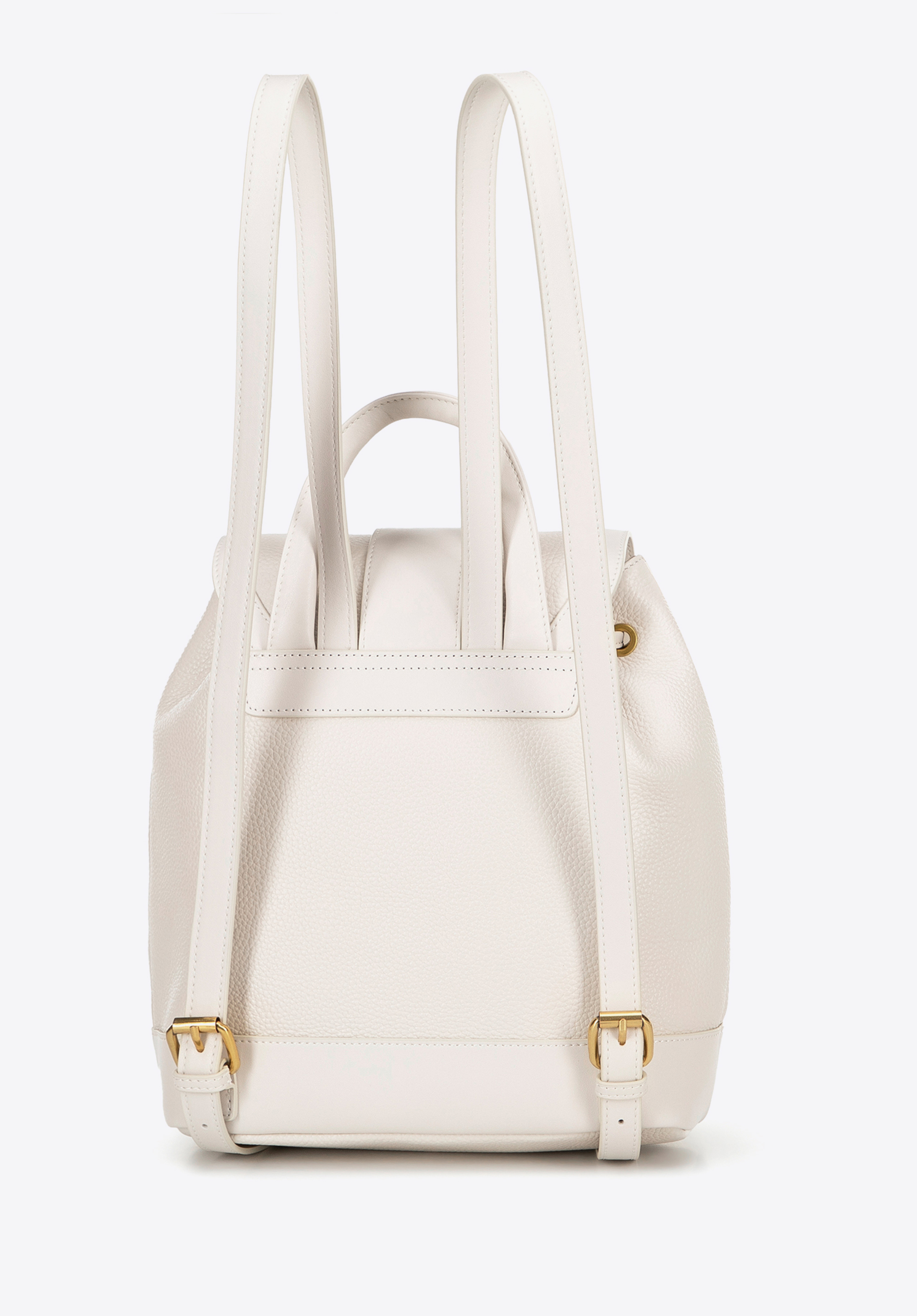 Hledáte batoh, který spojuje eleganci s výhodami? Tento model je definicí stylového minimalismu! Vyrobený z přírodní kůže, zrnité a matné, zaujme svou strukturou i designem. Klopa s otočnou sponou mu dodává na jedinečnosti, a nastavitelné poruhy a praktický úchyt poskytují komfort při nošení. Uprostřed se nachází dokonale zorganizovaná komora – dvě kapsy, z toho jedna na zip, pomáhající udržovat pořádek v každodenních maličkostech.