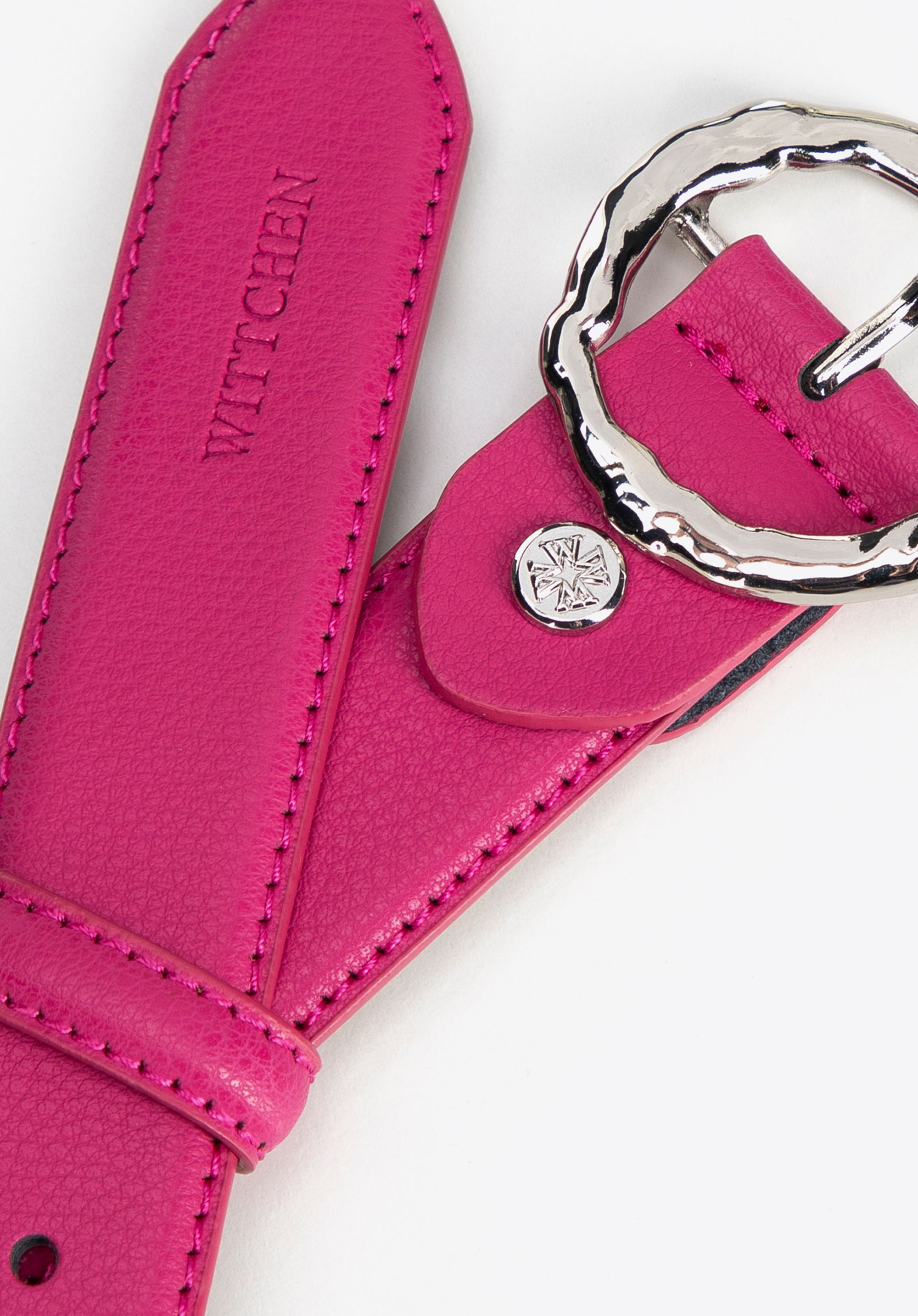 Dámský růžový opasek z přírodní kůže s lesklou sponou