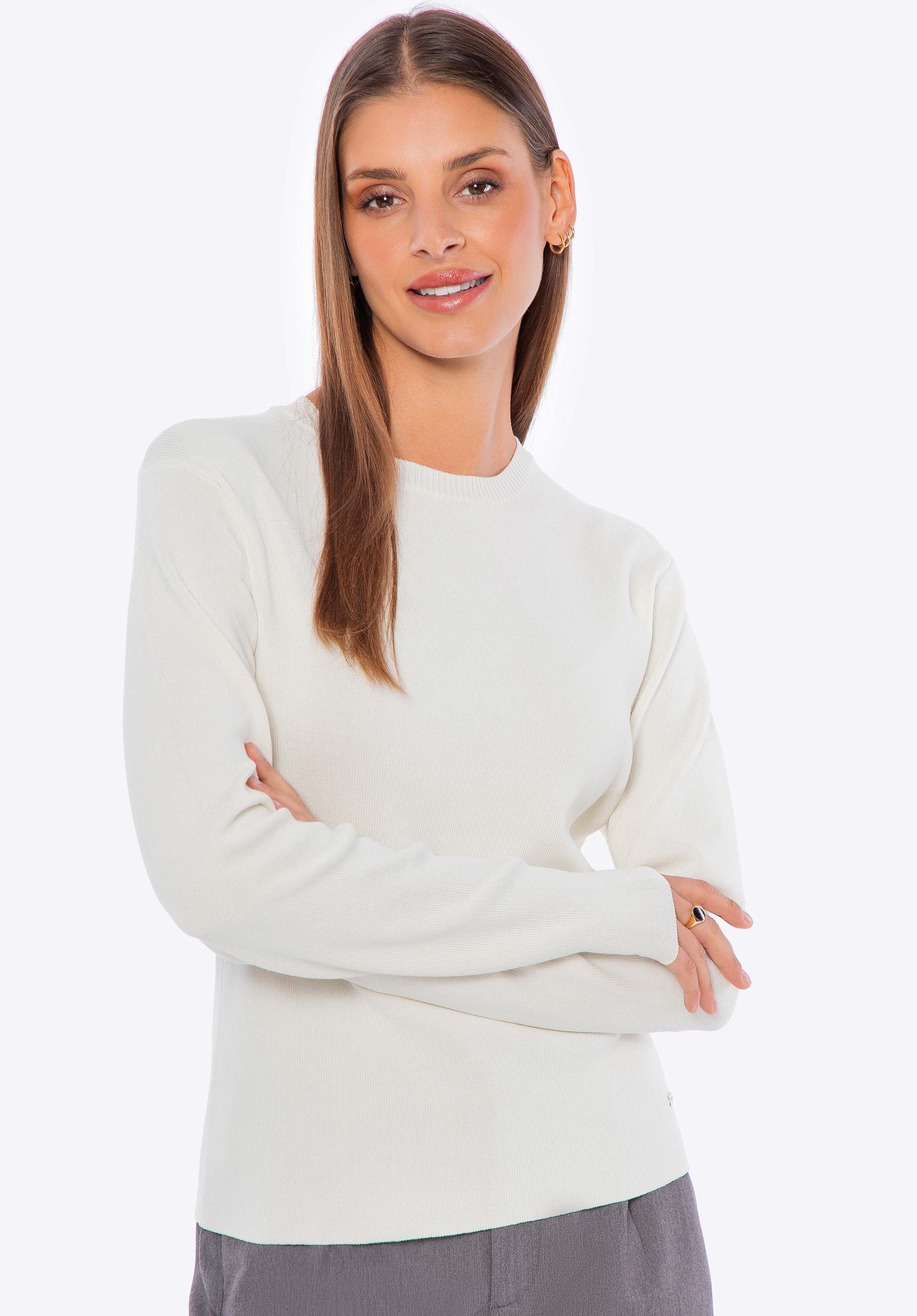 Dámský svetr ze směsi viskózy a nylonu Barva: krémová