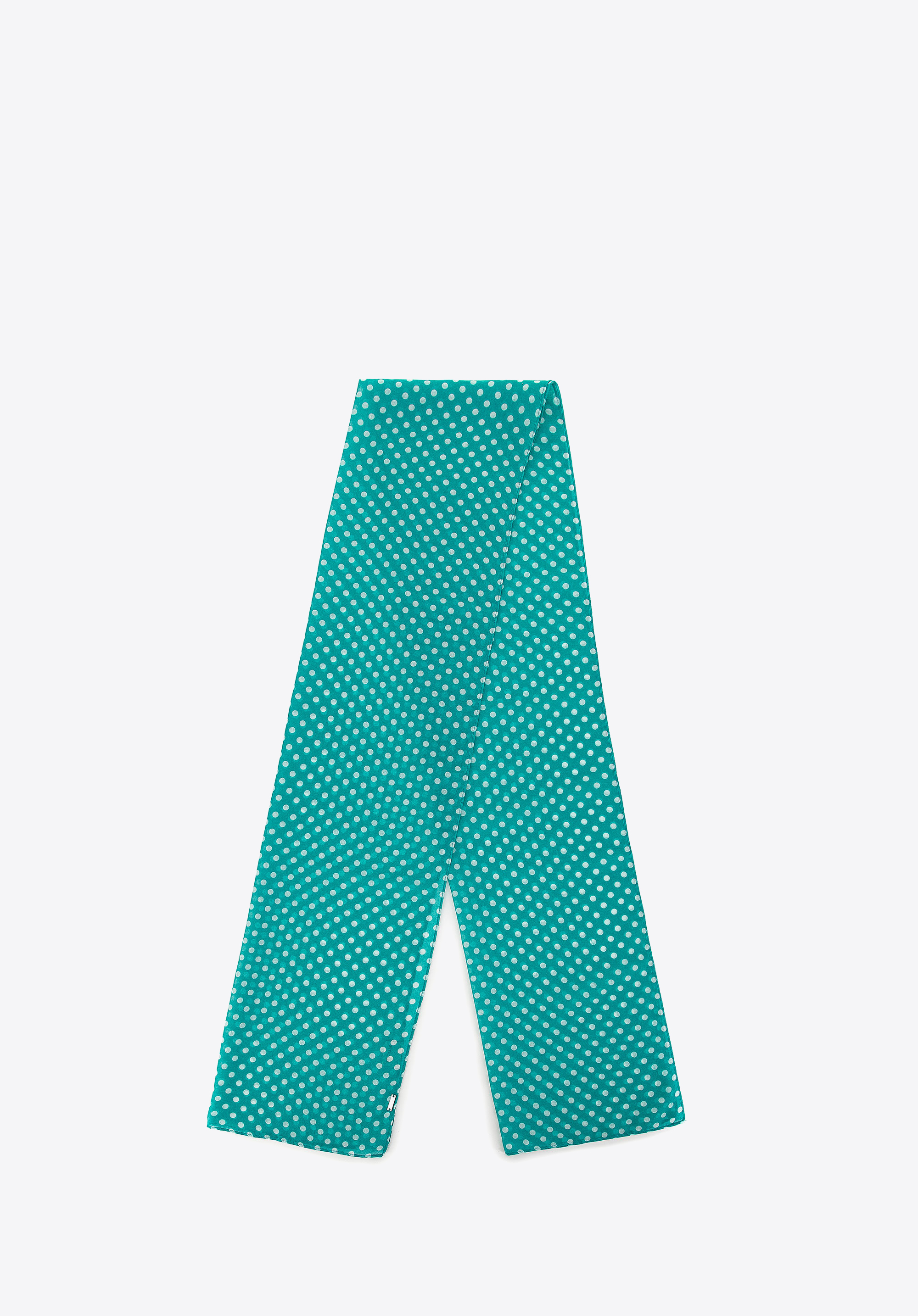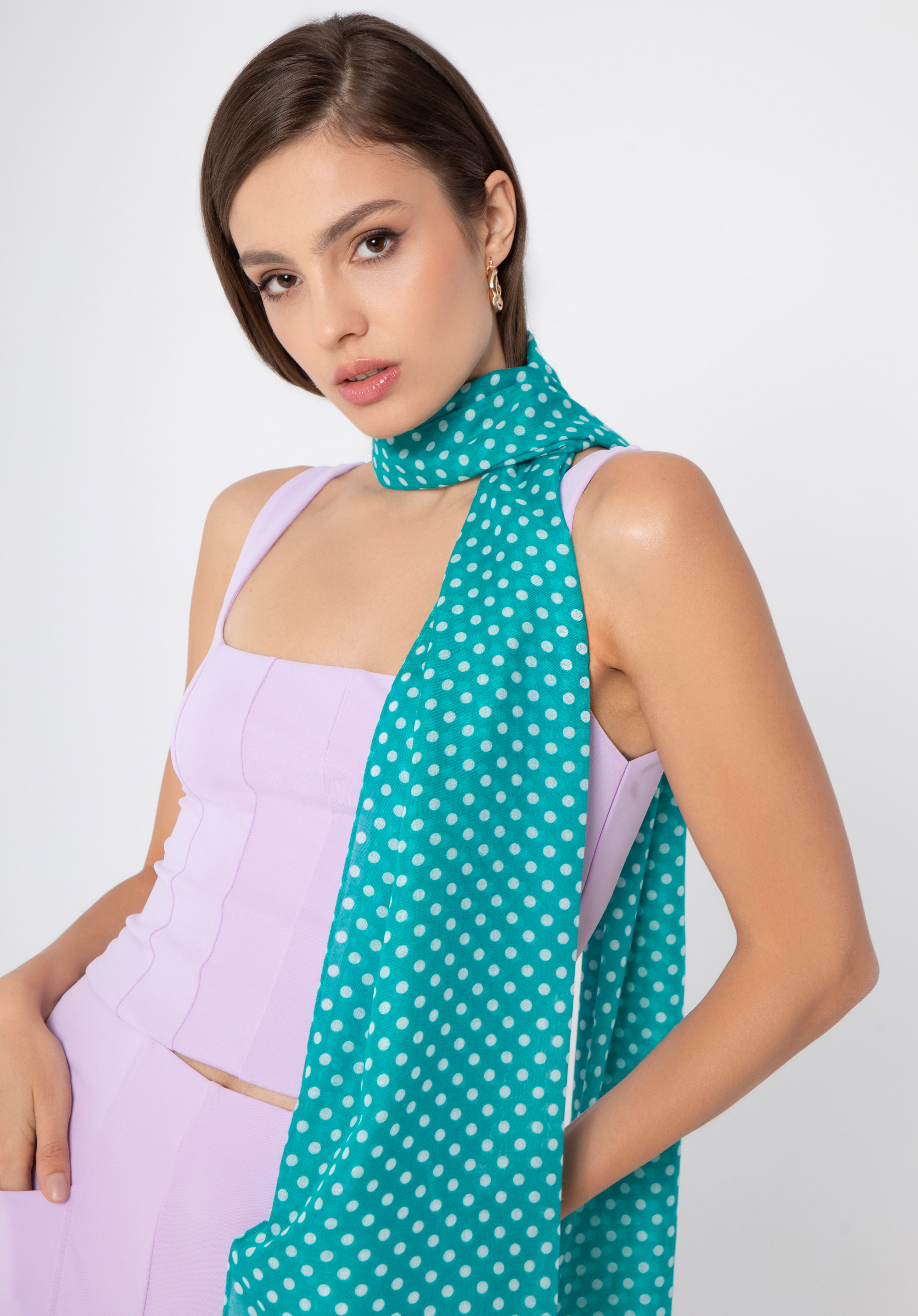 Puntíkovaný šátek je nejen praktickým, ale i stylovým doplňkem. Klasický módní vzor dodá vám eleganci a lehkost. Skvěle bude se hodit k letnímu a jarnímu stylu. Je velmi tenký a příjemný na dotek a jeho textura umožňuje jeho různé skládání a aranžování.