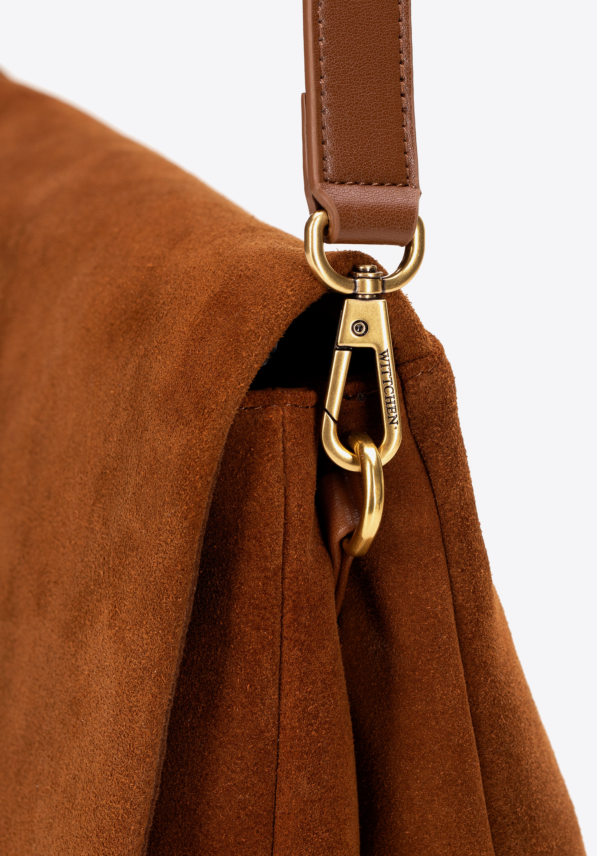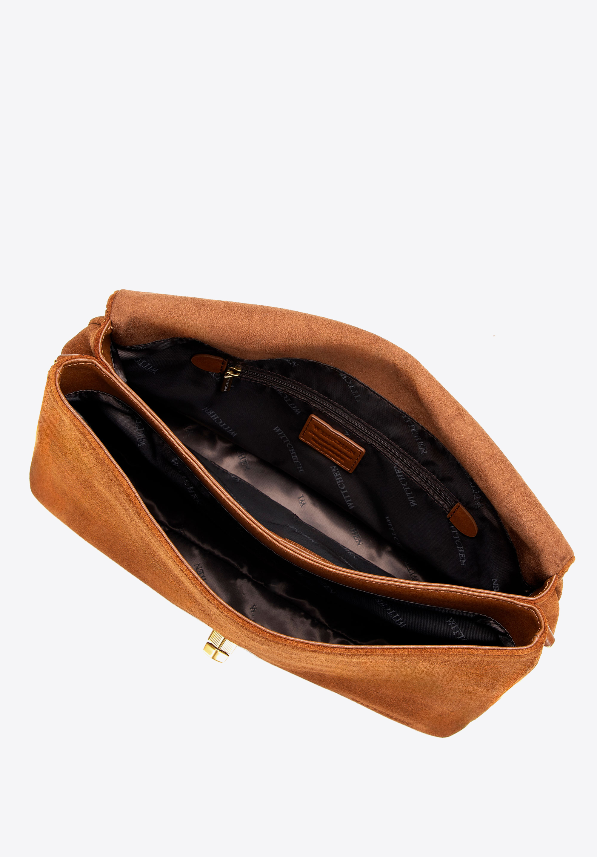 Velká semišová crossbody kabelka – elegance uzavřená ve větším provedení