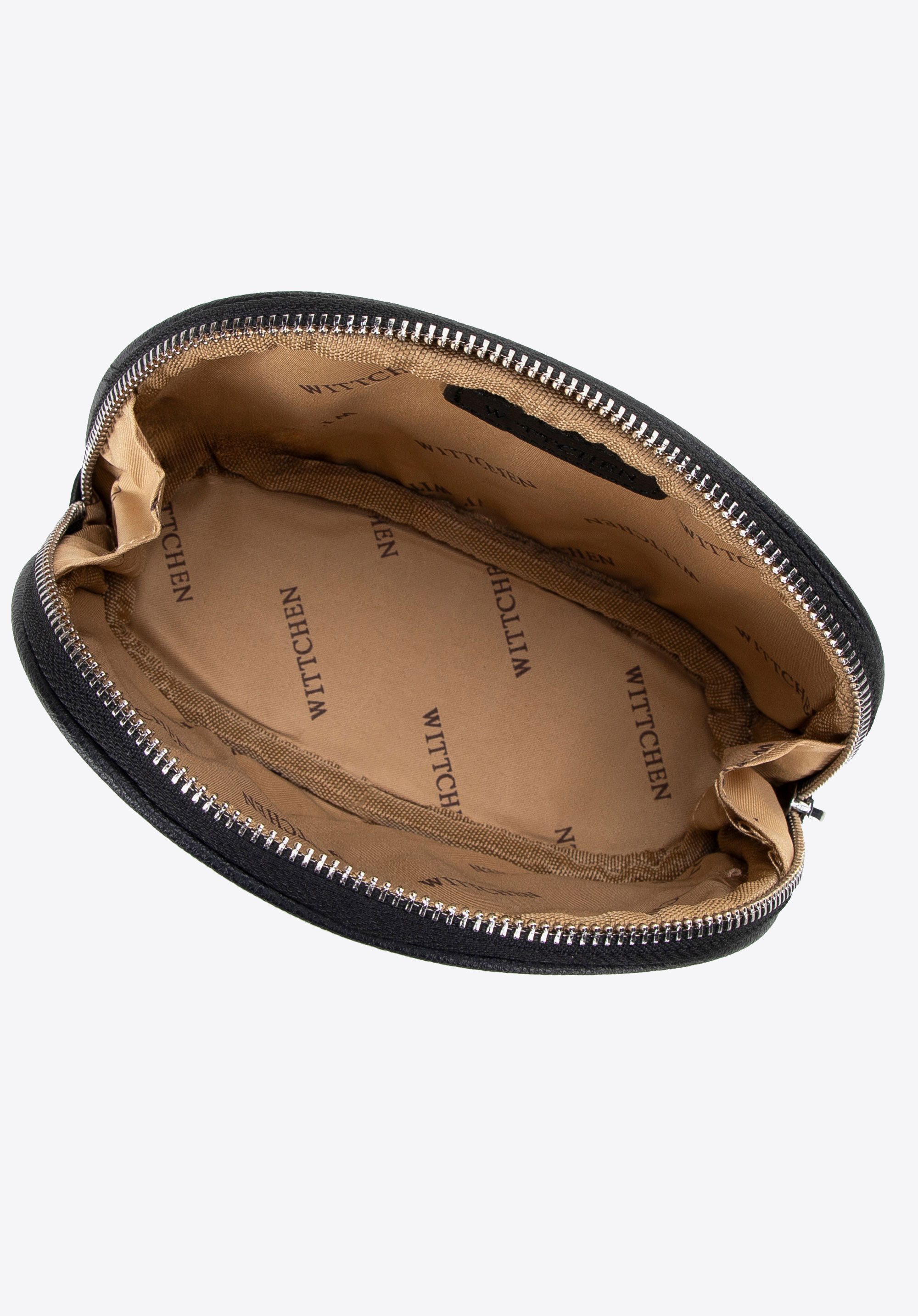 Tato kompaktní dámská kosmetická taška dokonale vyhovuje potřebám moderní ženy. Vyrobena z nejkvalitnějšího polyuretanu, zaručuje odolnost a vysokou odolnost proti nečistotám a poškození během používání. Její unikátní půlkruhový tvar, decentní ozdobné prošívání a logo WITTCHEN na štítku činí z ní nejen praktický, ale i stylový doplněk.