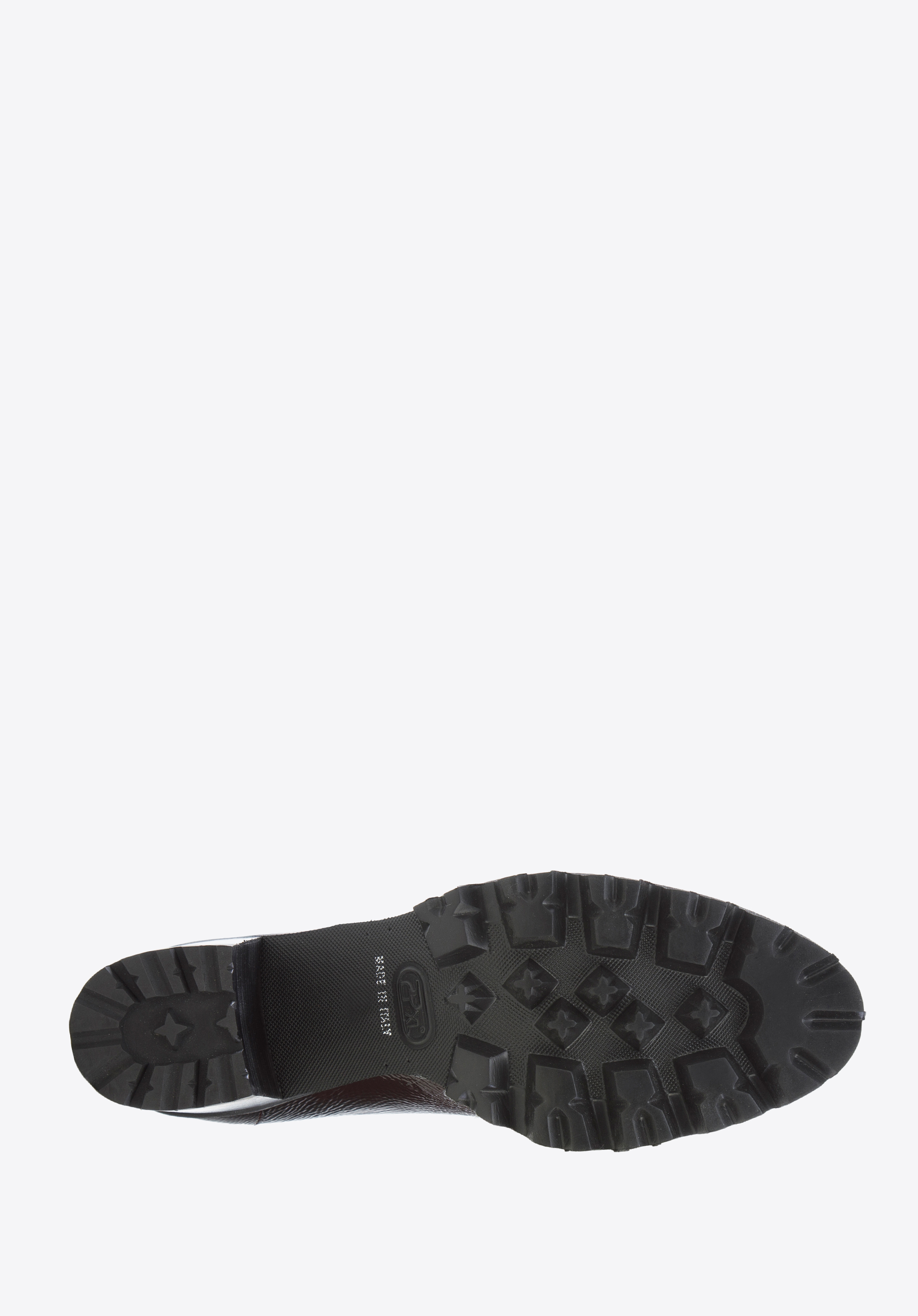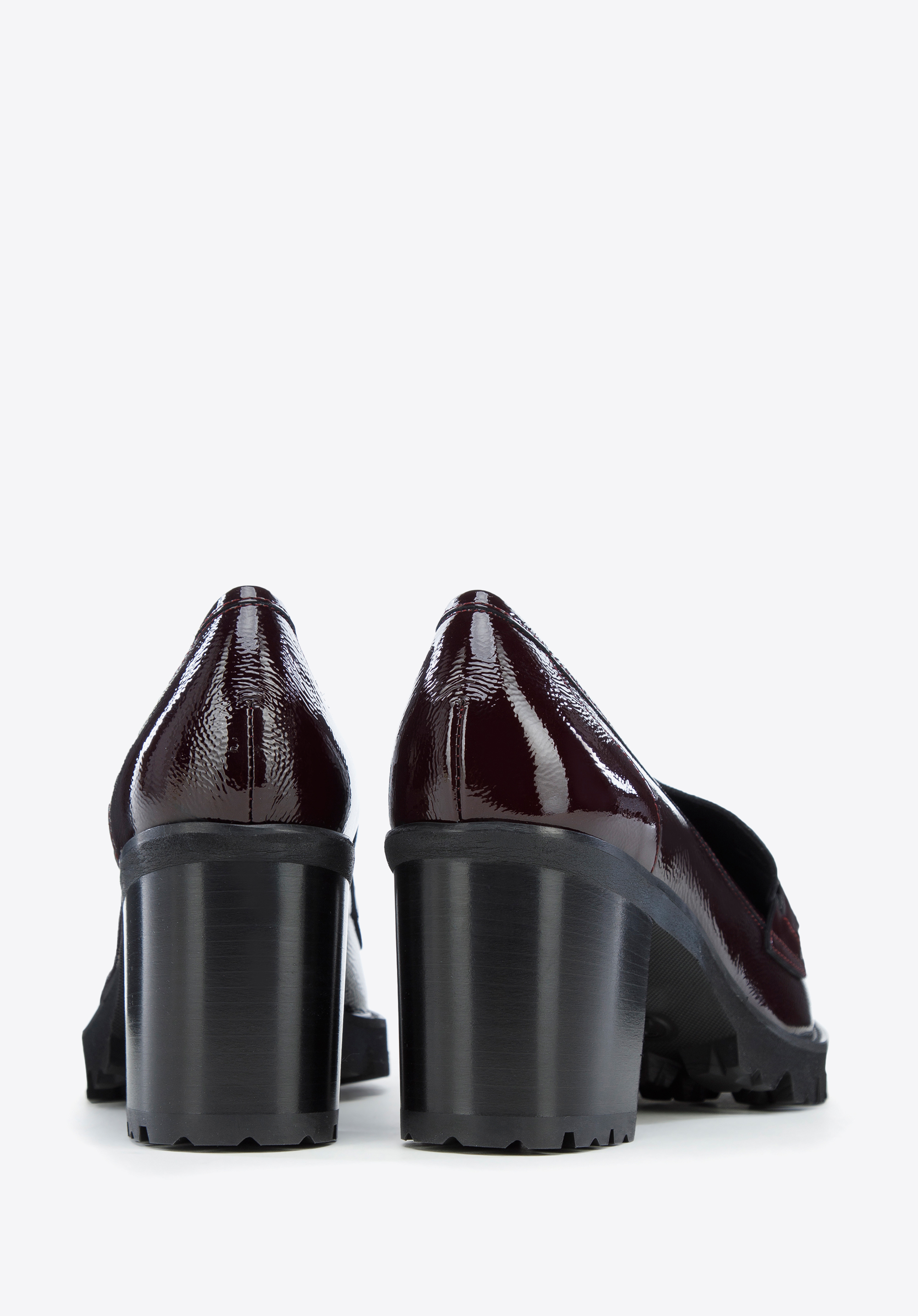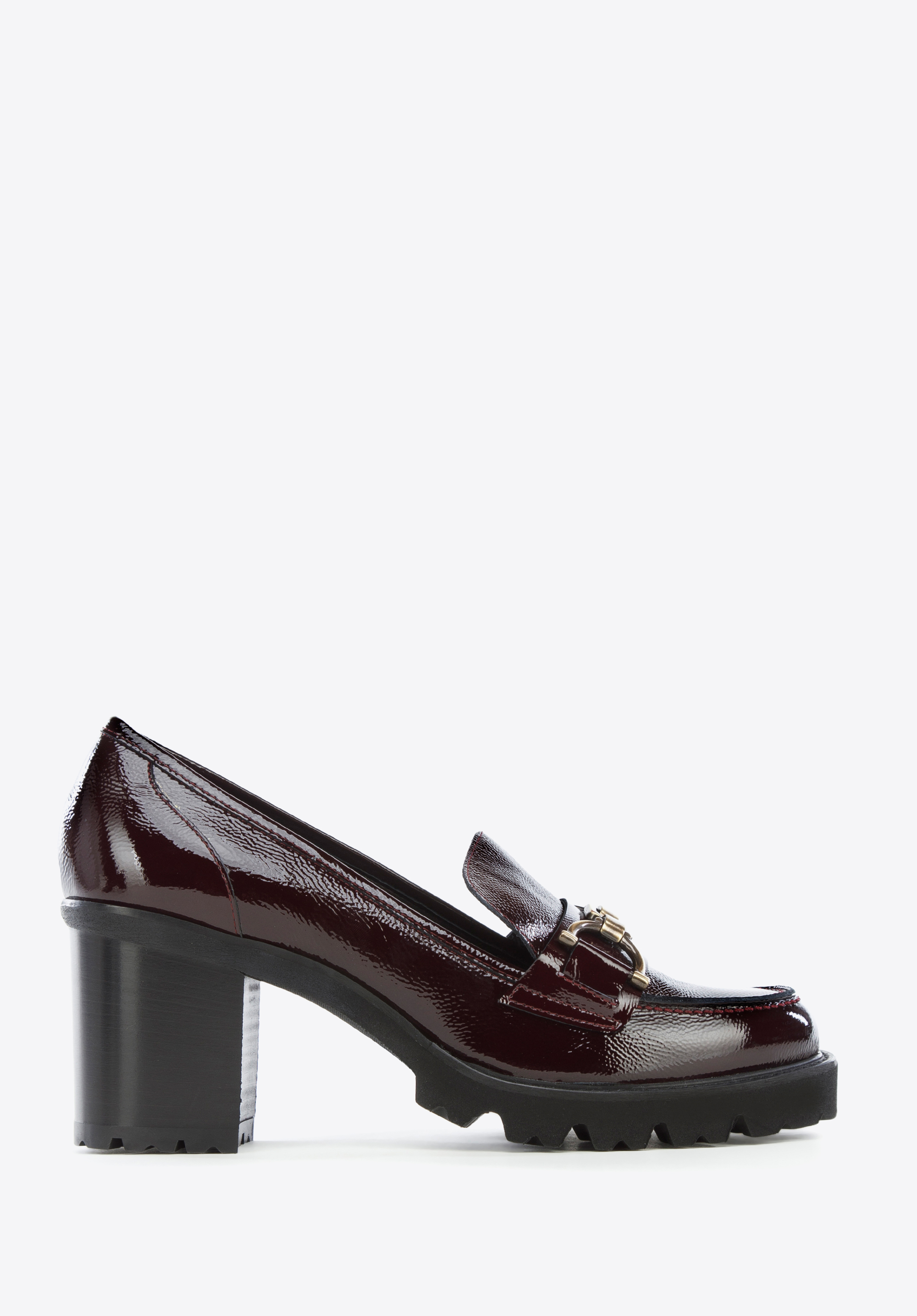 Do šatníku každé ženy patří elegantní a pohodlné boty na vysokém podpatku. Tento model je vyroben z vysoce kvalitní lakované kůže. Zdobí je spona z broušeného kovu. Silný, tvarovaný podpatek je doplněn platformou, která zajišťuje dobrou přilnavost a pohodlnou chůzi po mnoho hodin. Lakované boty se sponou doplní elegantní dámský oblek a dodají eleganci každému obleku.