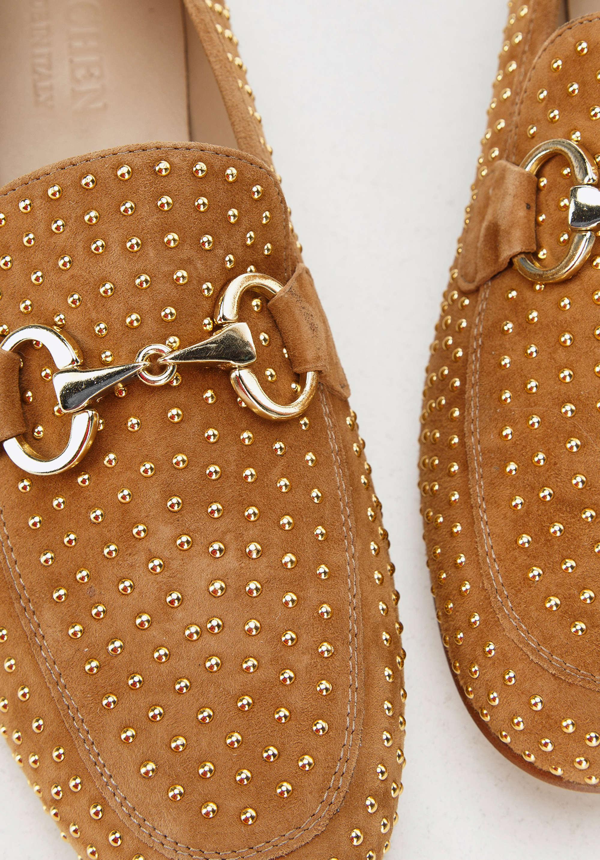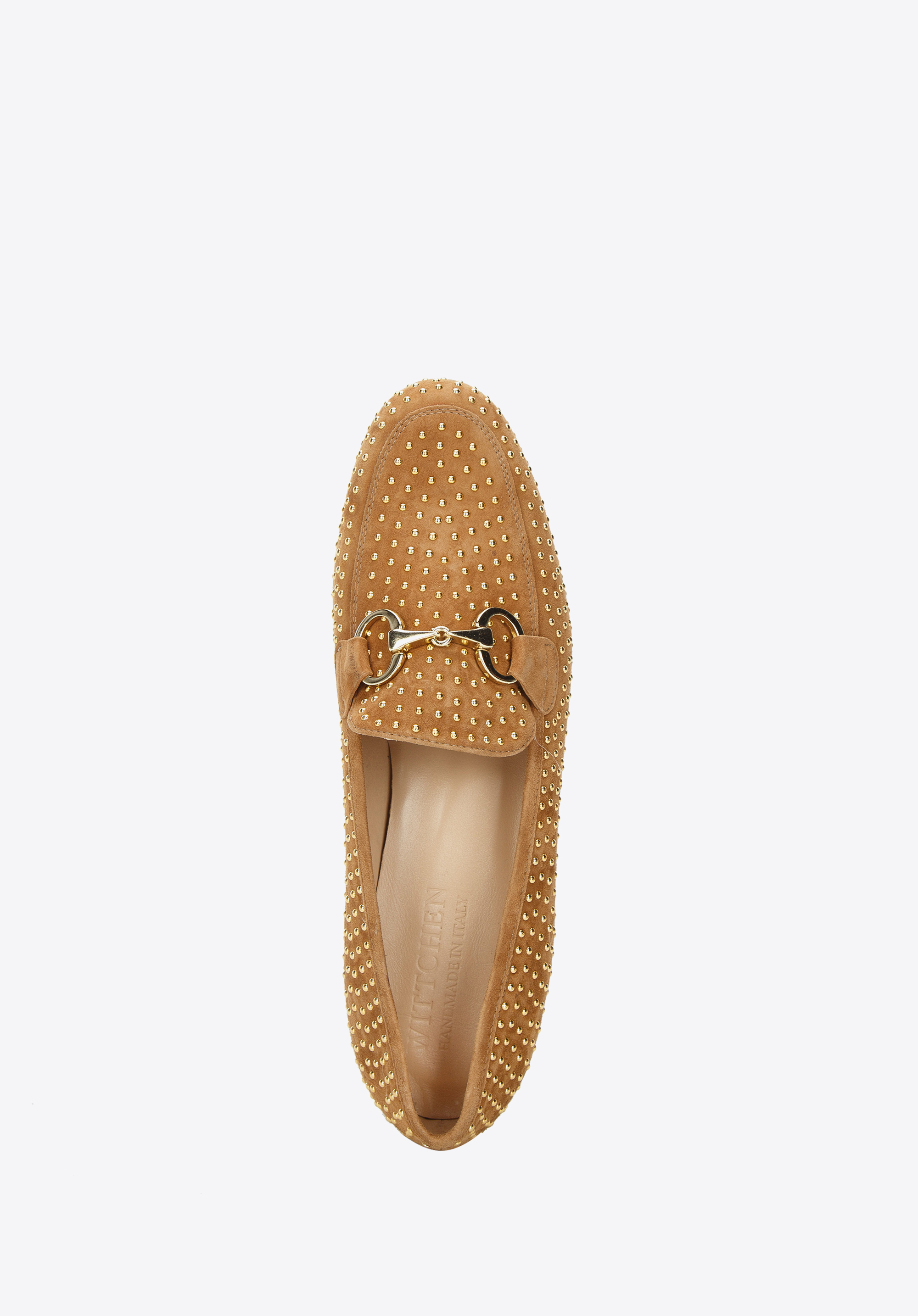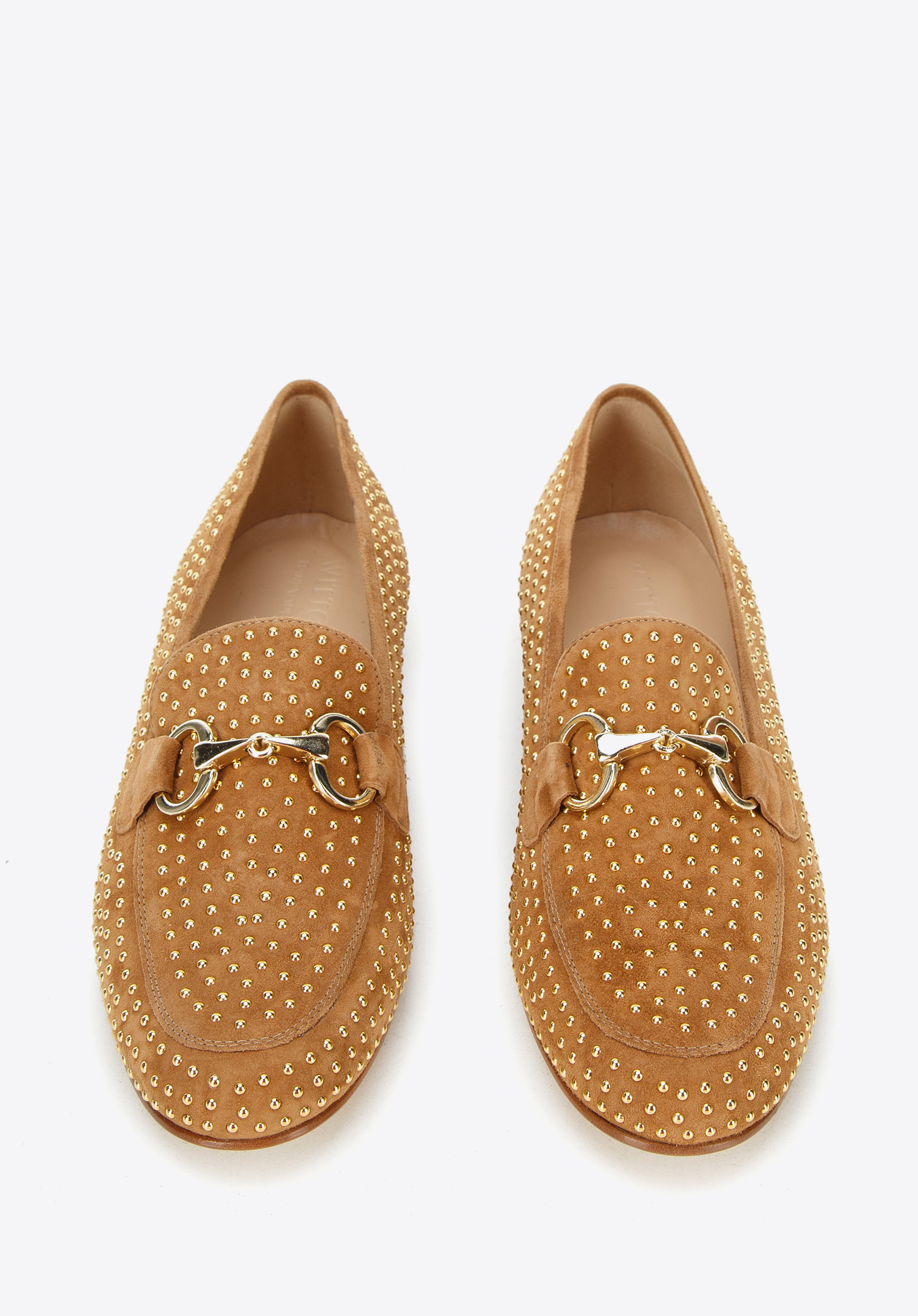 Tyto dámské boty potěší každou zenu. Jsou vyrobeny z nejkvalitnějšího přírodního semiše, který nošením získává krásu. Mají klasicky styl mokasín - s přezkou. Mají štíhlou linii, která krásně odhaluje nohu a kotník. Semišové mokasíny můžete nosit například k úzkým kalhotám s rozepnutým kotníkem nebo elegantním šatům. Dámské semišové mokasíny s nýty jsou nadčasovým doplňkem, který kombinuje klasický styl s originálními dekoracemi.