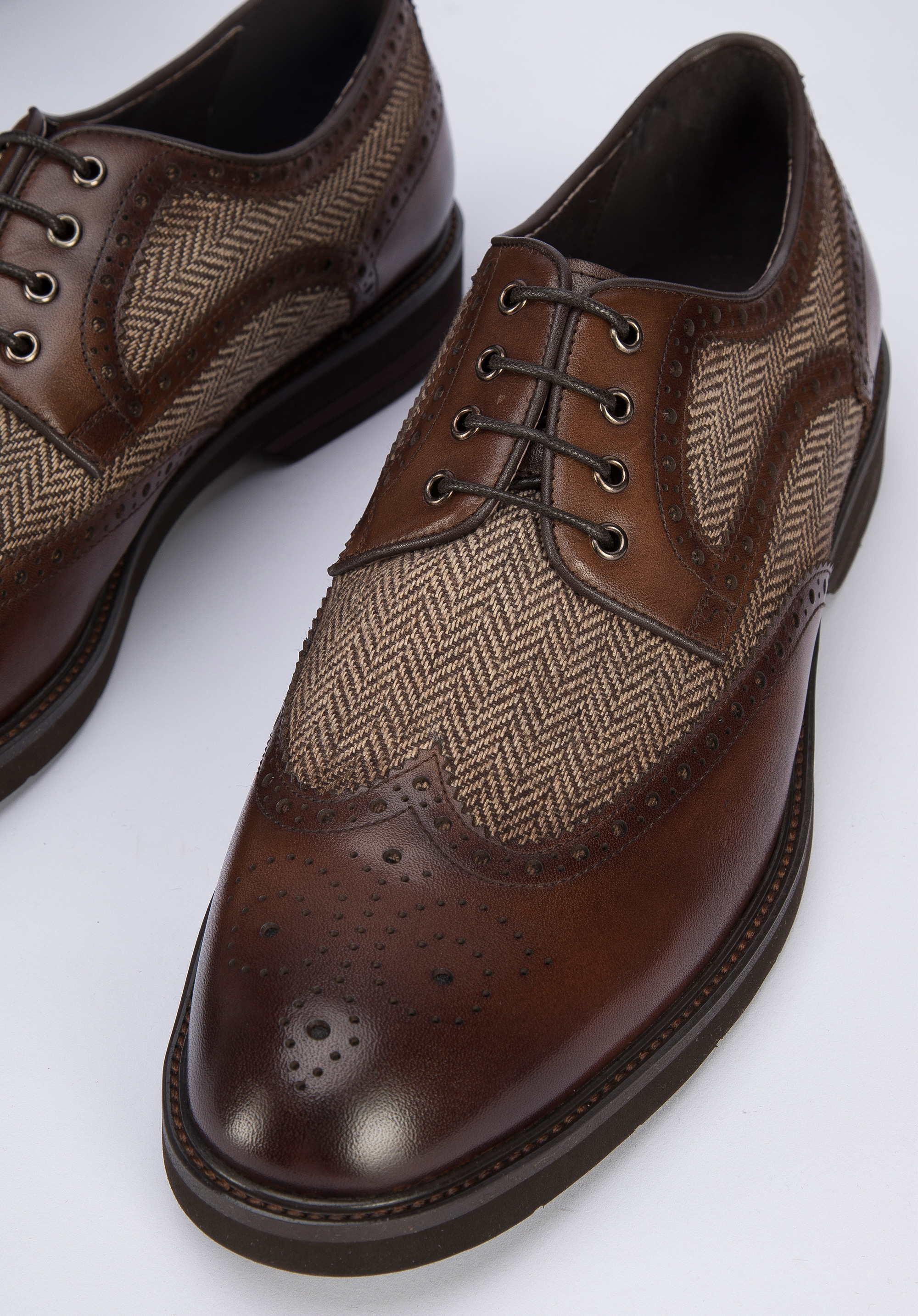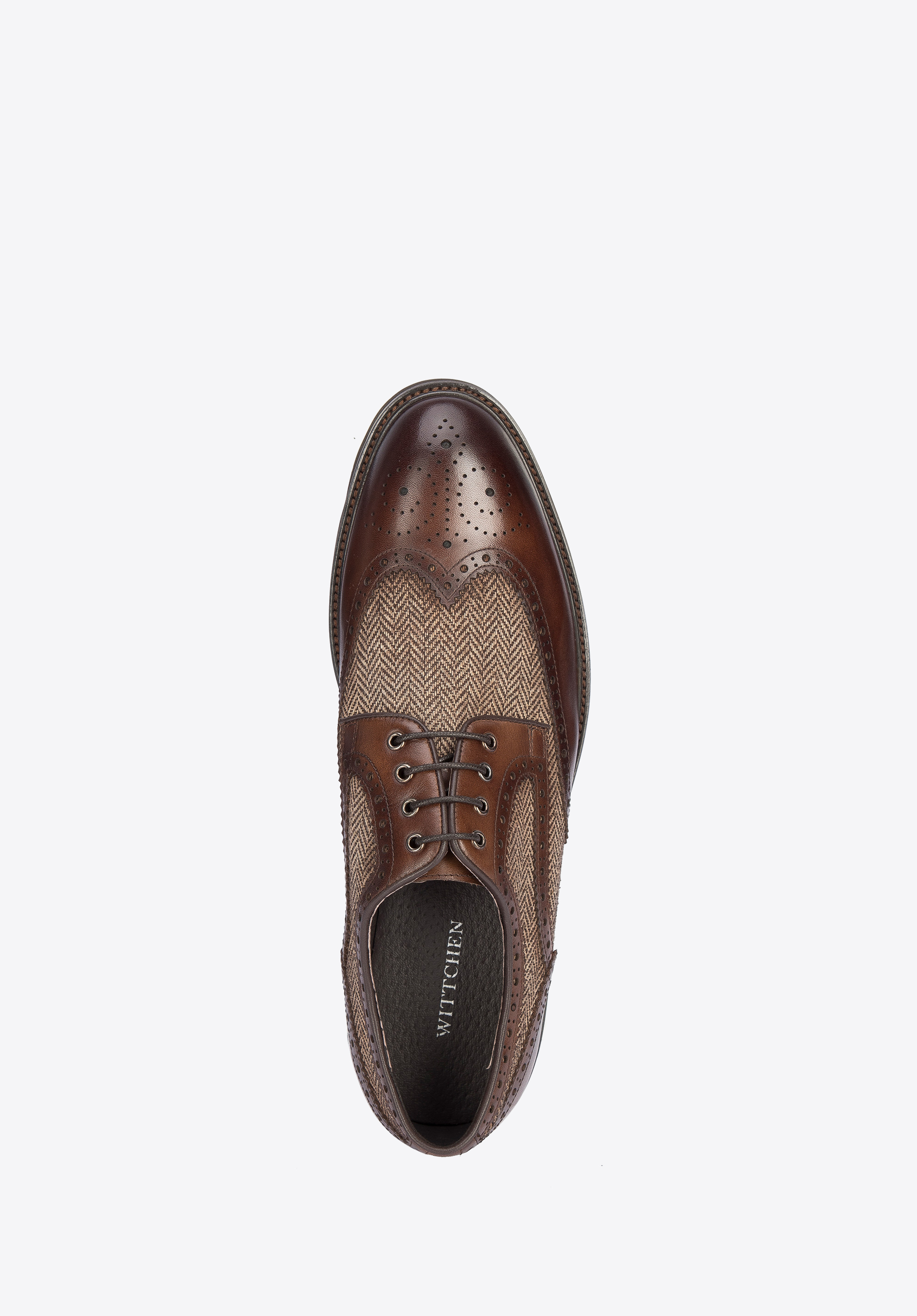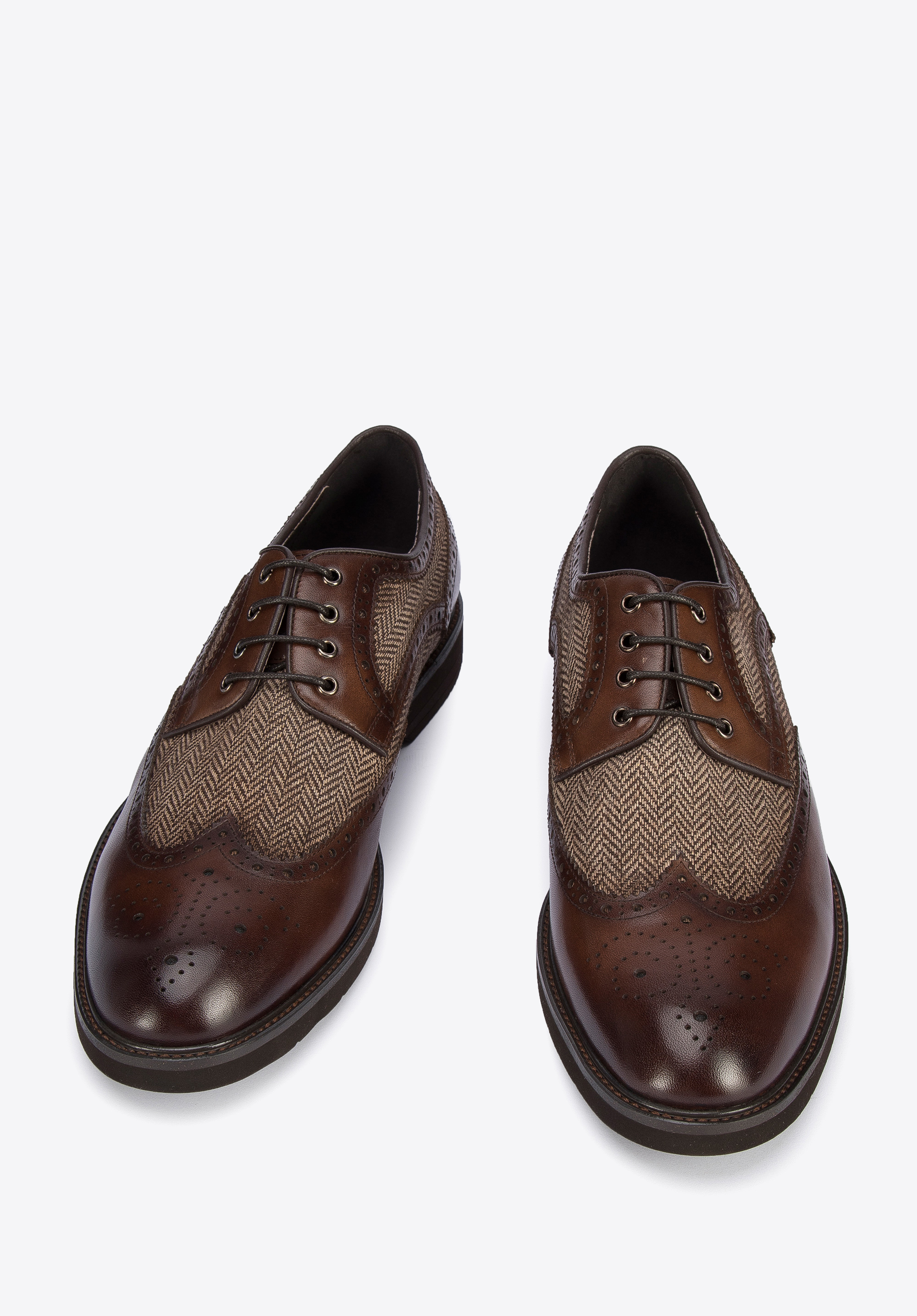 Tyto panské boty jsou elegantním doplňkem. Klasický tvar je kombinován s vysoce kvalitní přírodní kůží. Navíc mají perforaci a zoubkované okraje. Skvěle budou se hodit k obleku nebo kalhotám. Pánské kožené boty s motivem rybí kosti jsou nadčasovou volbou pro každého stylového muže.