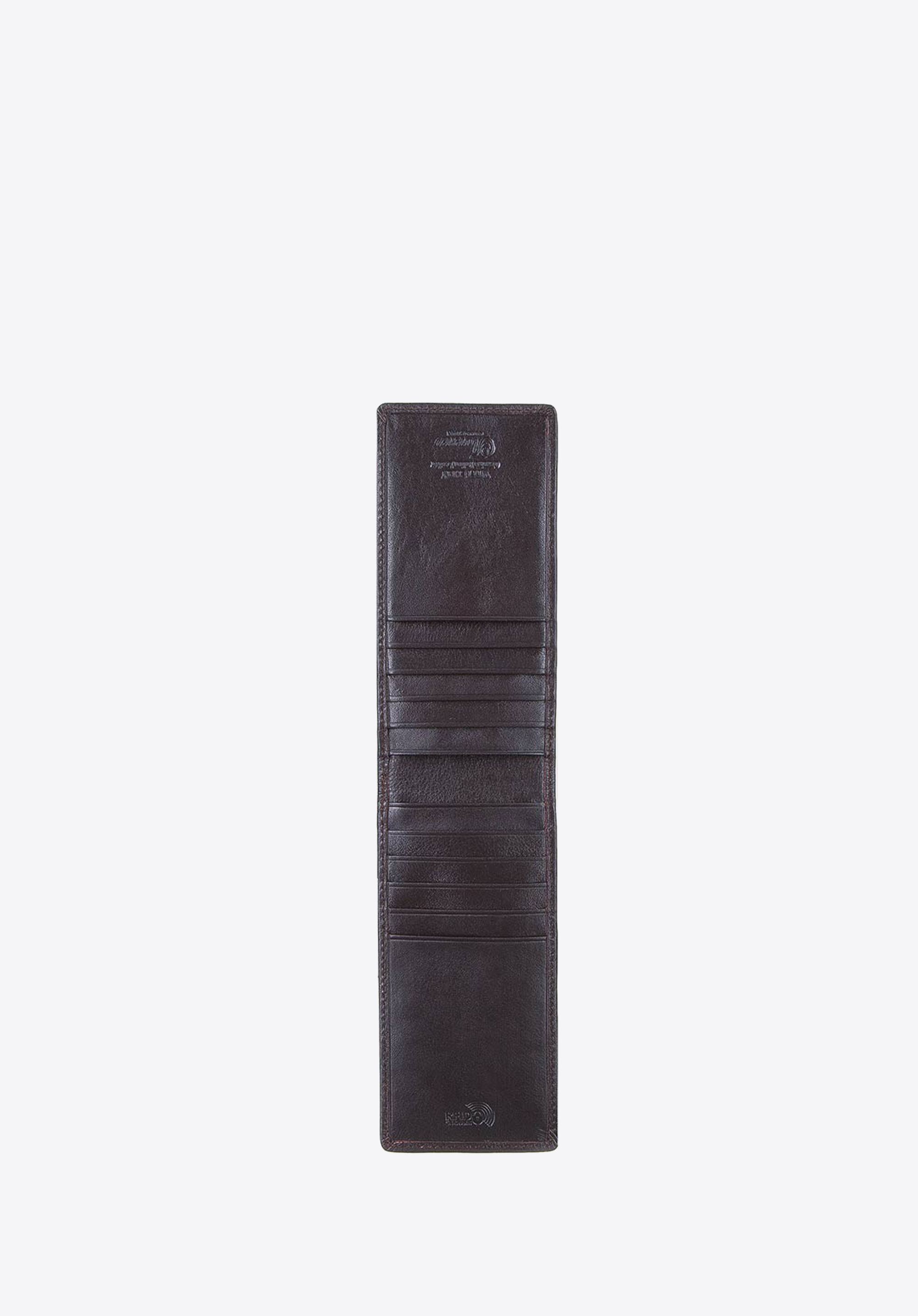 Toto pouzdro klasického střihu je pečlivě vyrobené z vysoce kvalitní přírodní kůže, která bude vypadat skvěle po mnoho let. Skvěle padne do ruky a díky skládacímu vnitřku je velmi pohodlne. Má dvanáct slotů pro karty rovnoměrně rozmístěných na dvou panelech. Jeho podšívka je vyrobena technologií RFID, která chrání před čtením dat z karet. Je ideálním řešením pro ty, kteří preferují bezhotovostní platby a rádi mají u sebe také sadu slevových karet do svých oblíbených obchodů.
