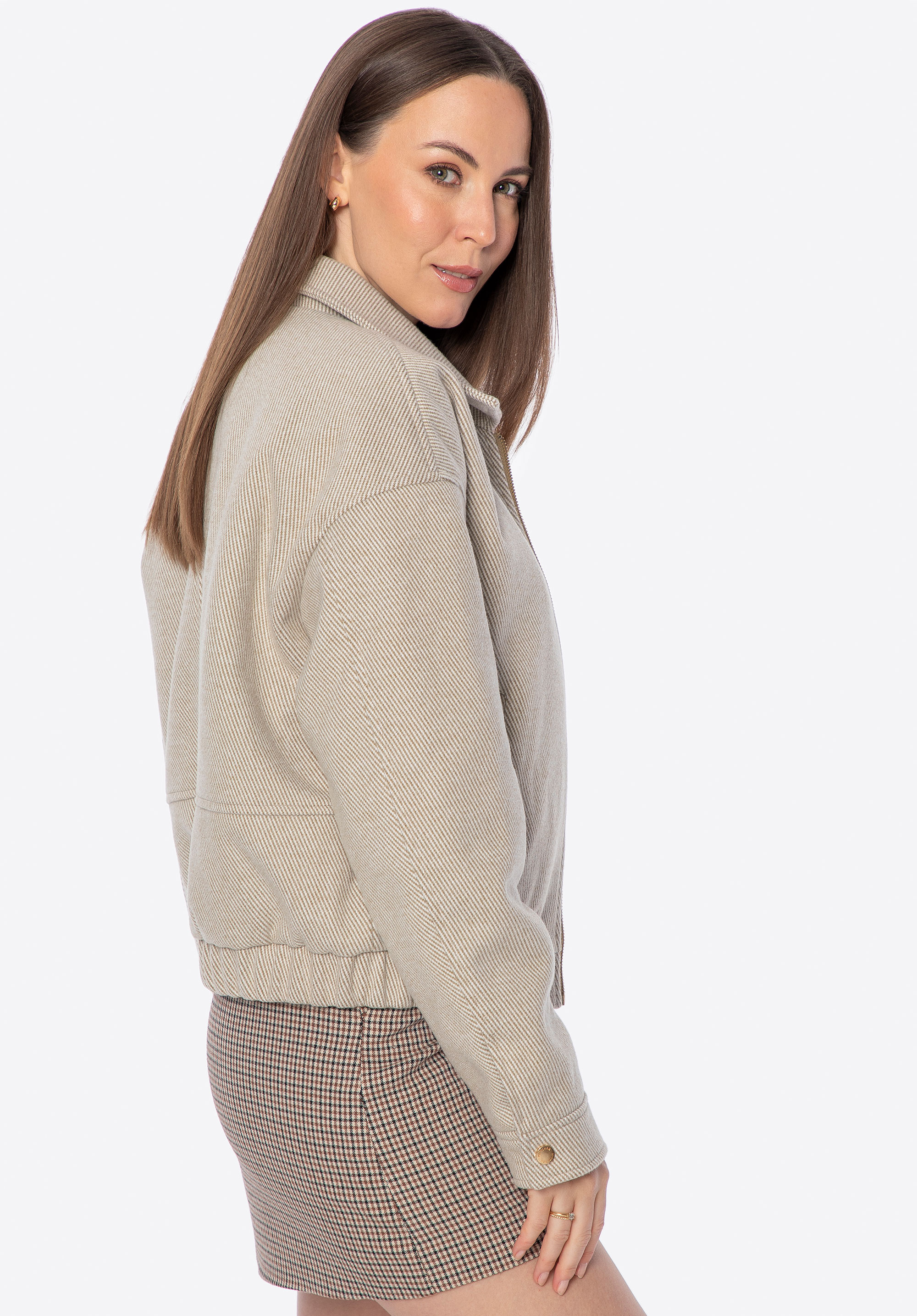 - Zapínání na zip: Umožňuje rychlé a snadné oblékání a sladění bomber bundy s vaším outfitem.