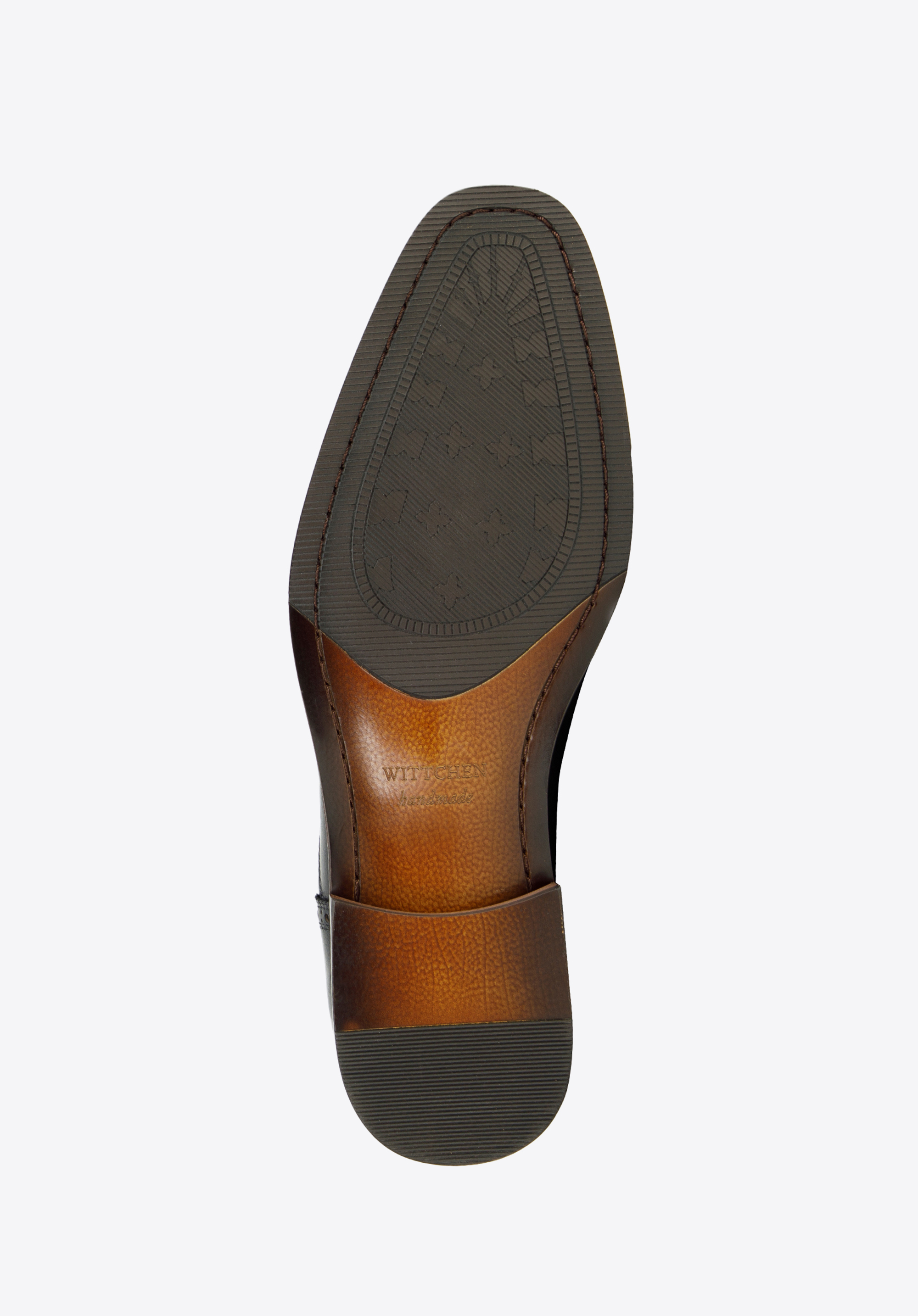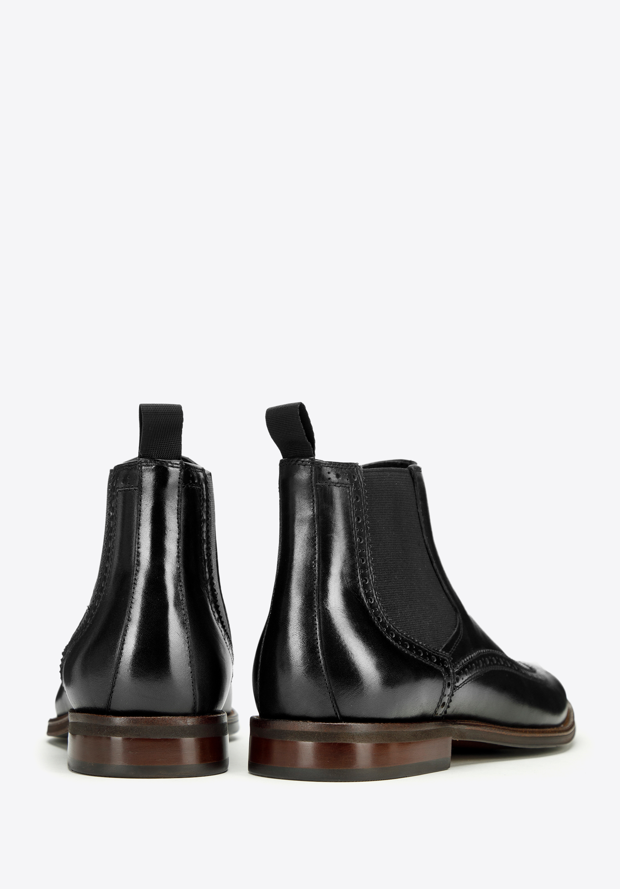 Tyto originální pánské boty jsou modelem, který změní váš zimní styl. Jsou vyrobeny z vysoce kvalitní přírodní kůže, vyznačují se rafinovanou mandlovou špičkou a decentně vyznačeným podpatkem, který zvýrazní vaši postavu. Jejich jedinečný styl doplňují ozdobné dírky, a funkční postranní gumičky, které usnadňují jejich nazouvání. Tyto pánské boty obohatí váš styl a poskytnou bezkonkurenční pohodlí díky měkké uvnitř podšívce.