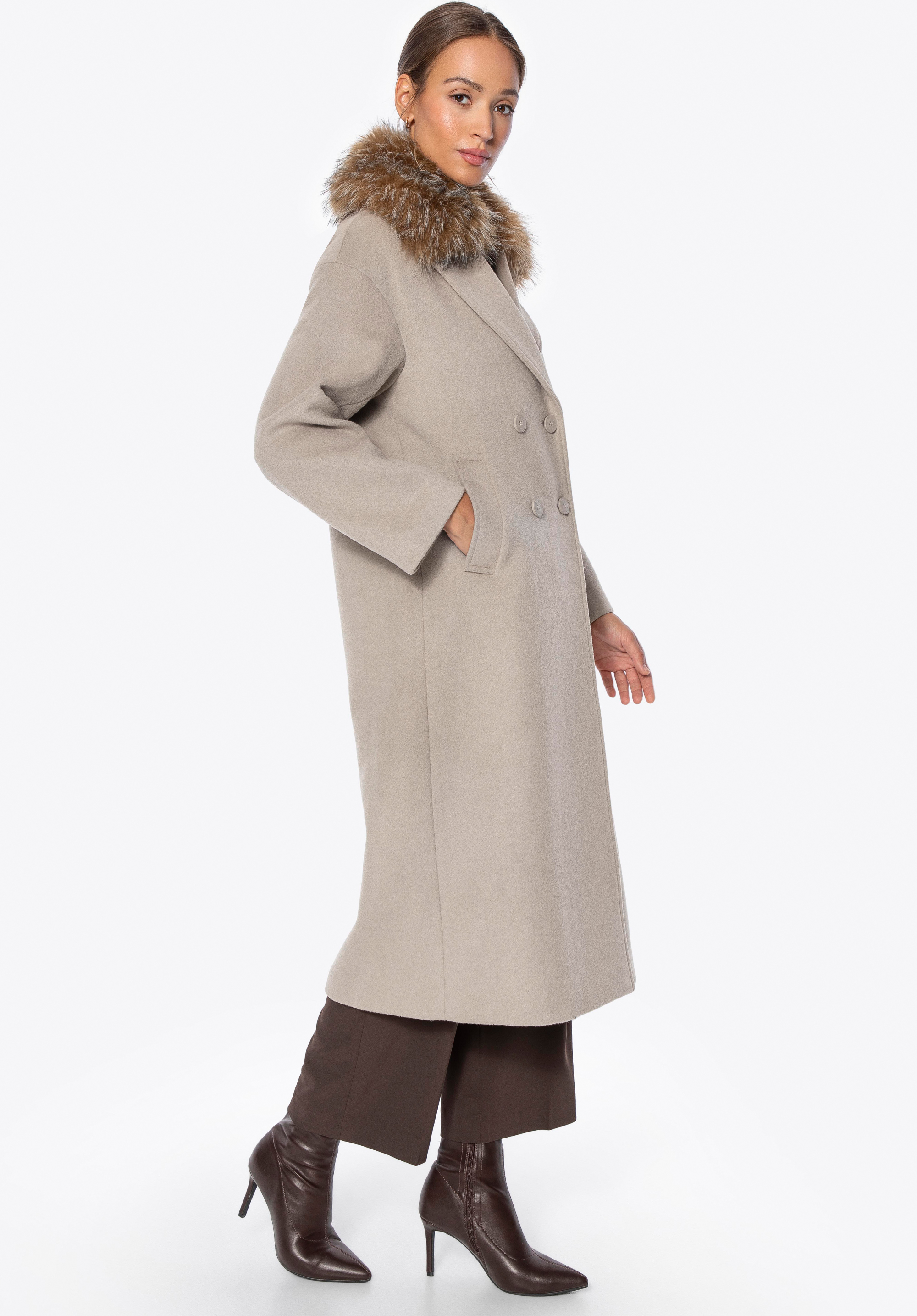 Zimní elegance – Dámský dvouřadý kabát s odnímatelným kožešinovým lemem