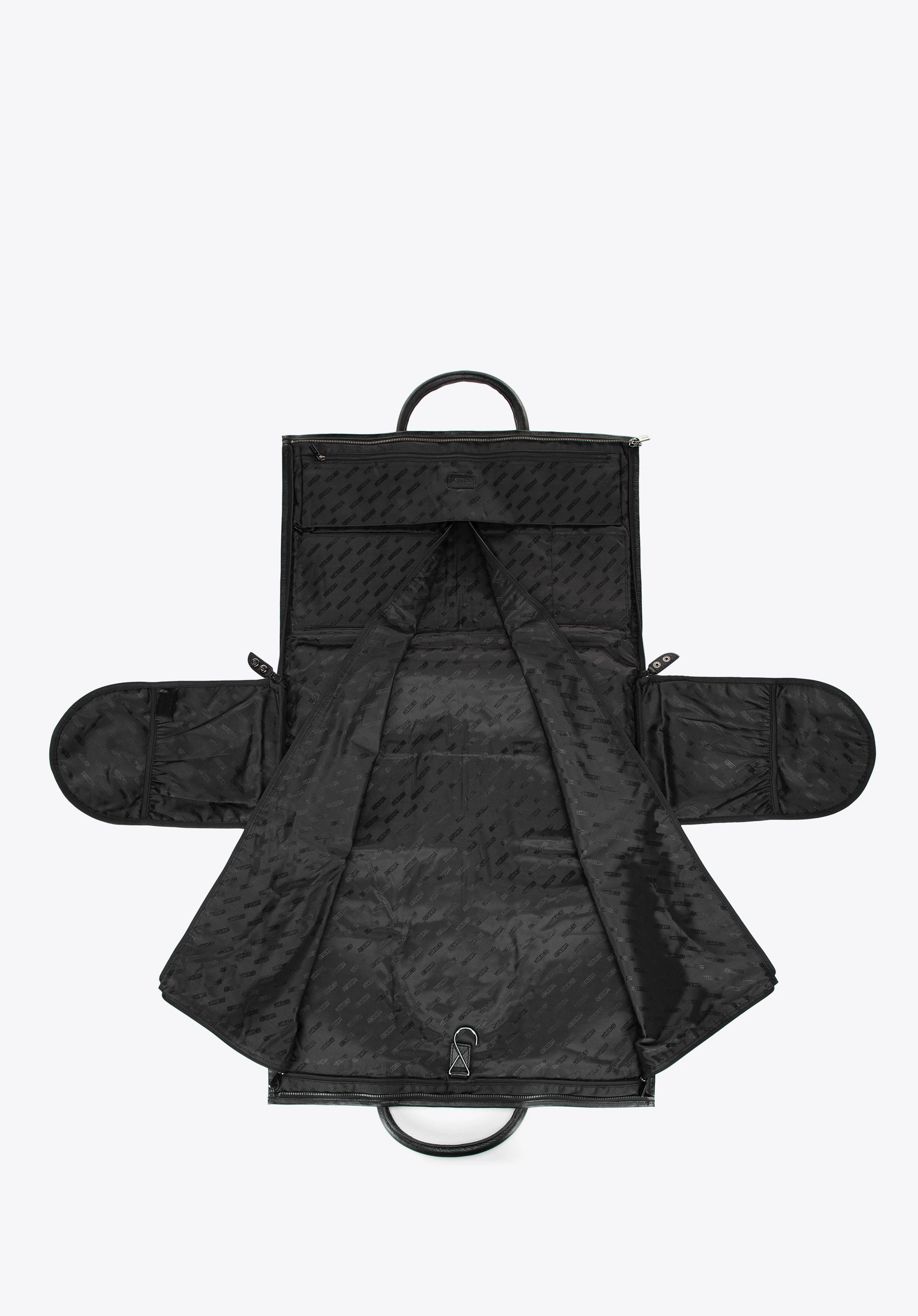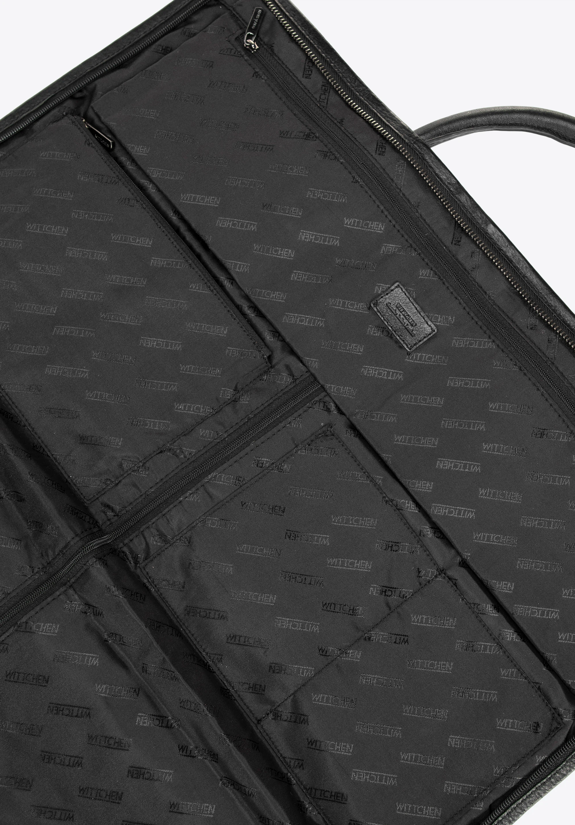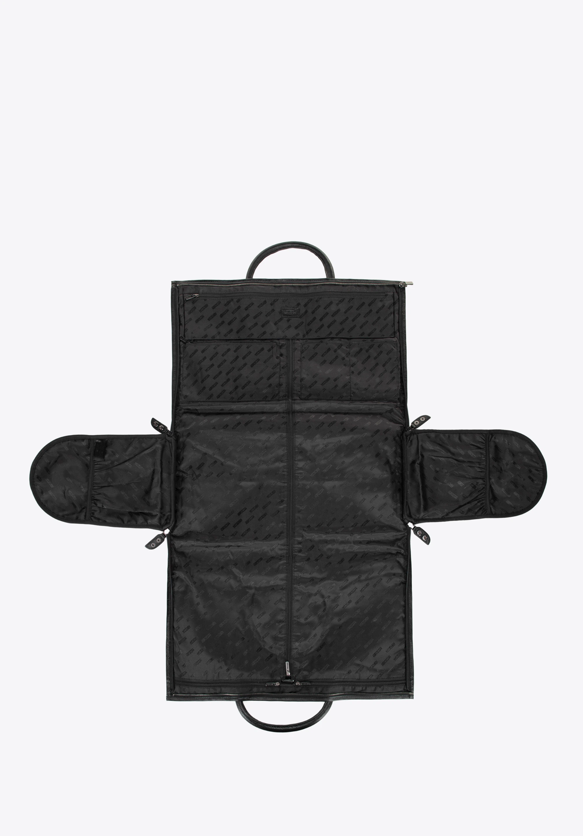 - Zipy po celé délce umožňují úplné otevření tašky do praktického nosiče na obleky, který chrání váš oblek před zmačkáním.