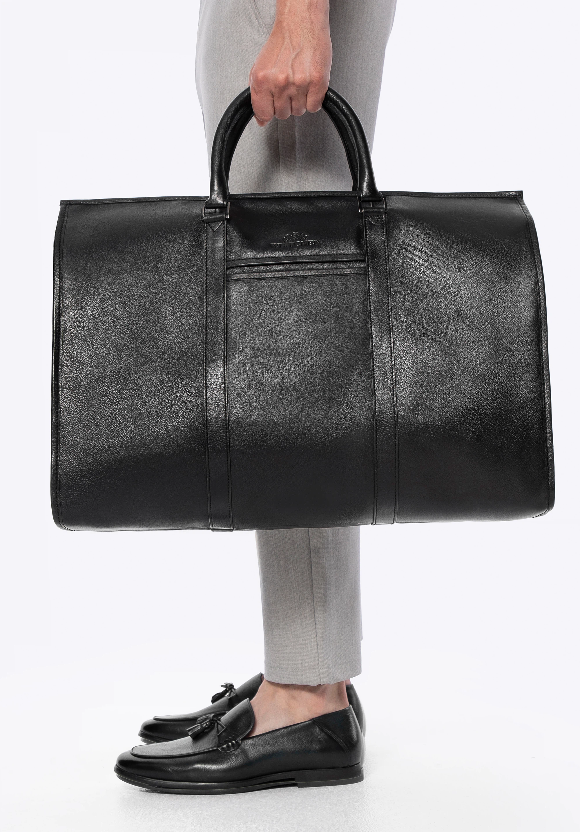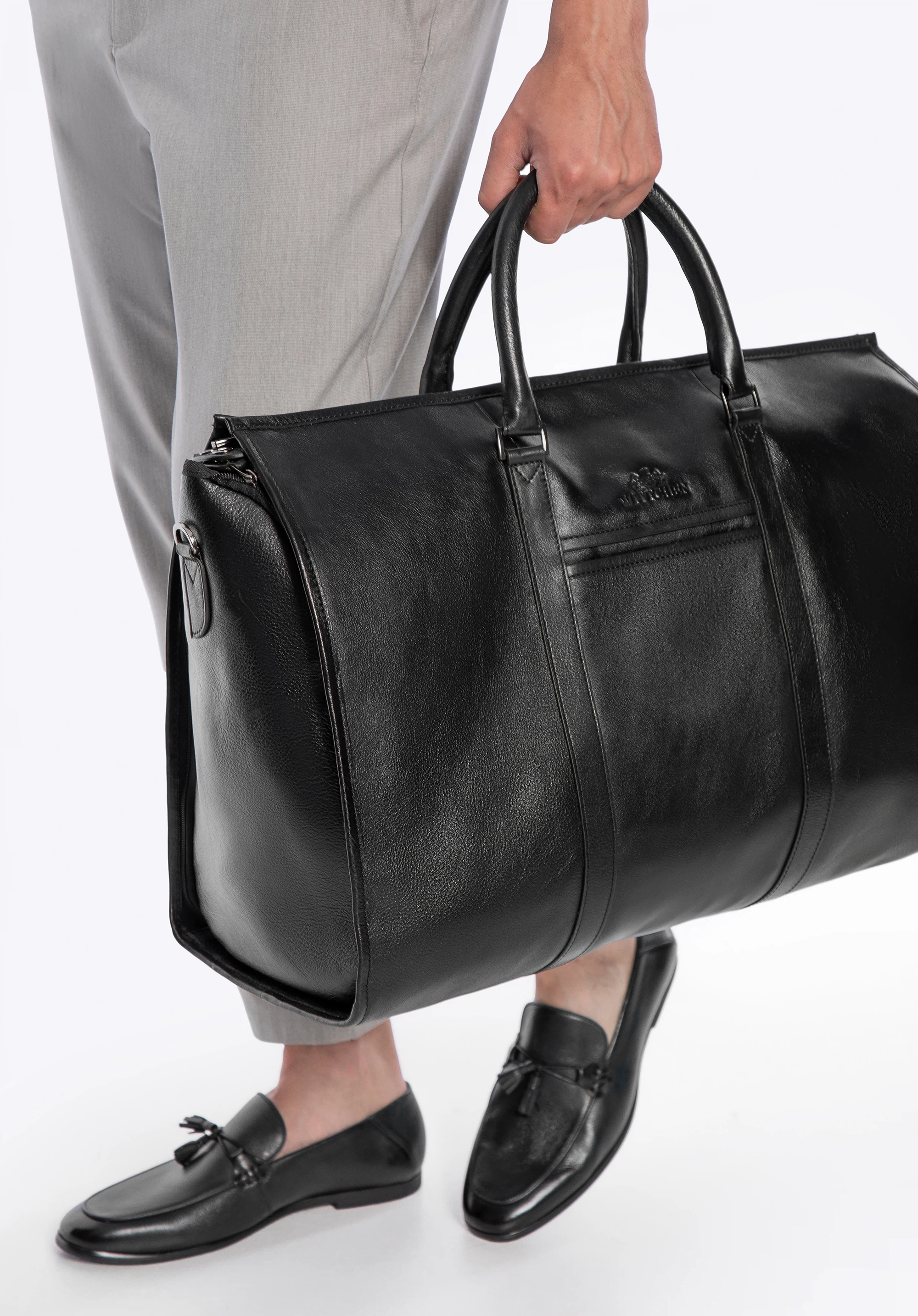 Tato pečlivě navržená taška z přírodní kůže se perfektně hodí jak jako taška na oděv, tak i jako všestranná cestovní taška . Kombinuje rafinovaný styl s elegantním designem a umožňuje vám bezpečně nosit vše, co potřebujete – od obleku a náhradního oblečení až po doplňky. Perfektní volba pro ty, kteří si cení elegance a organizovanosti, a to i na cestách.