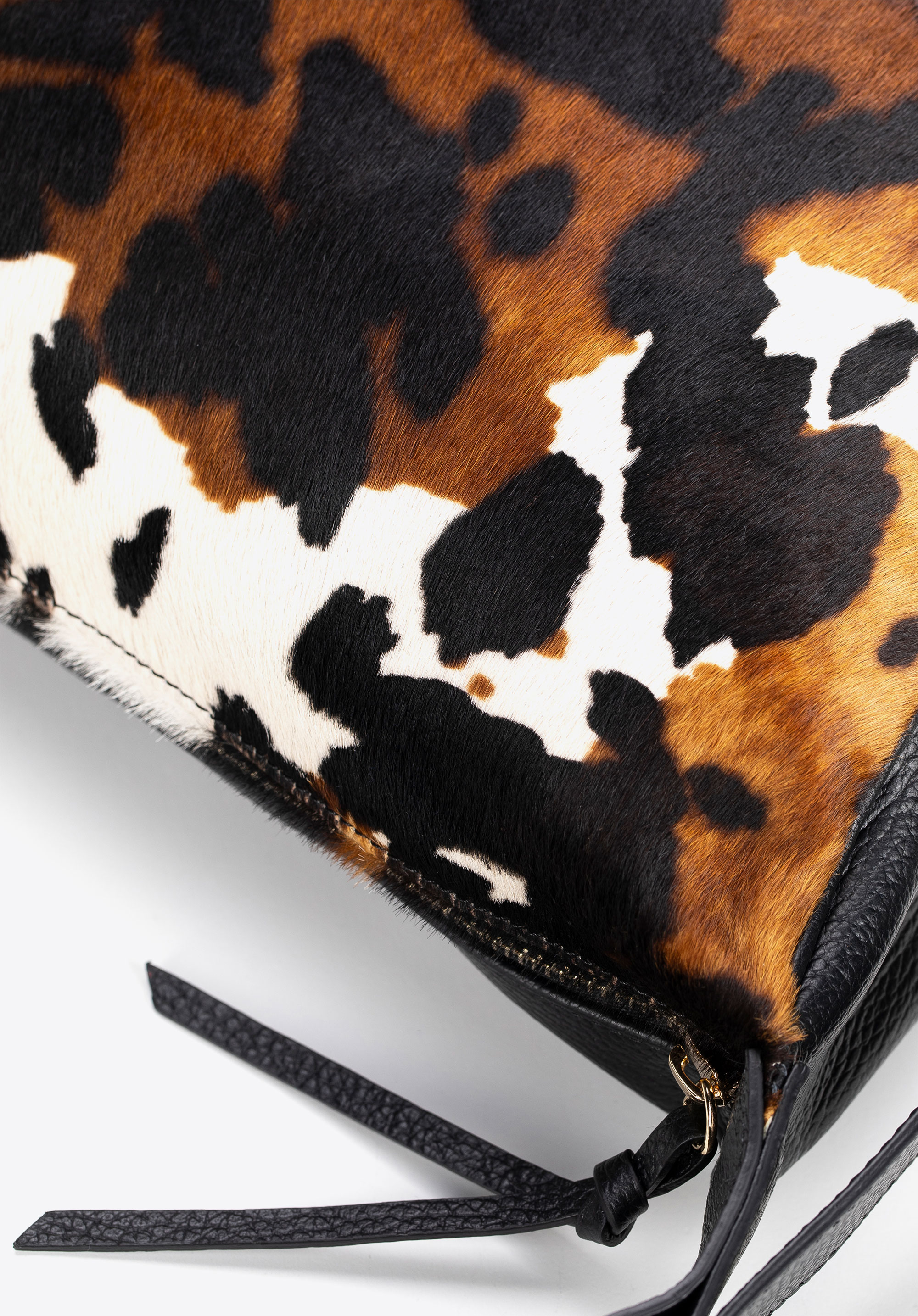 - Materiál : Přírodní telecí kůže – měkká, odolná a elegantní, s detailem chlupů na přední straně, který dodává modelu osobitý nádech.