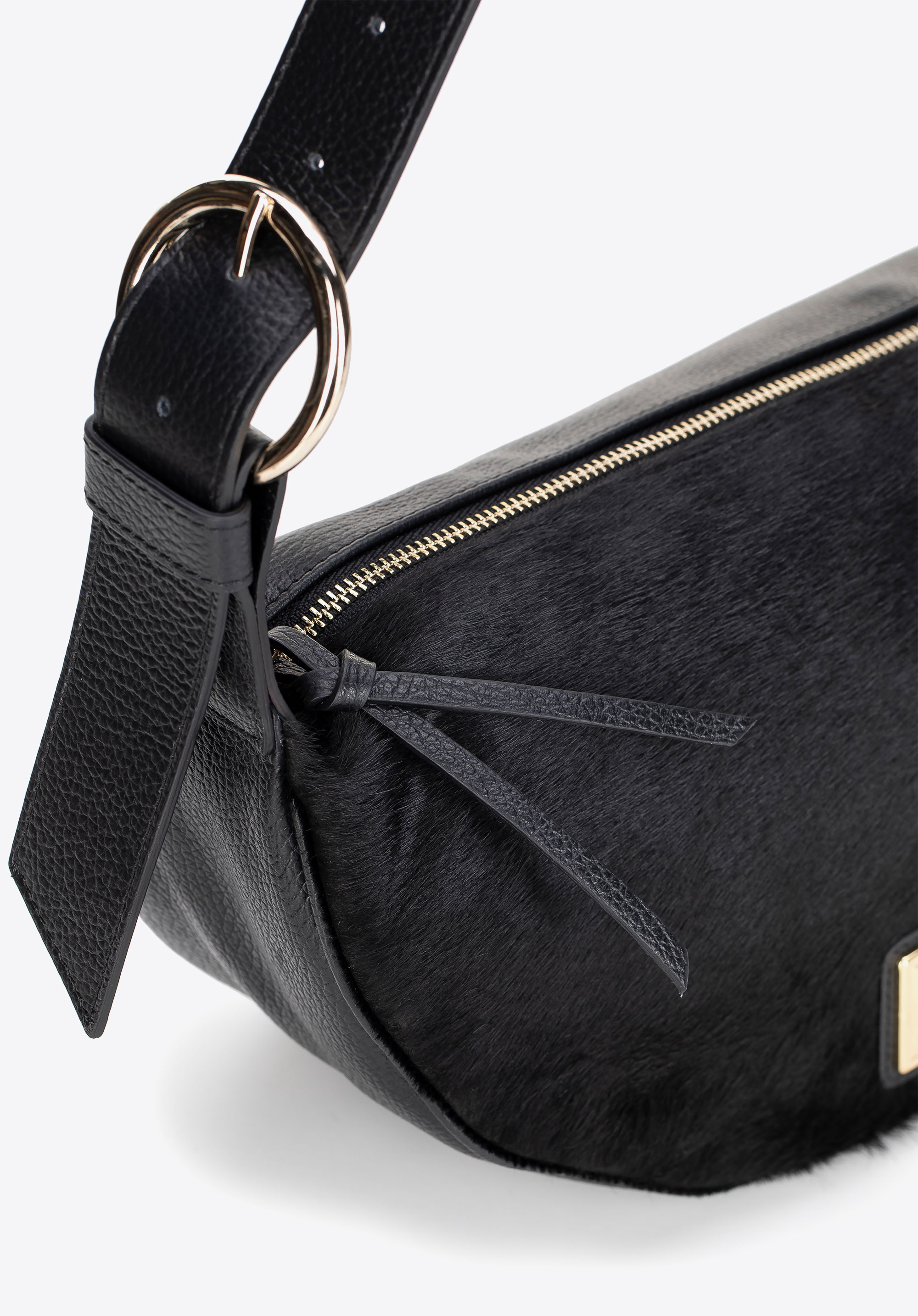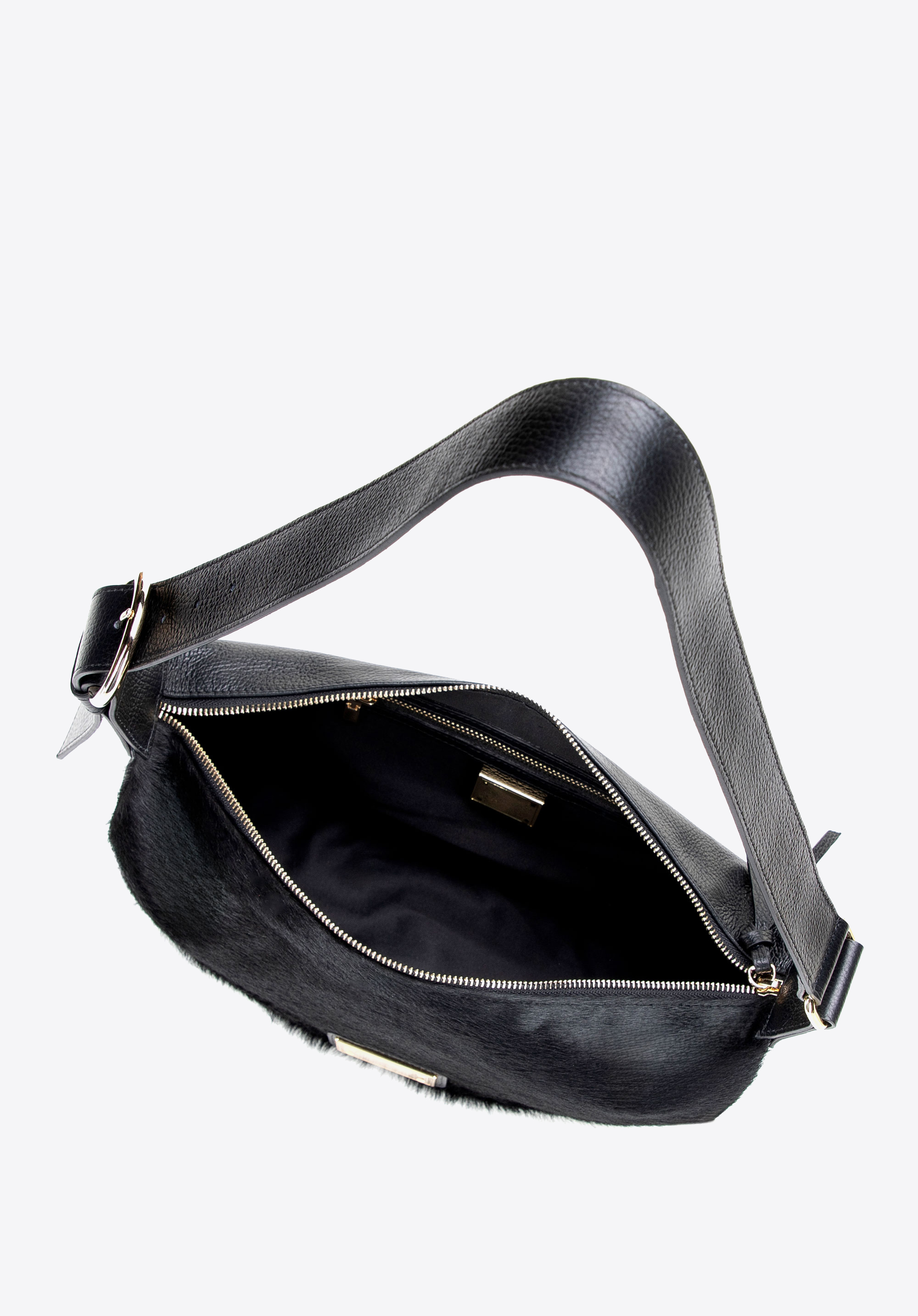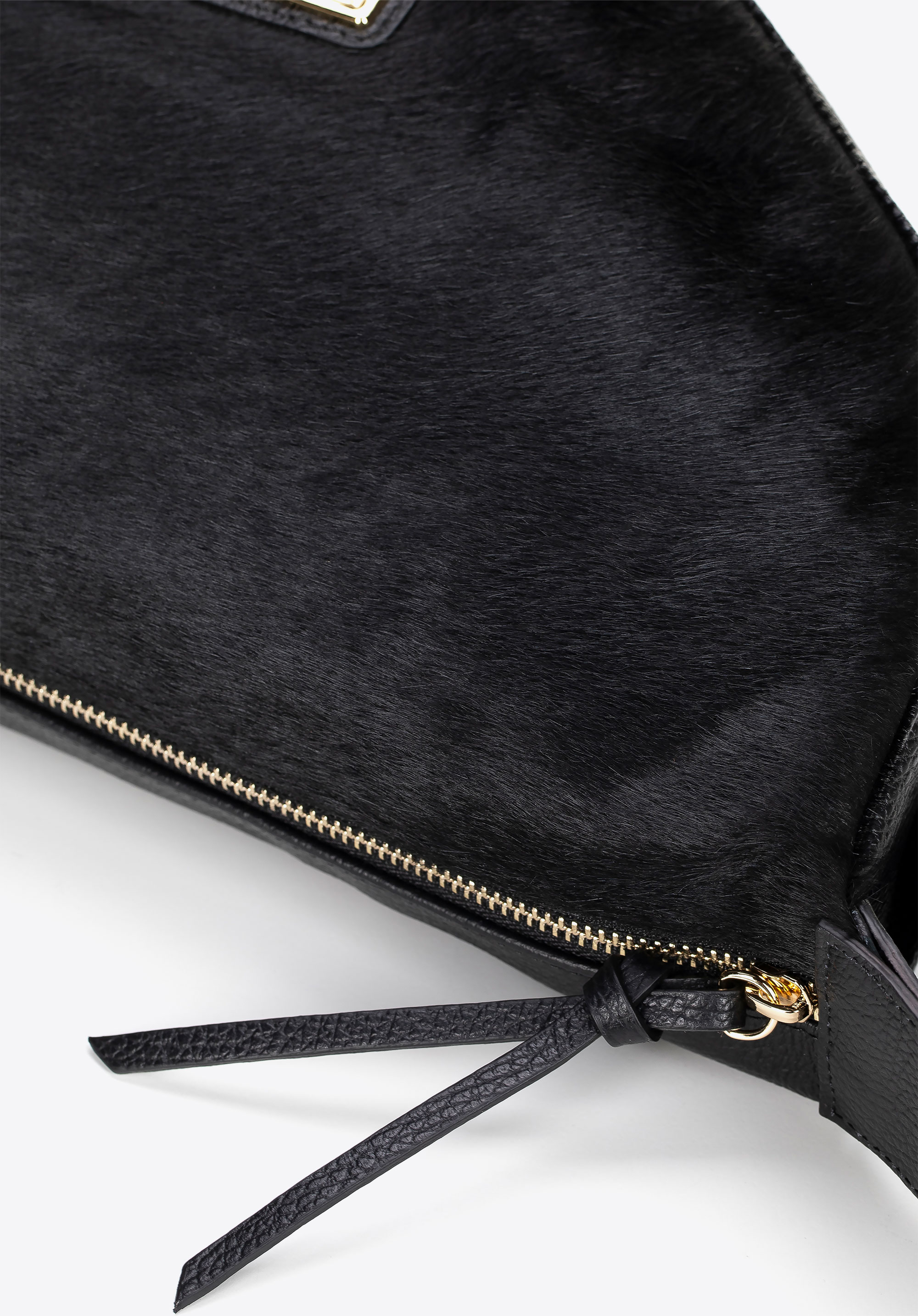 - Materiál: Přírodní telecí kůže – měkká, odolná a elegantní, s chlupatým předním panelem pro luxusní a osobitý vzhled.