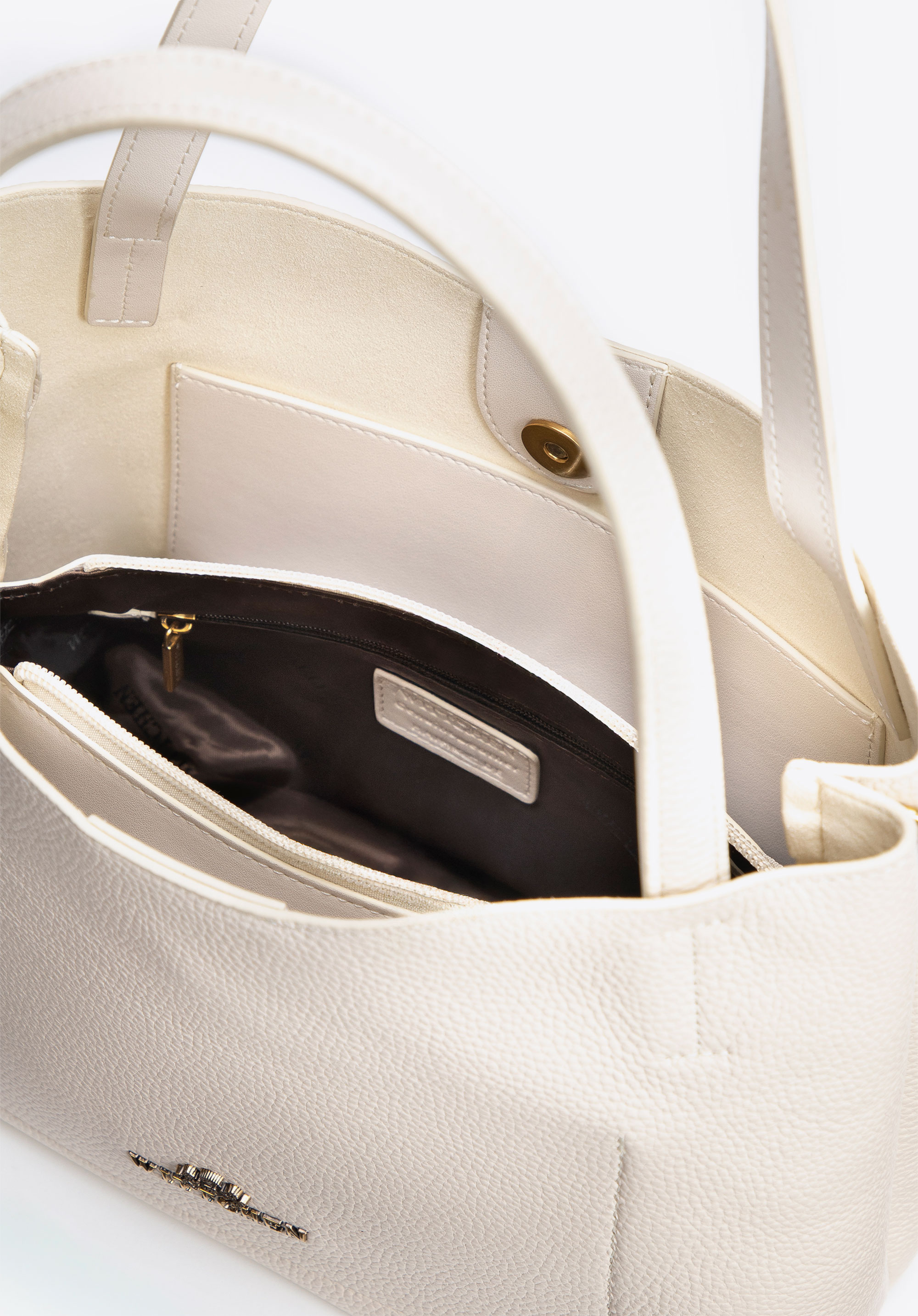- Vyjímatelná taštička na zip: Ideální na uložení kosmetiky a drobností. Uvnitře jsou dvě otevřené kapsy, včetně jedné na zip, pro lepší organizaci.