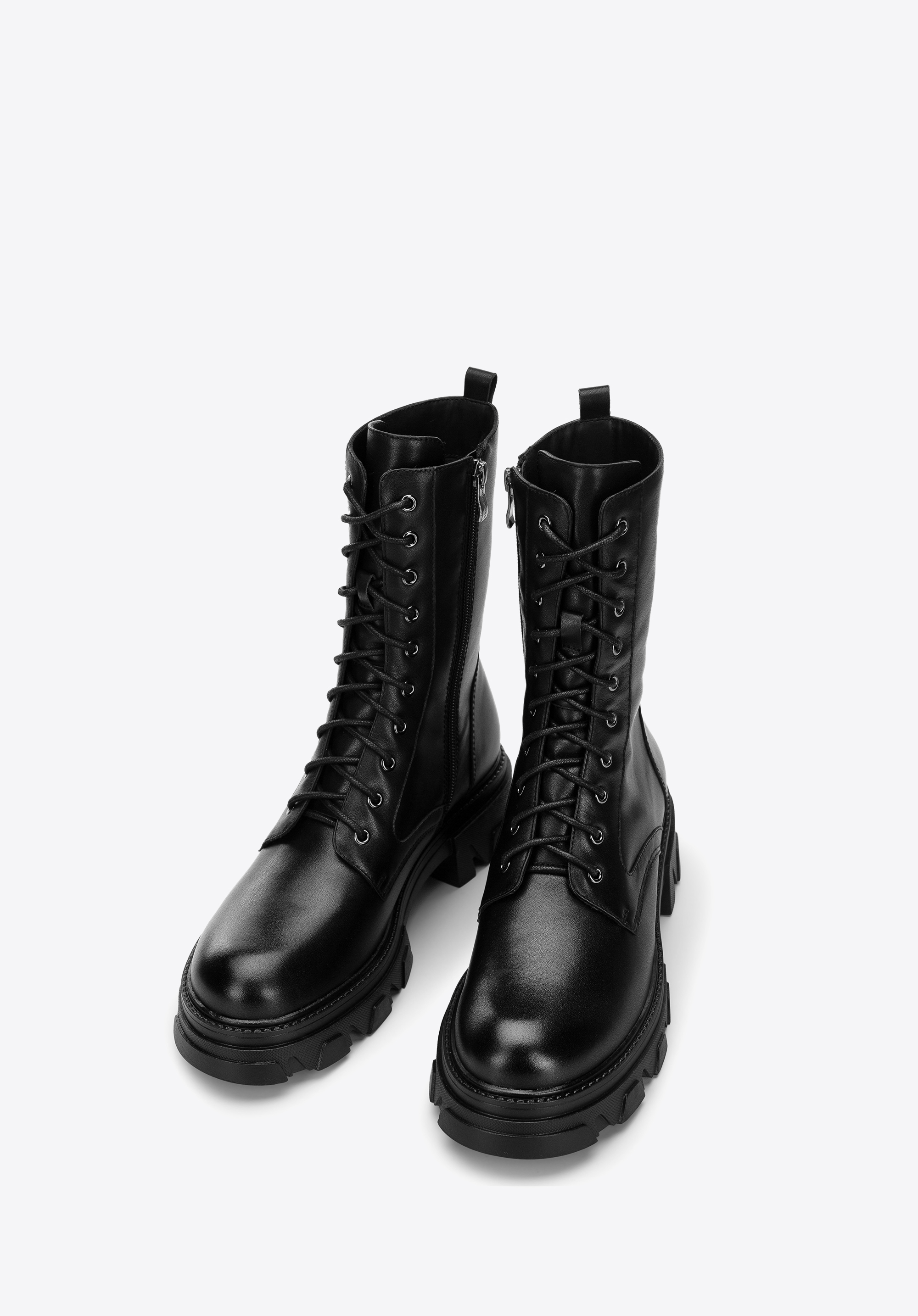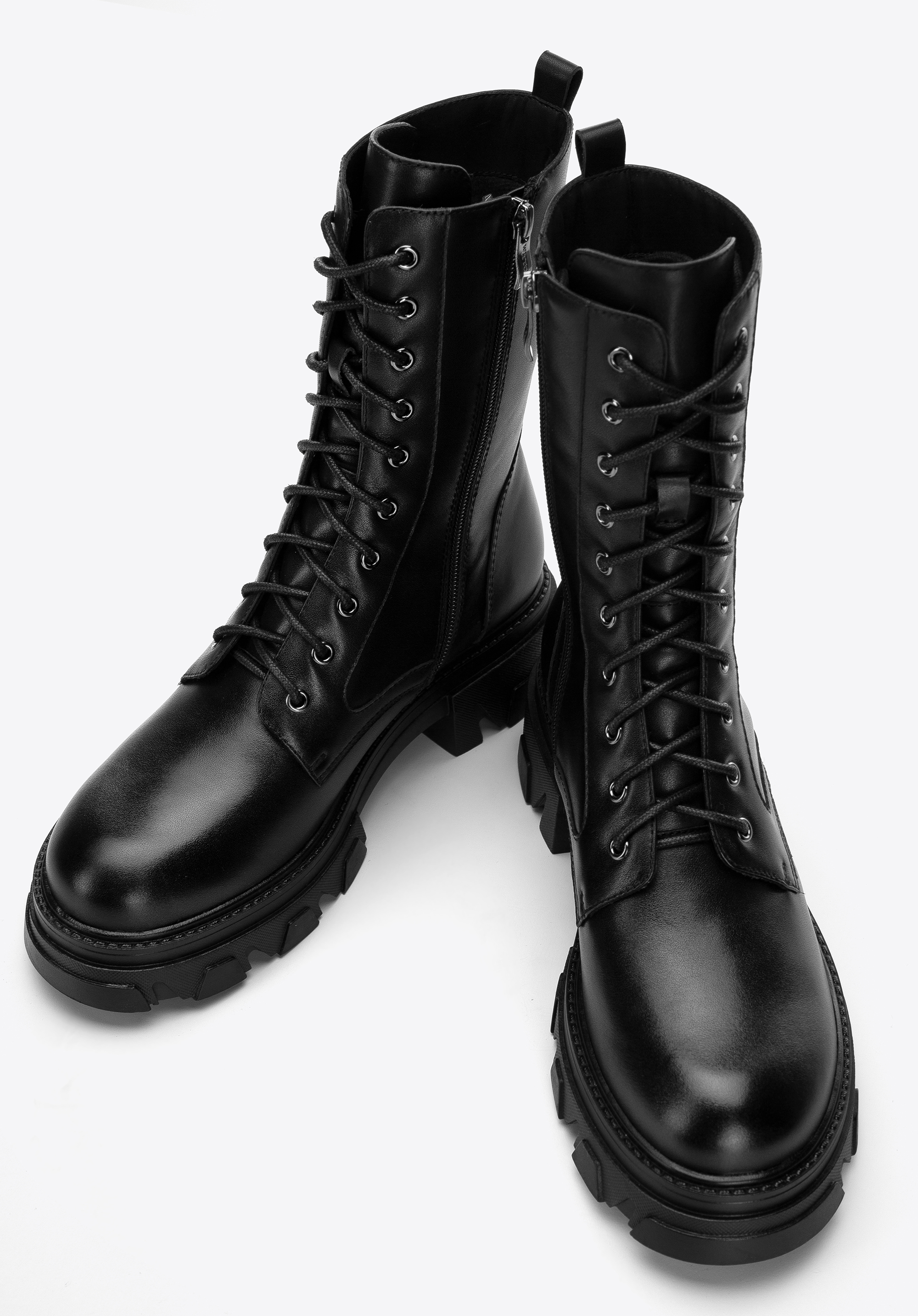 Čisté linie a jednoduché detaily kladou veškerý důraz na robustní podpatek, jinými slovy: podrážka s vysokými výstupky s utilitárním stylem aktualizace pro bojové boty. Tyto boty jsou vyrobeny z nejkvalitnější přírodní kůže, pyšní se módním designem a stélkou ze syntetického materiálu chrání před živly. Díky praktickému bočnímu zipu pro snadný vstup, poutku a ozdobnému pásku jsou ideálním společníkem pro vaše nohy během chladných zimních dnů. Vneste do své podzimní a zimní kolekce bot rock'n'rollovou atmosféru s párem robustních bojových bot .