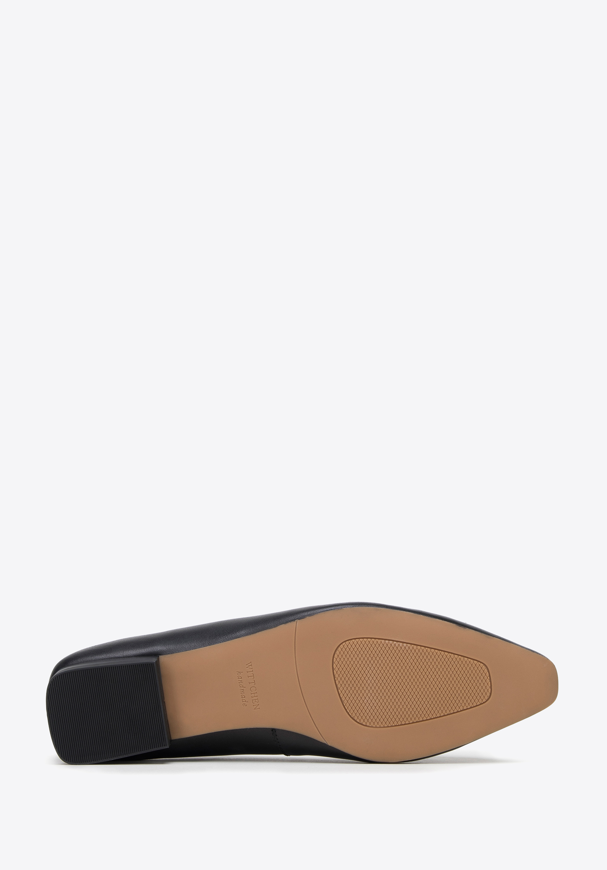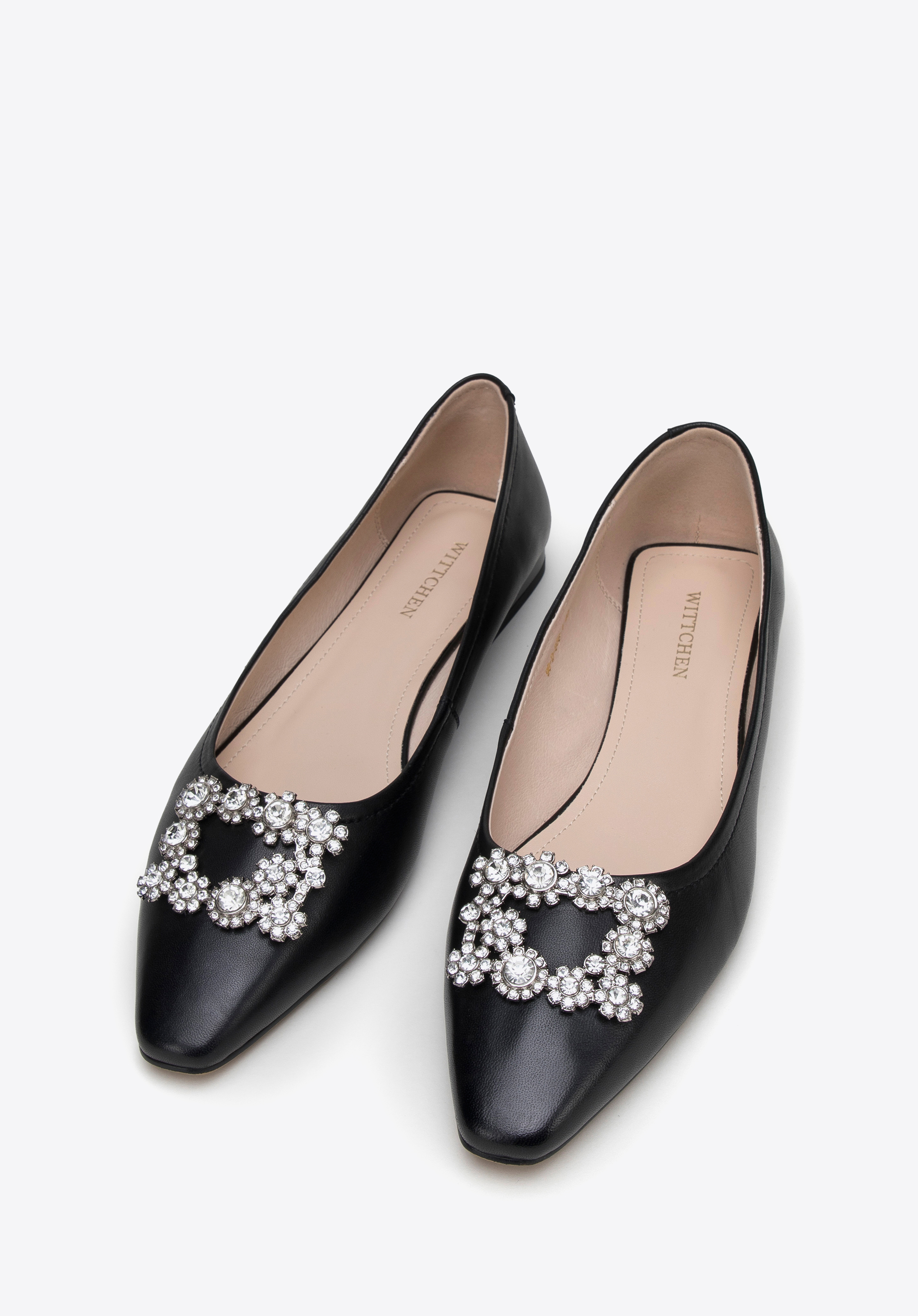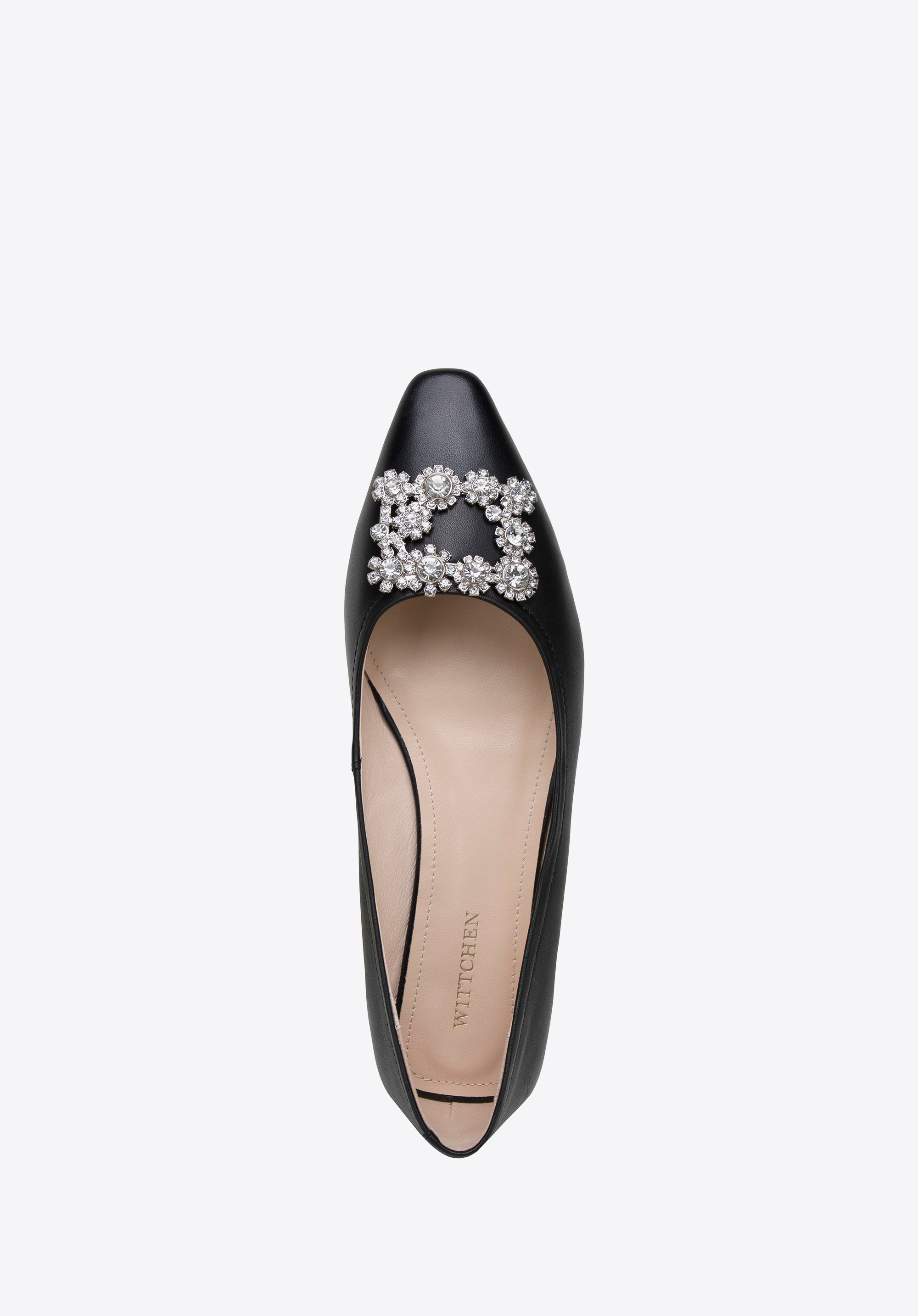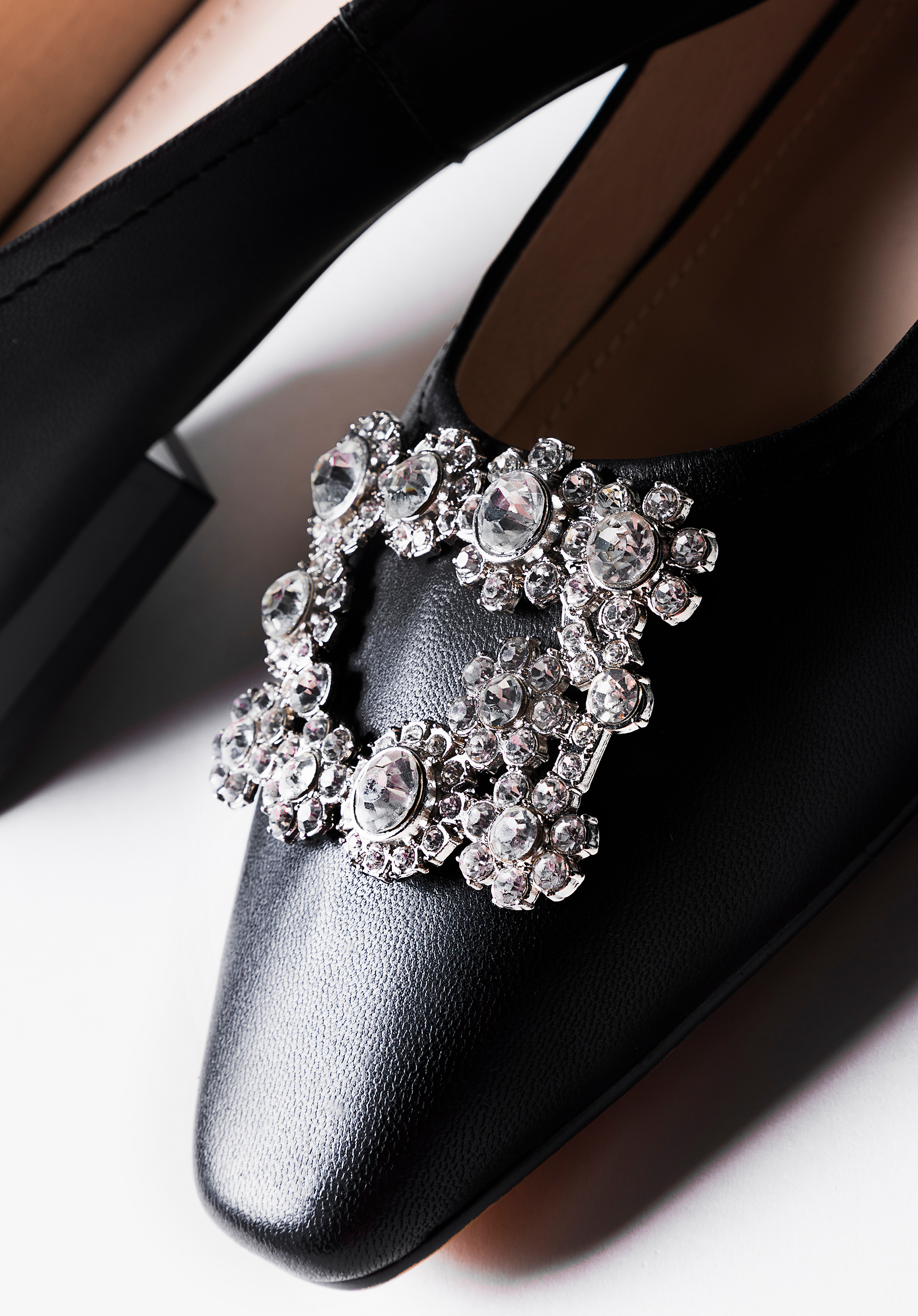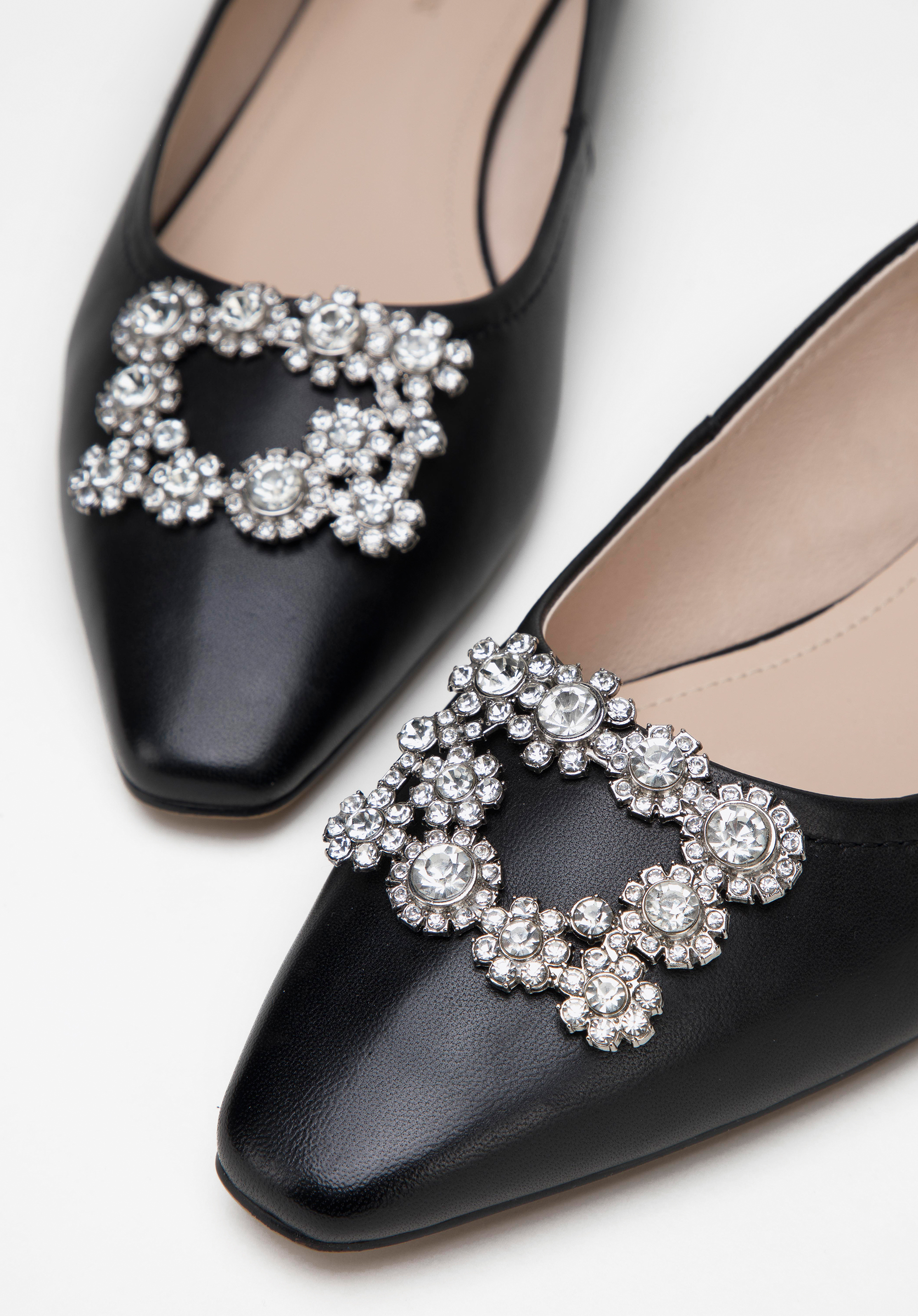 Tyto elegantní boty vyrobené z přírodní kůže dodají lesk každému stylu. Ozdobná obdélníková spona s krystaly upoutají pozornost. Špičatá špička zeštíhluje nohu a díky kožené stélce můžete je pohodlně nosit mnoho hodin. Noste je k malým černým šatům nebo k oblíbeným džínům a košili – budete vypadat elegantně za každé situace. Kožené boty s lesklou sponou jsou nadčasovým doplňkem, který můžete nosit do práce i po práci.