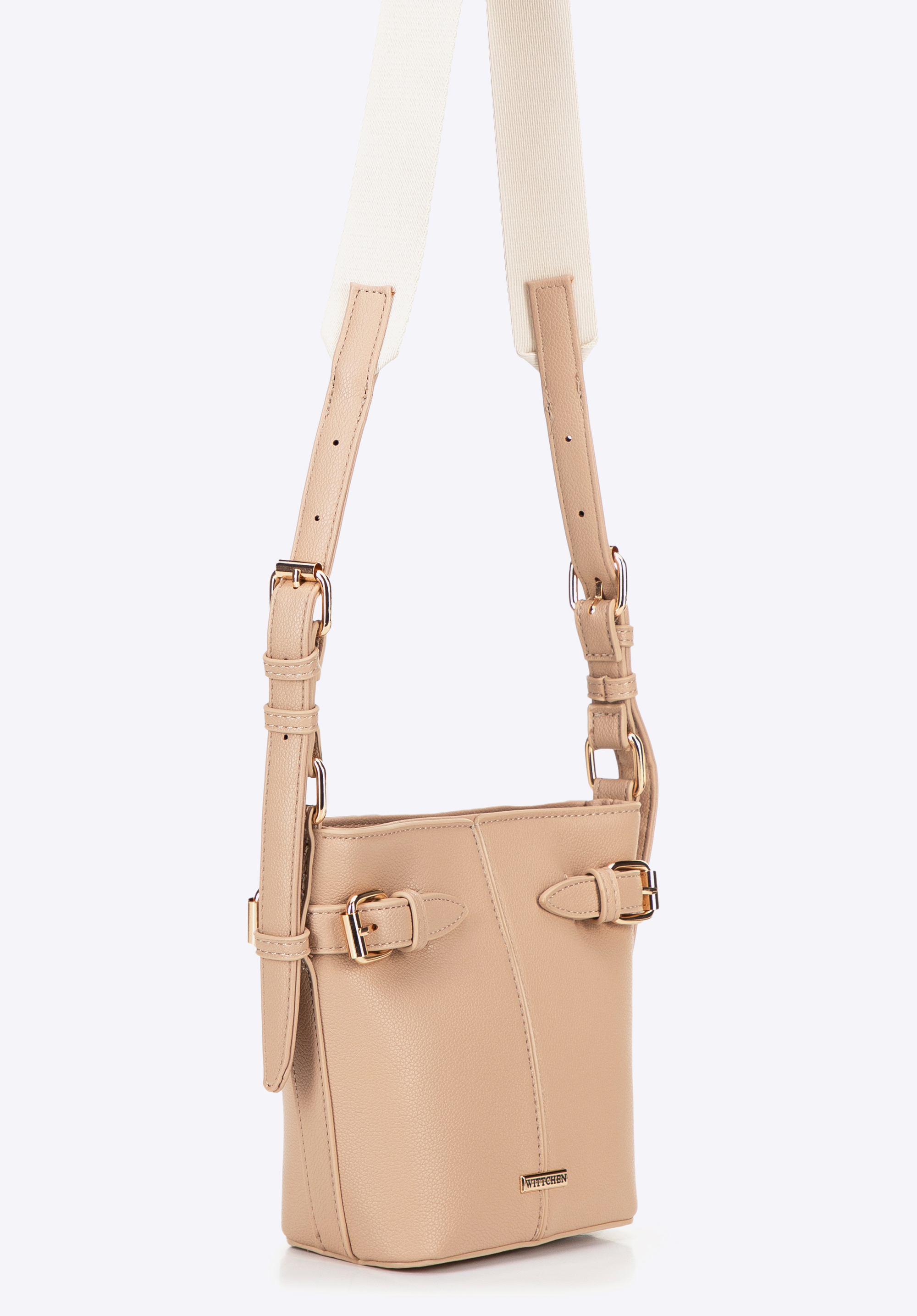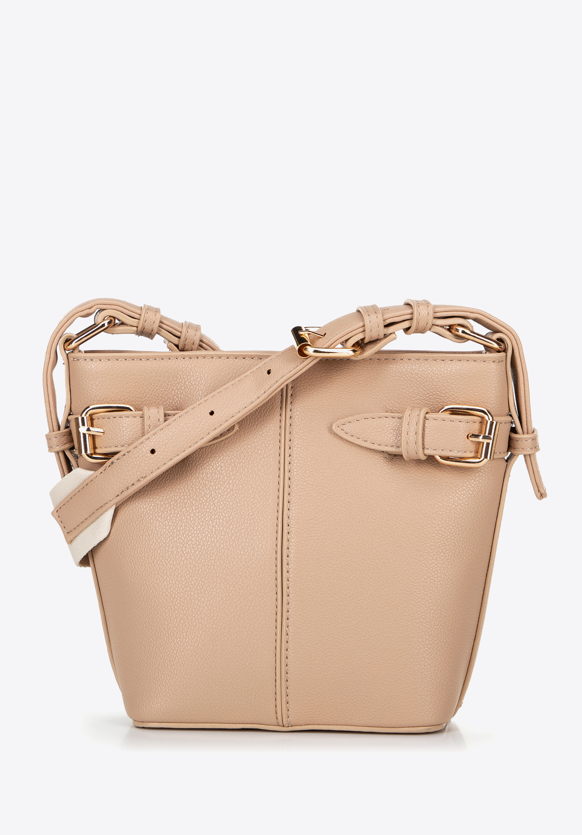 Stylová kbelíková taška s nastavitelným uchem a ozdobnými popruhy