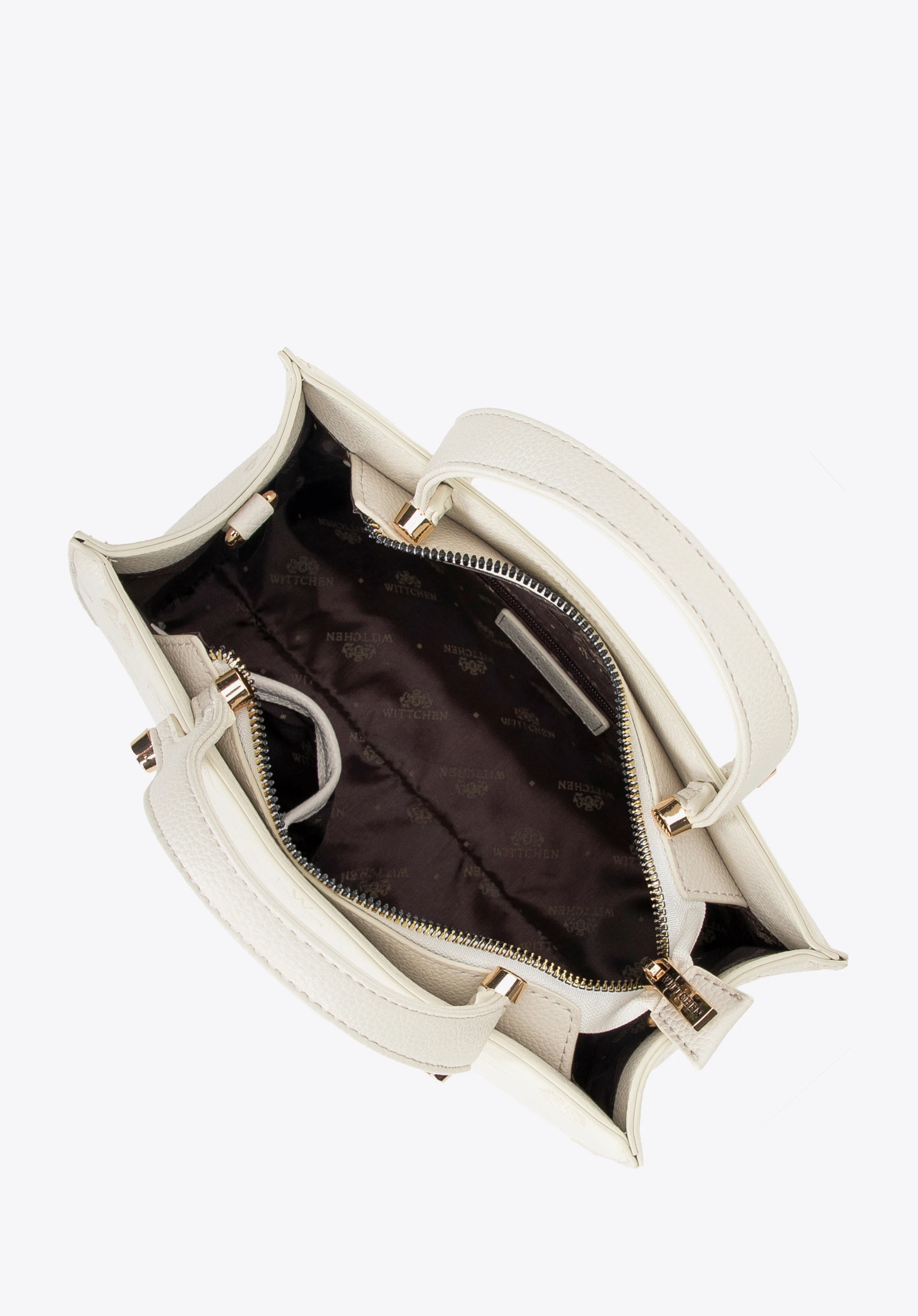Pokud hledáte kabelku , která zaujme svými detaily a je ideální pro každodenní nošení, tato malá strukturovaná kabelka z umělé kůže je perfektní volbou. Její kompaktní siluetu umocňuje celoplošná reliéfní textura a rafinovaný design. Krátká ucha umožňují nošení v ruce, zatímco odnímatelný, nastavitelný popruh umožňuje pohodlné nošení přes rameno. Uvnitř najdete tři kapsy , z nichž jedna je na zip, pro přehledné a bezpečné uložení vašich nezbytností.