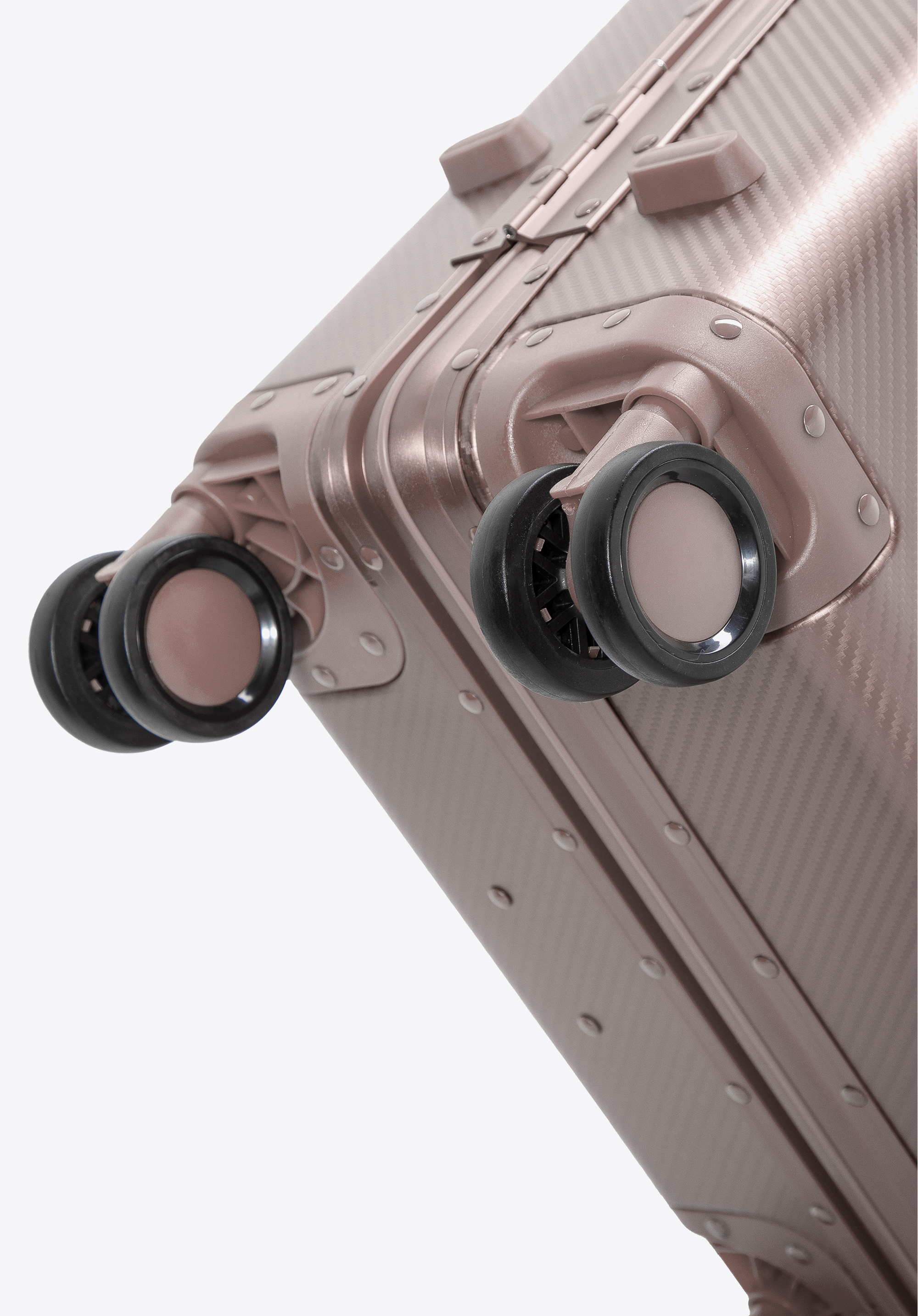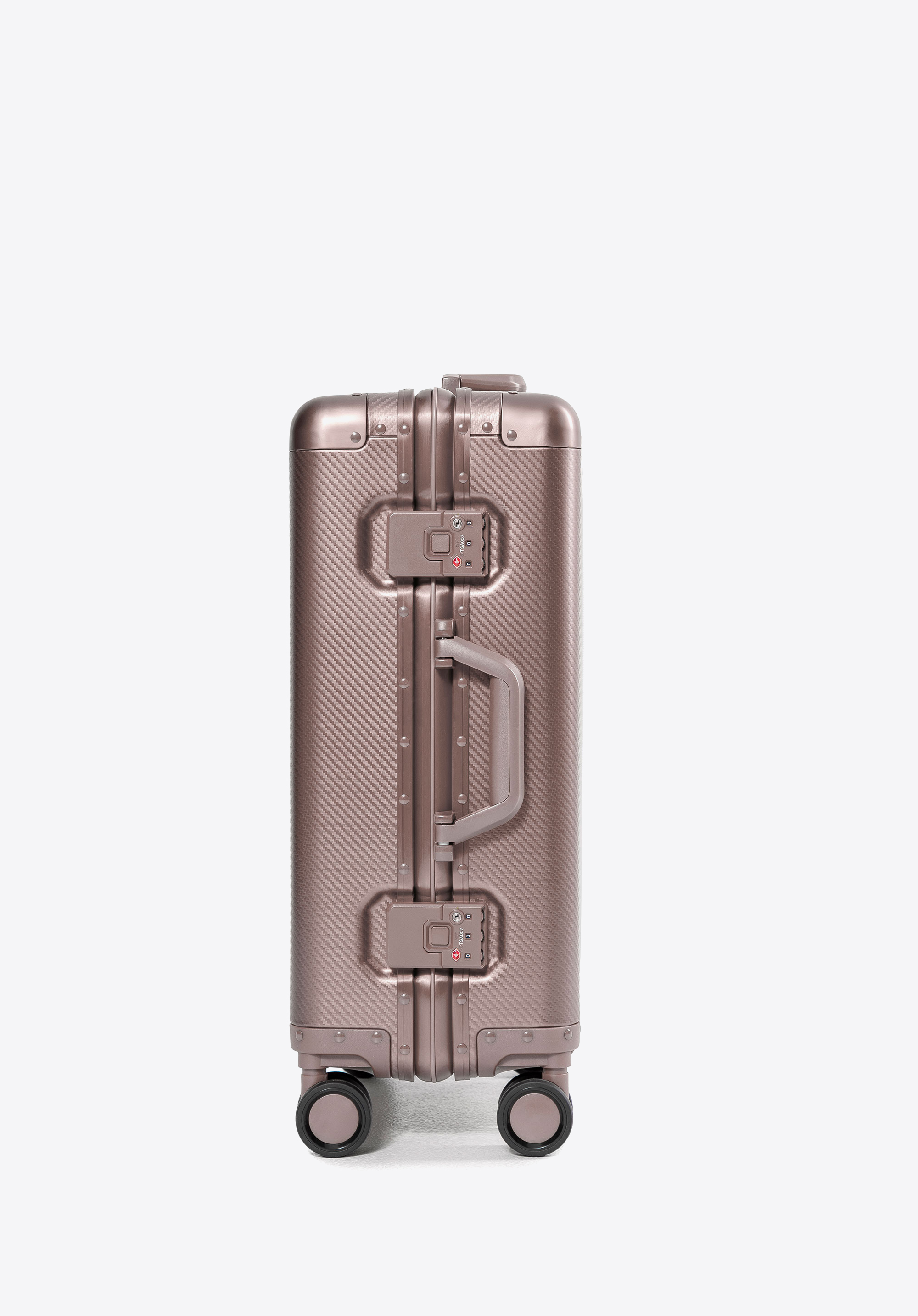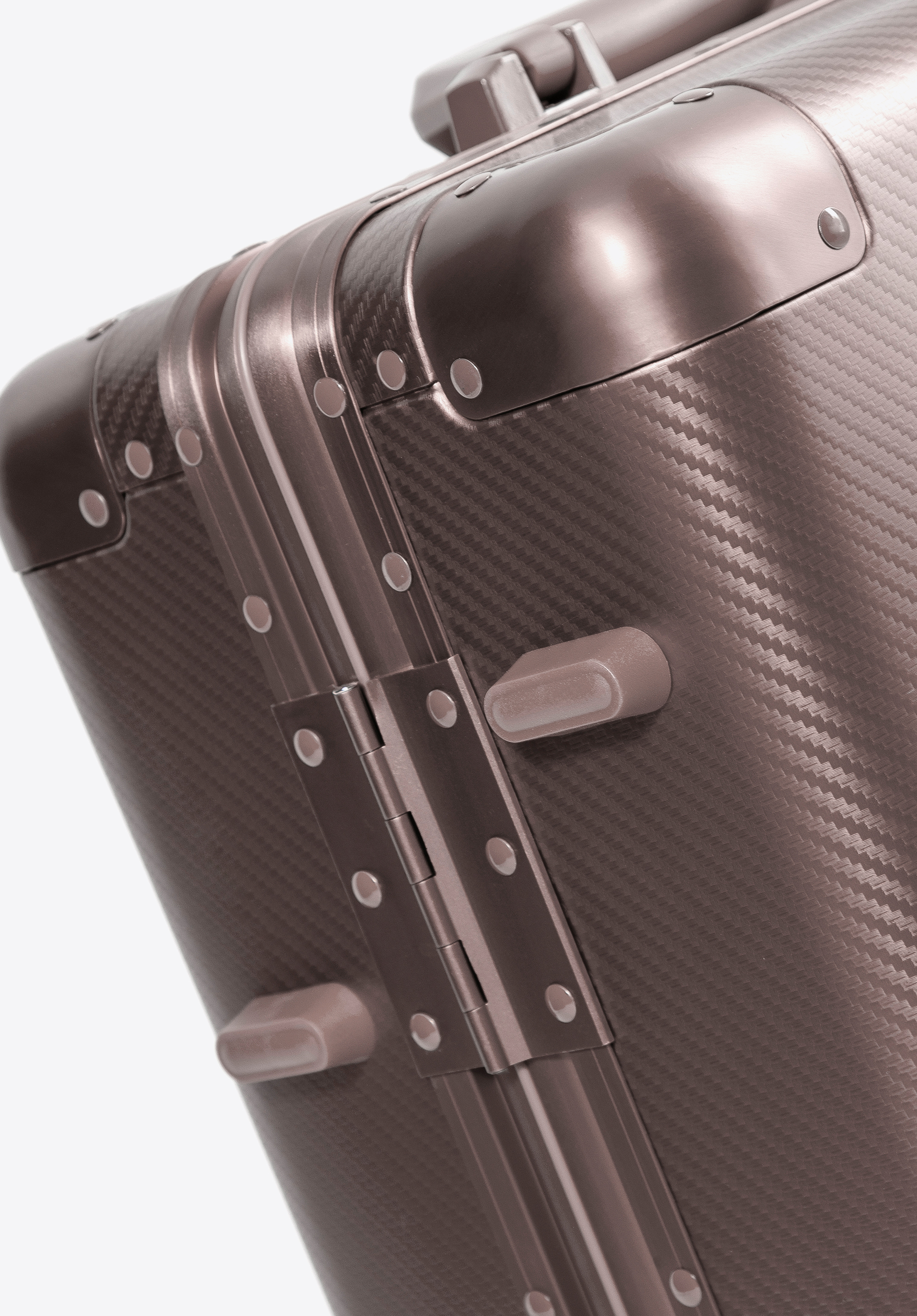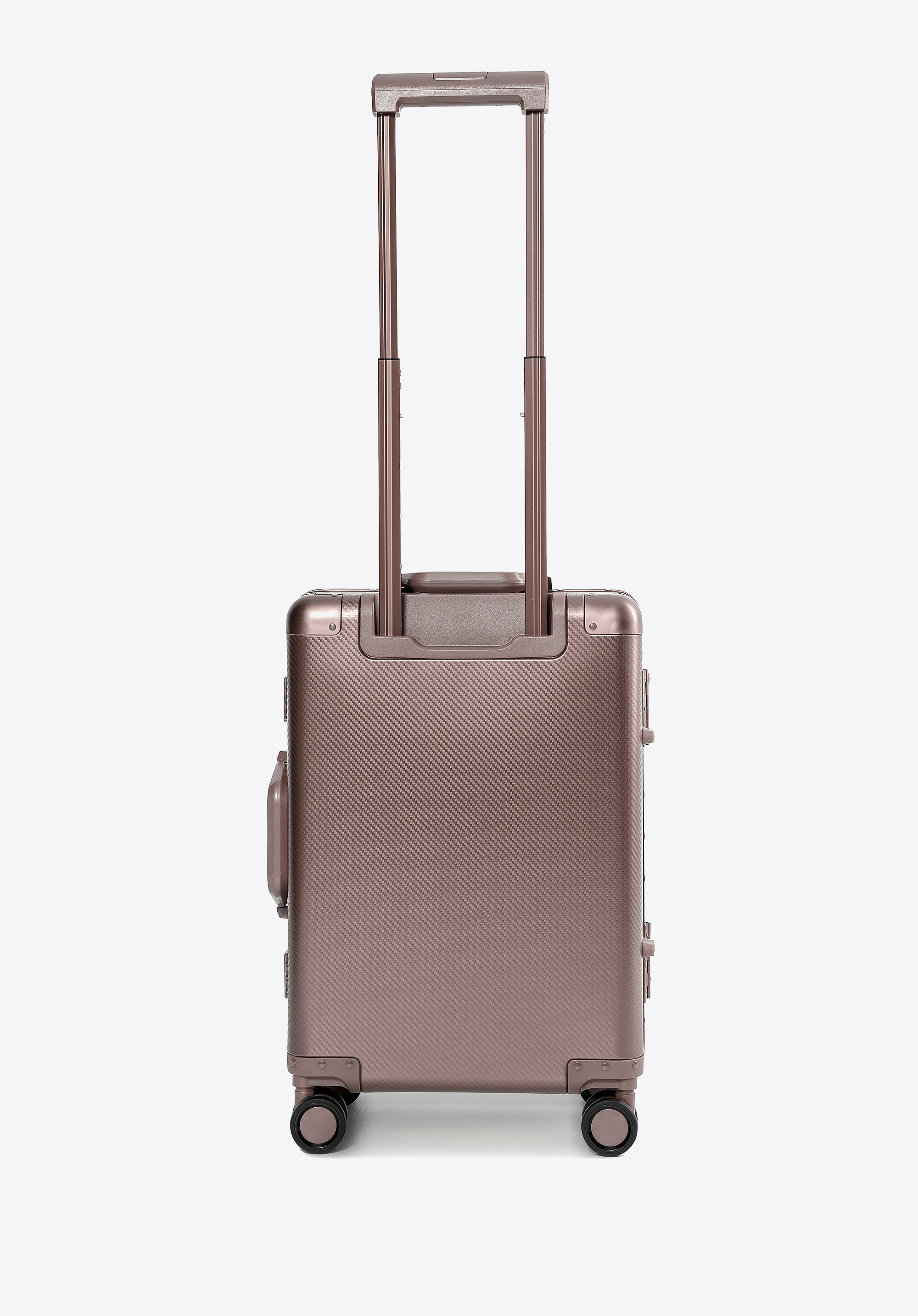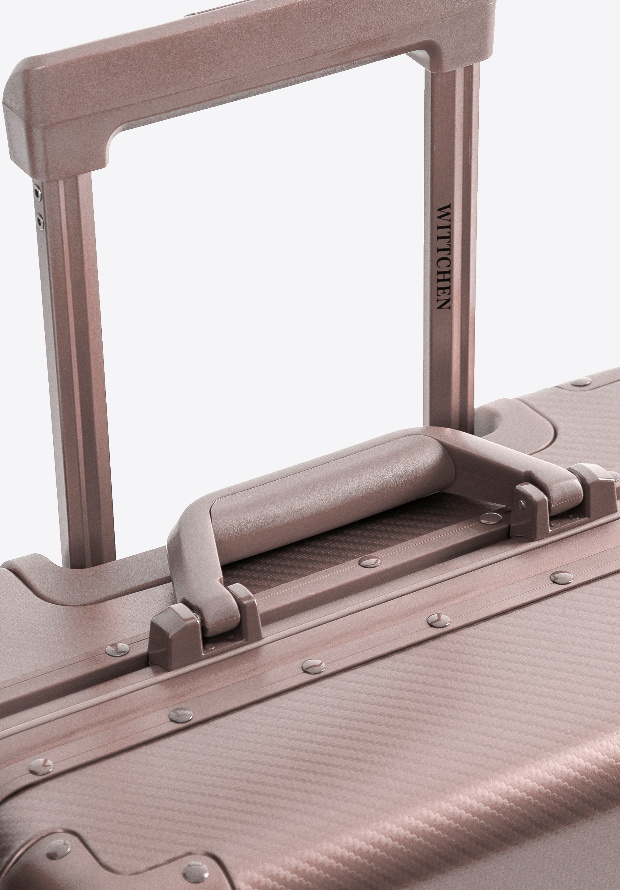 Objevte exkluzivní malý kufr WITTCHEN vyrobený ze 100% hliníku. Zesílené nýtovaní zdůrazňuje jeho jedinečný tvar a pevná konstrukce poskytuje vynikající ochranu zavazadla. Čtyři dvojitá kolečka a hliníková teleskopická rukojeť zajišťují pohodlné a stylové cestování. Vyberte si kufr, který kombinuje eleganci s funkčností – ideální pro každou cestu.
