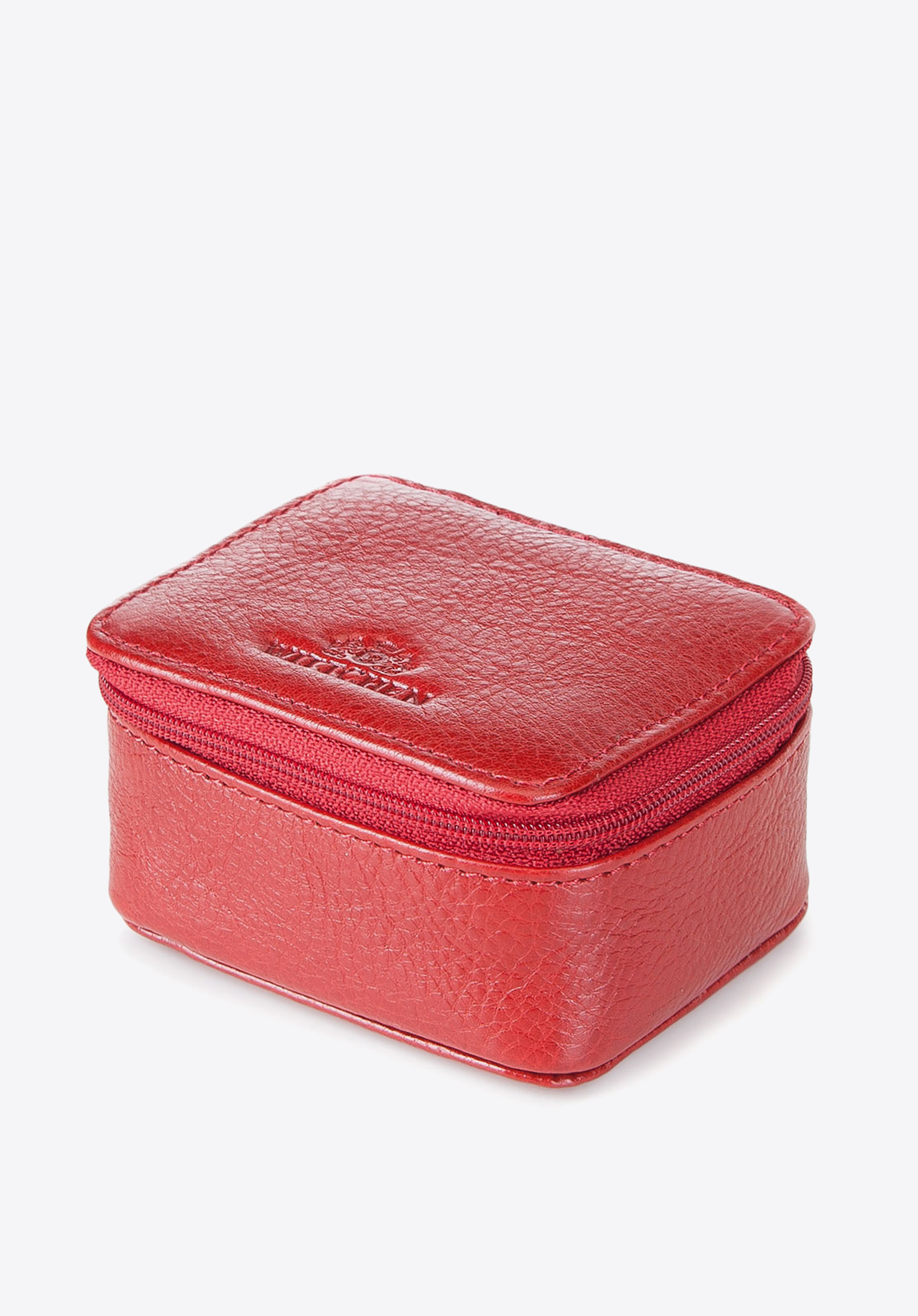 Kožené kosmetické pouzdro ve tvaru krabičky na zip, lze použít jako: