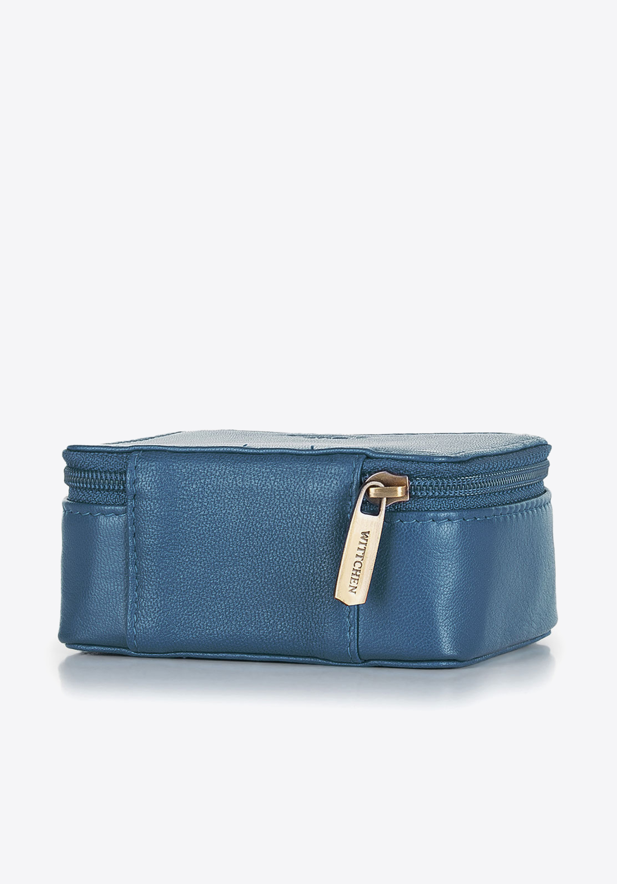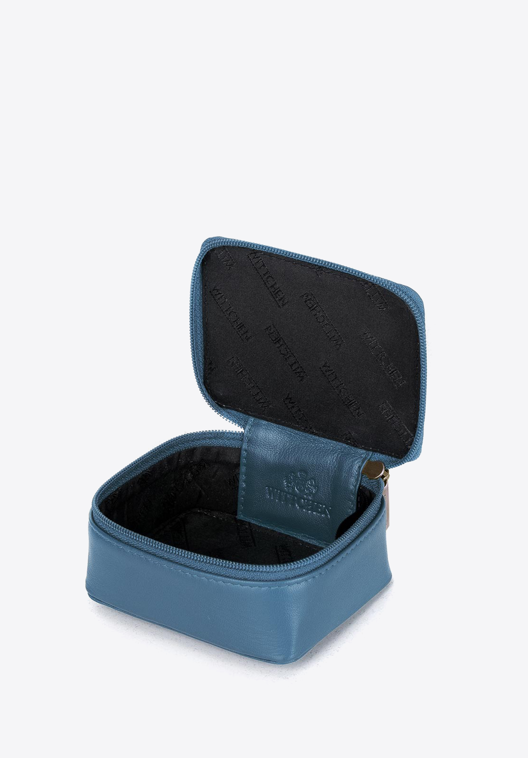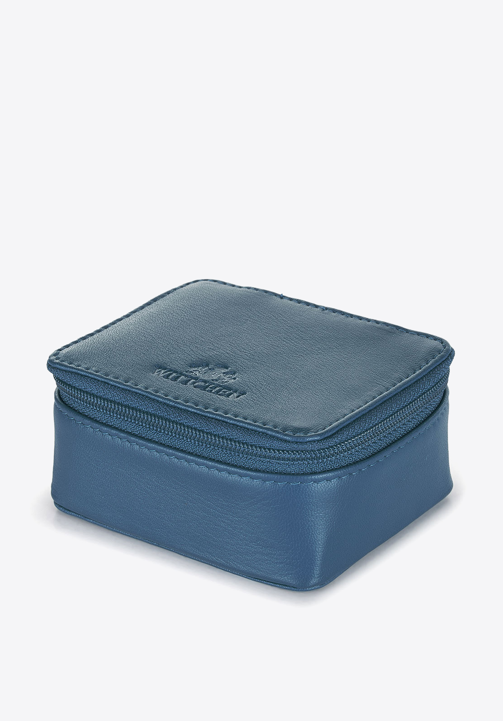 Kožená kosmetická taška je ve tvaru krabičky. Má uzavíraní na zip a lze ji použít jako:
