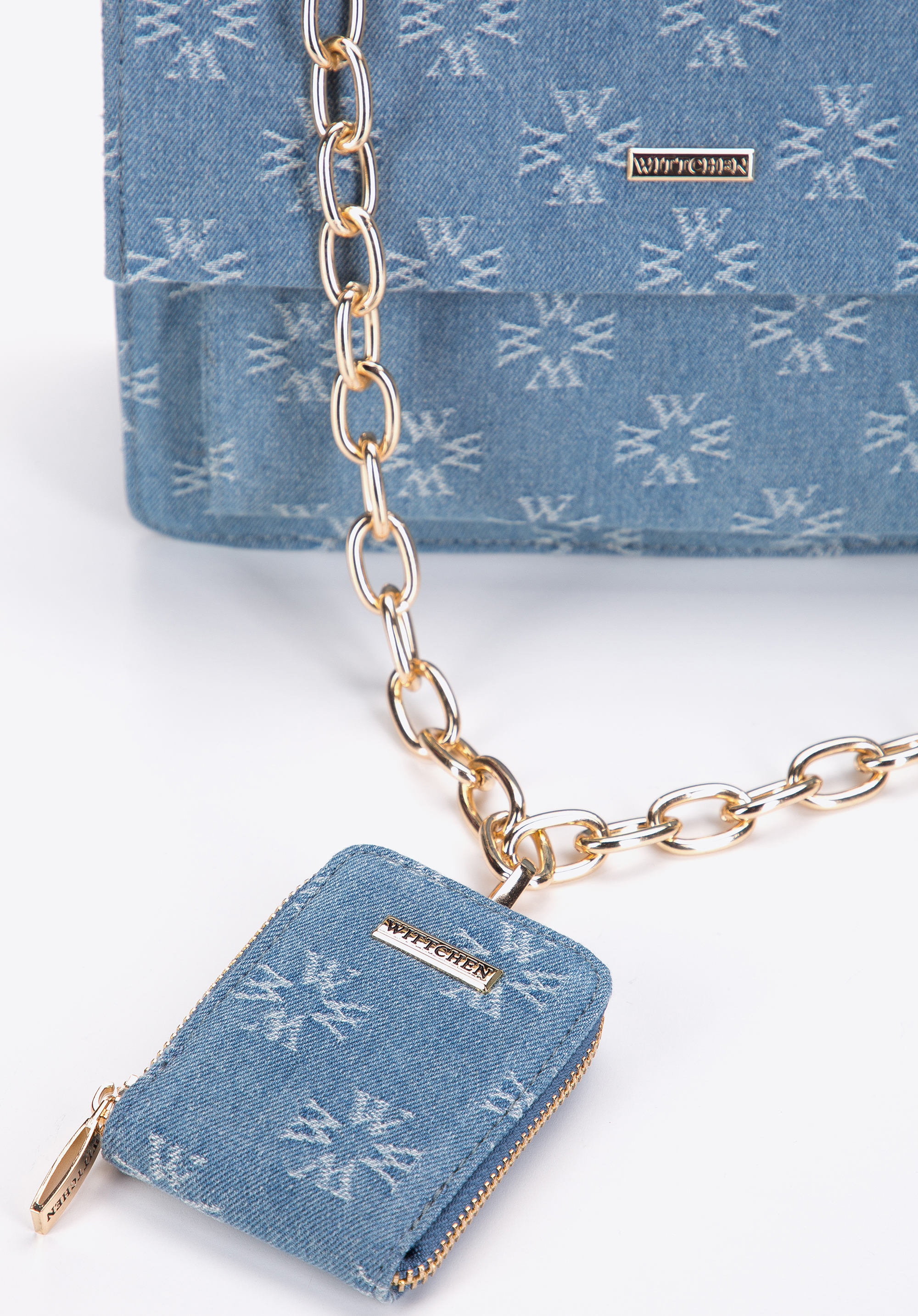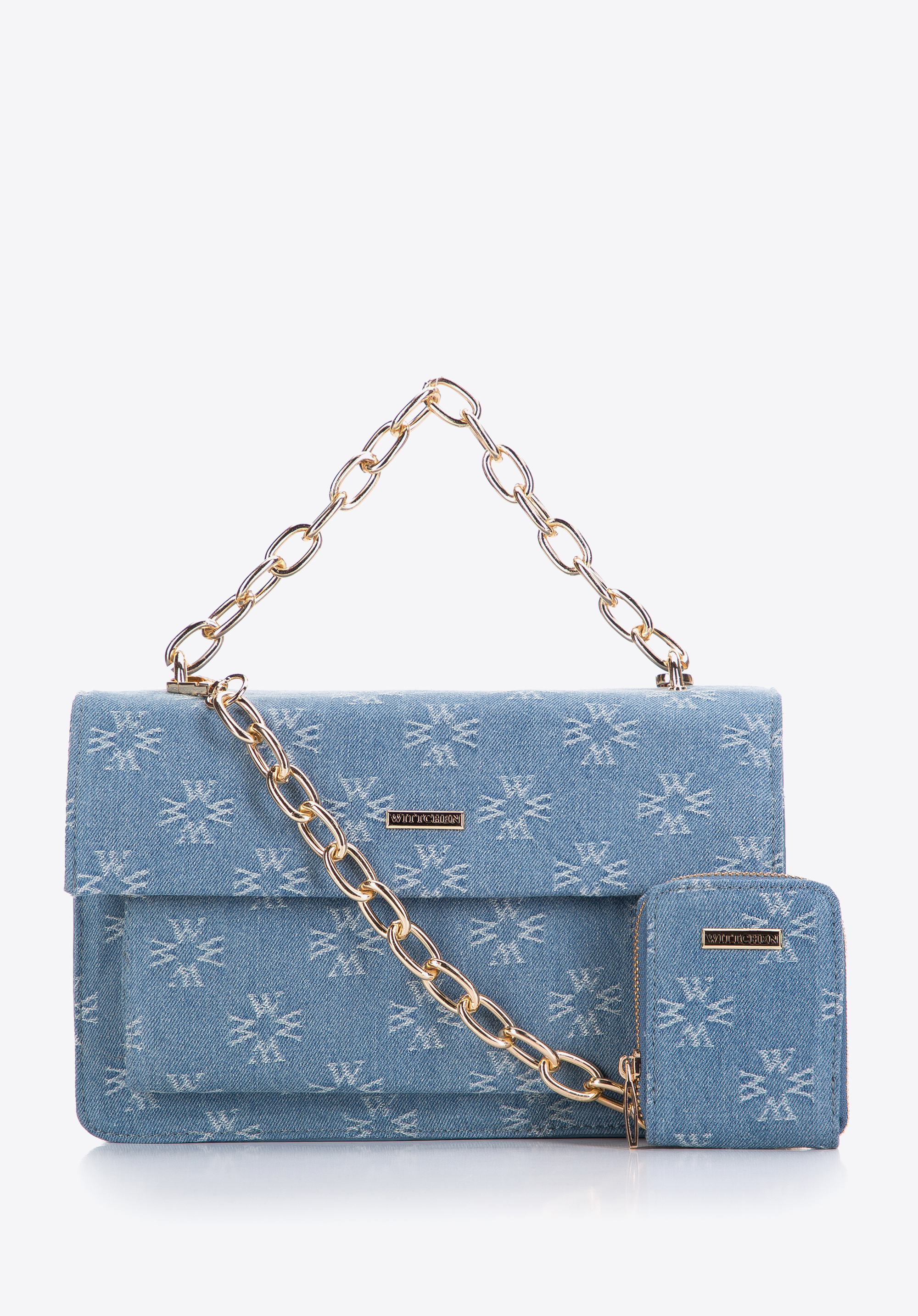 S tímto stylovým doplňkem přitáhnete mnoho pozornosti. Monogram WITTCHEN pokrývá přední část kabelky a klopu. Je vyrobena z vysoce kvalitní ekologické kůže. Uvnitř jsou dvě přehrádky, které usnadňují udržet pořádek. Můžete ji nosit jakkoli: přes rameno nebo v ruce po odepnutí dlouhého řetízku. Tento model obohatí téměř každé jednobarevné šaty a dodá charakter vašim oblíbeným kalhotám. Dámská kabelka s monogramem je módním doplňkem, který můžete nosit po mnoho let.