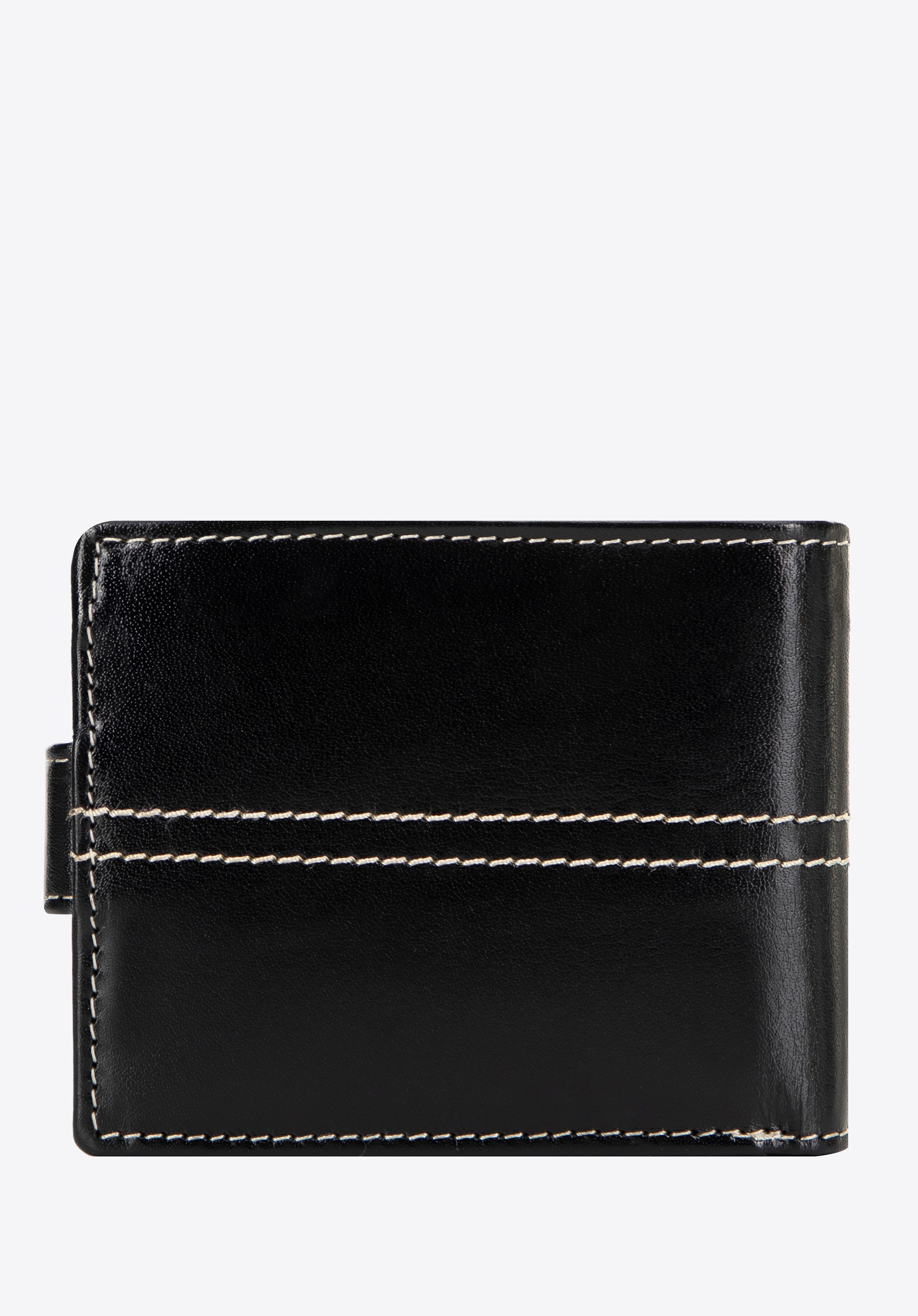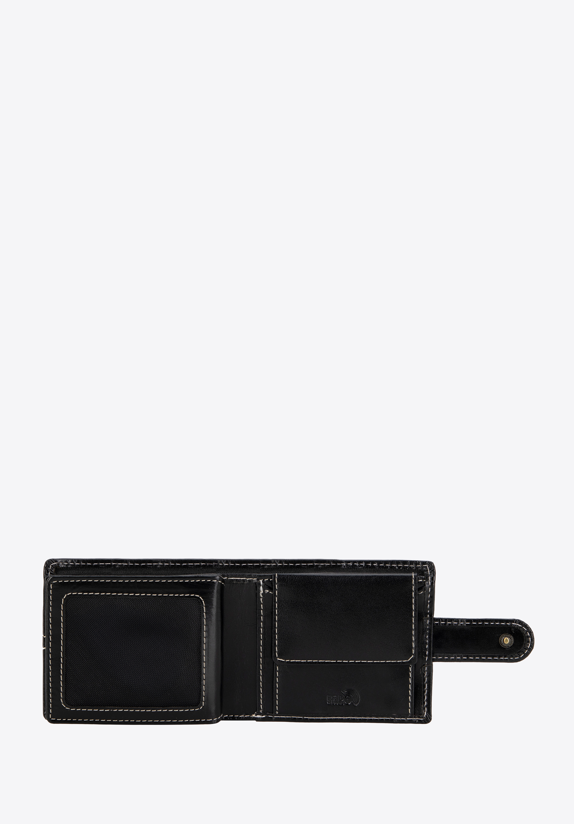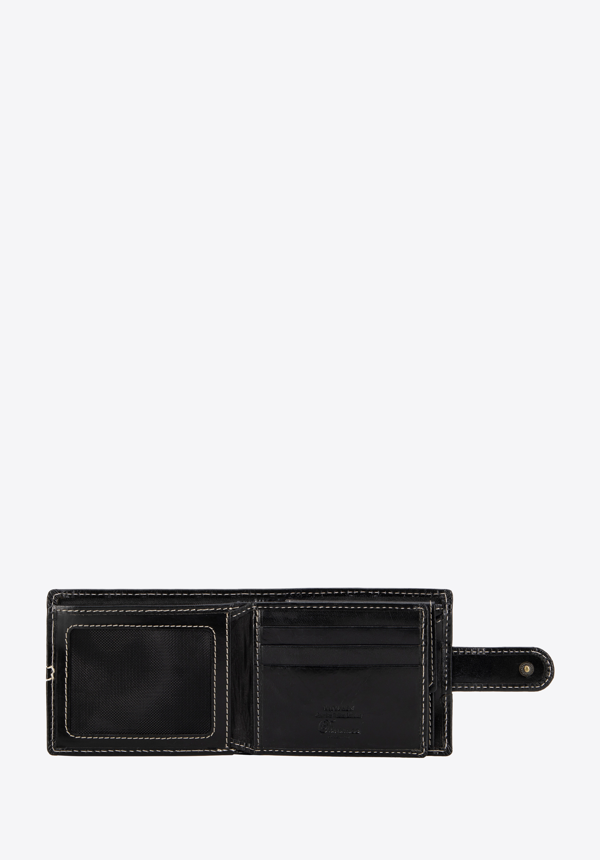 - Zabezpečení: Kožená peněženka je zajištěna páskem se zapínáním na patentku, který poskytuje účinnou ochranu pro vaše cennosti.