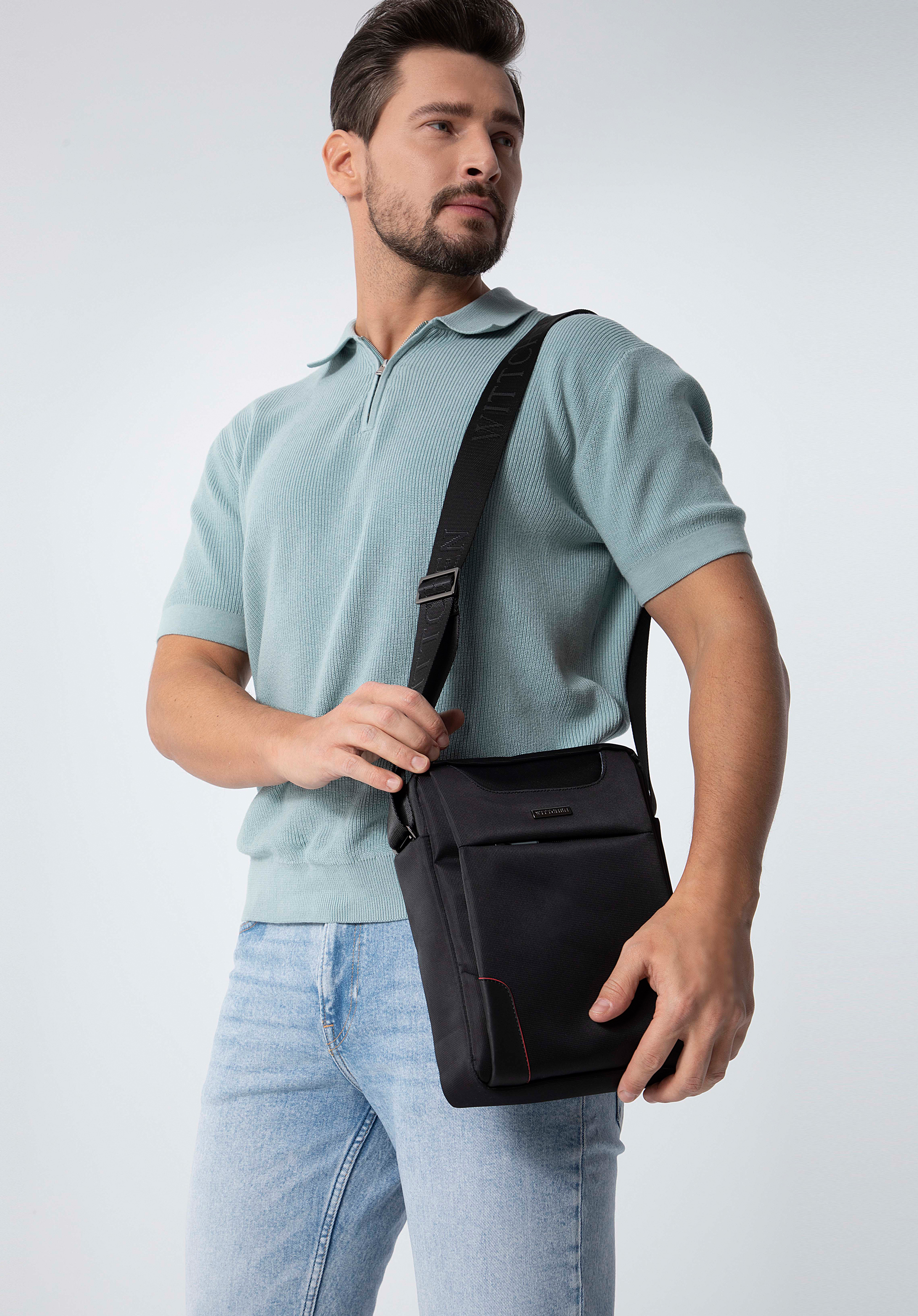 Tato pánská taška ve sportovním stylu je praktickou volbou pro každodenní nošení. Lemování dokončuje matné rohy tašky a dodává ji charakter. Horní výřez skrývá otevřenou kapsu. Uvnitř je dobře organizovaná, s otevřenými kapsami, místy na propisky a další drobnosti, takže můžete v ní snadno mít pořádek a rychle najít, co v danou chvíli potřebujete. Má široký nastavitelný pásek s nápisem WITTCHEN, takže si ji můžete přizpůsobit své postavě. Pánská taška s ozdobným výřezem je doplňkem s charakterem pro každého moderního muže.