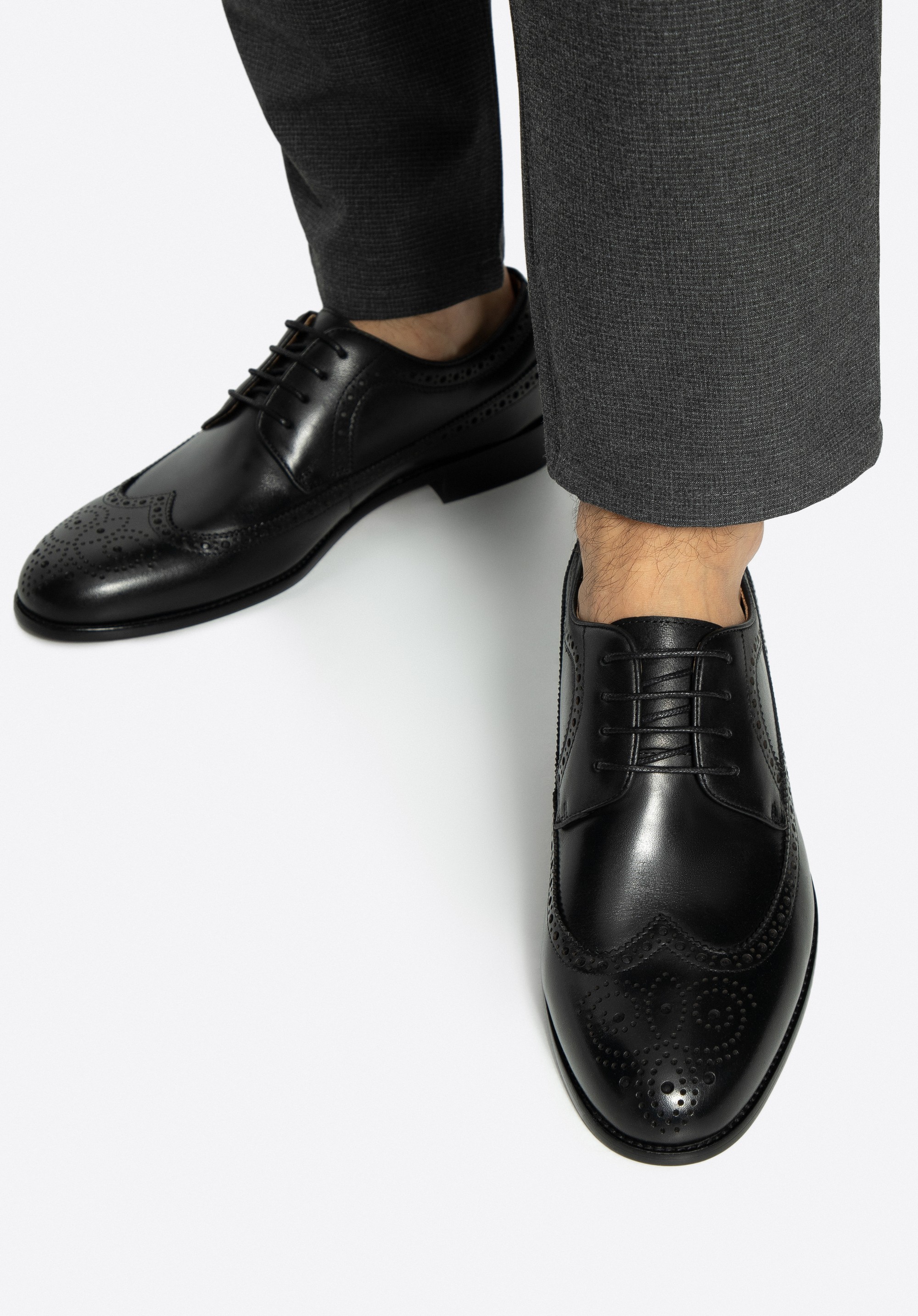 Pánské boty z přírodní kůže a z perforaci Barva: černá