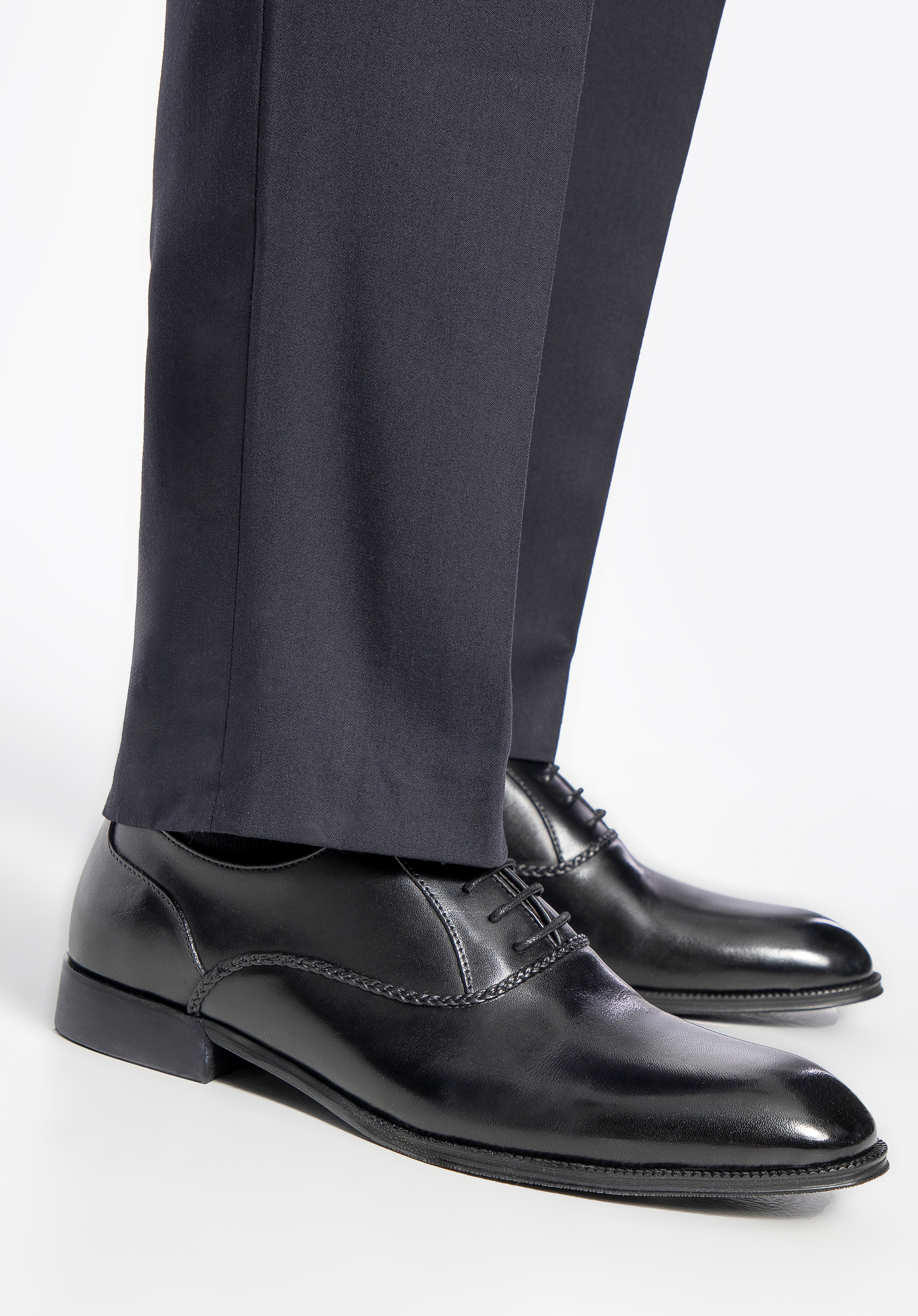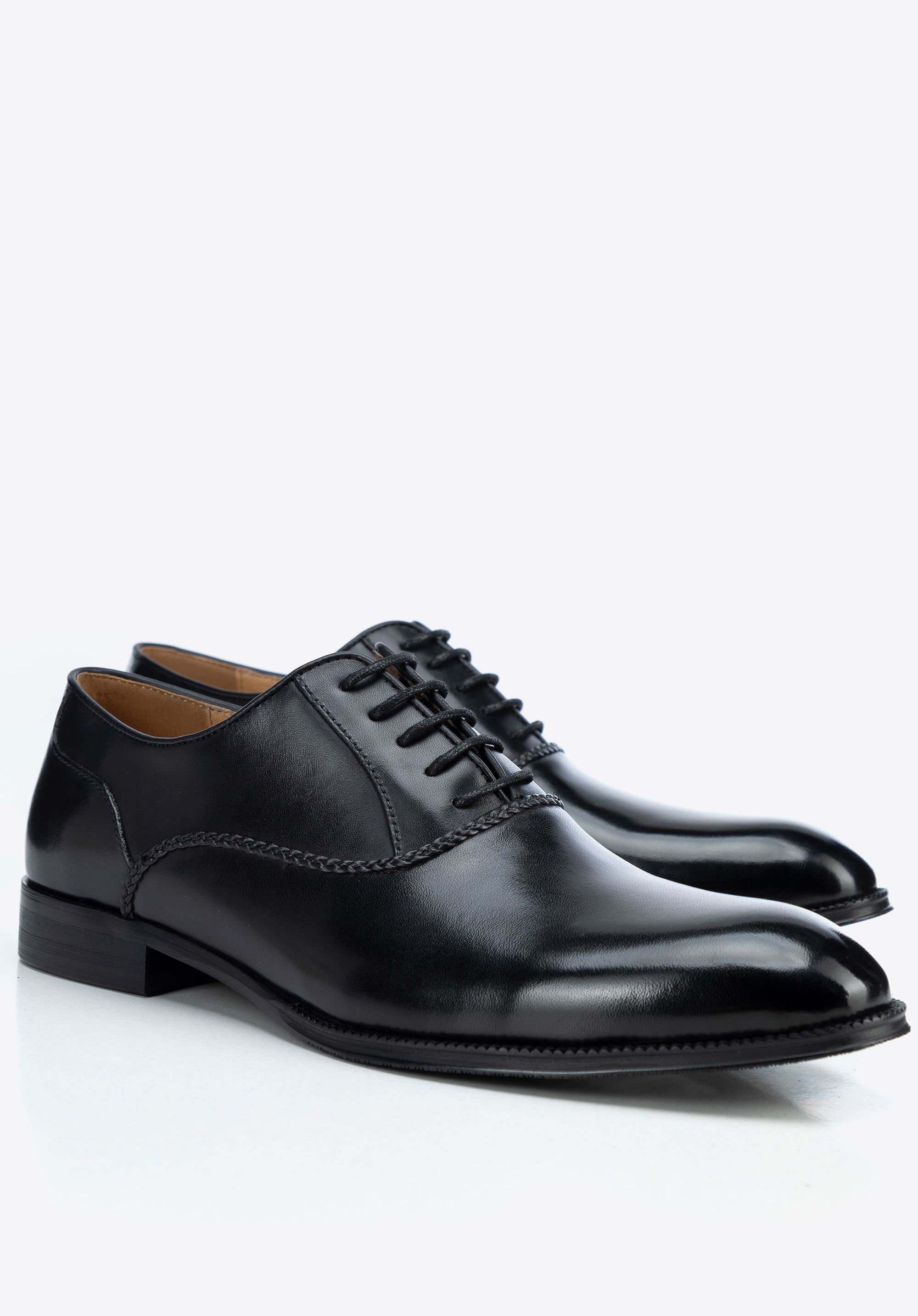 Pánské černé kožené polobotky s ozdobným prošíváním