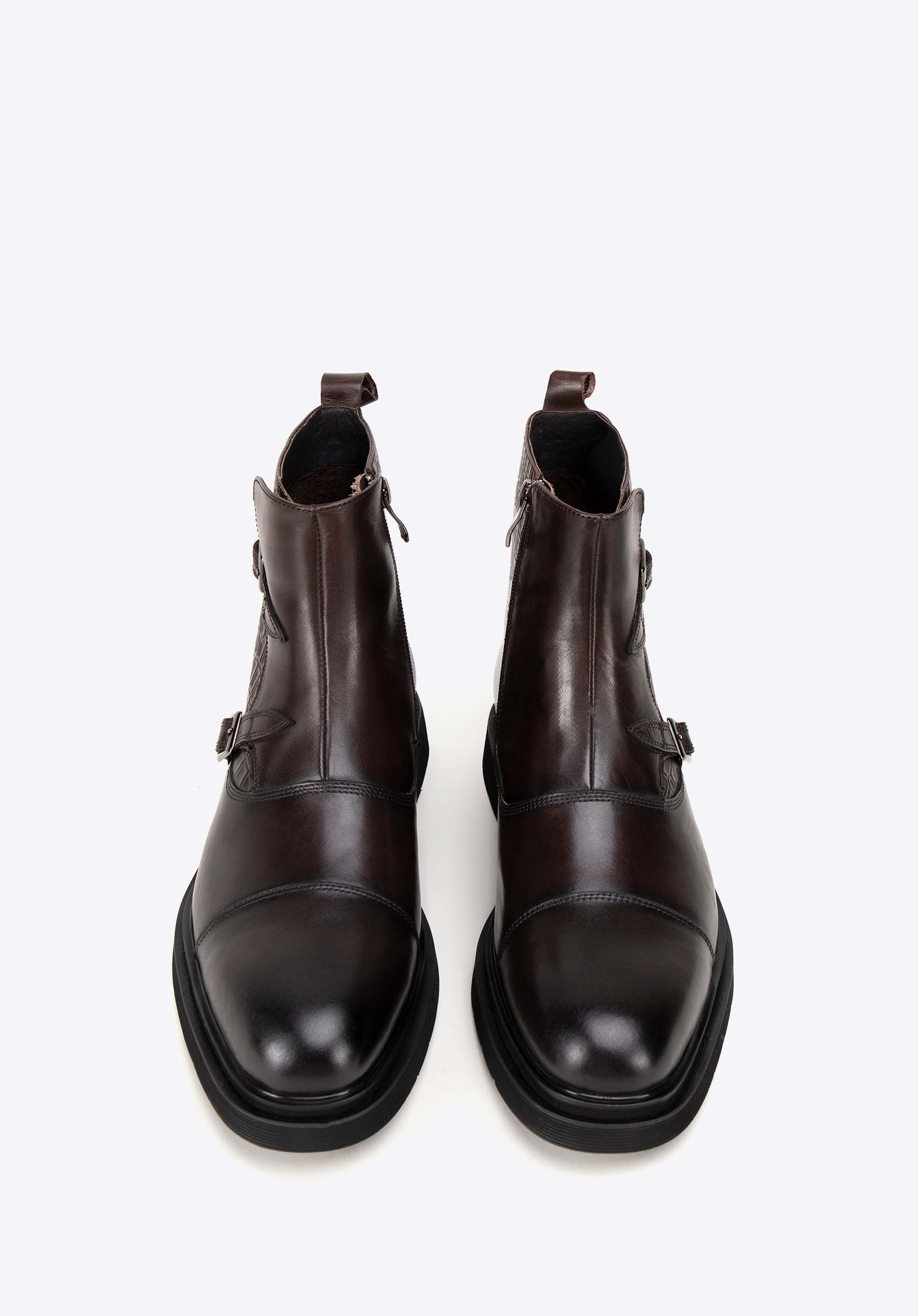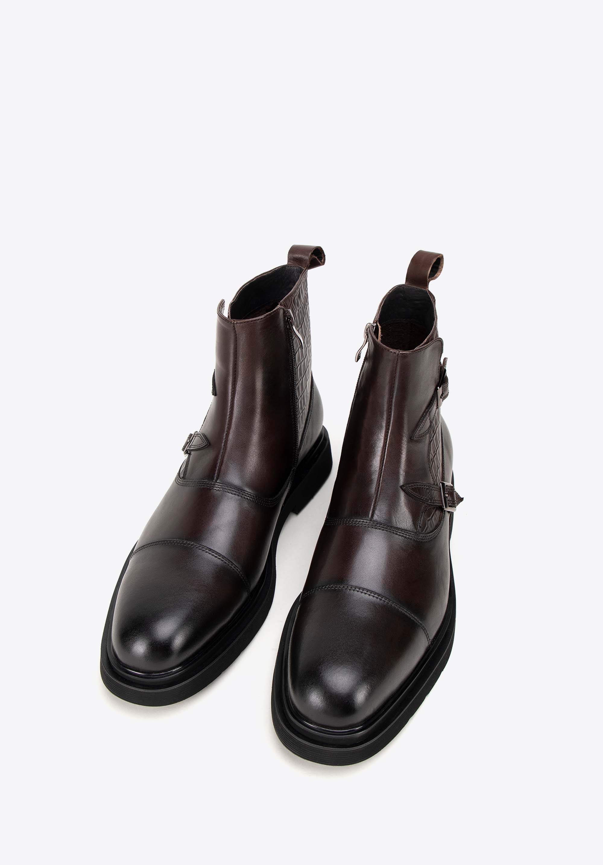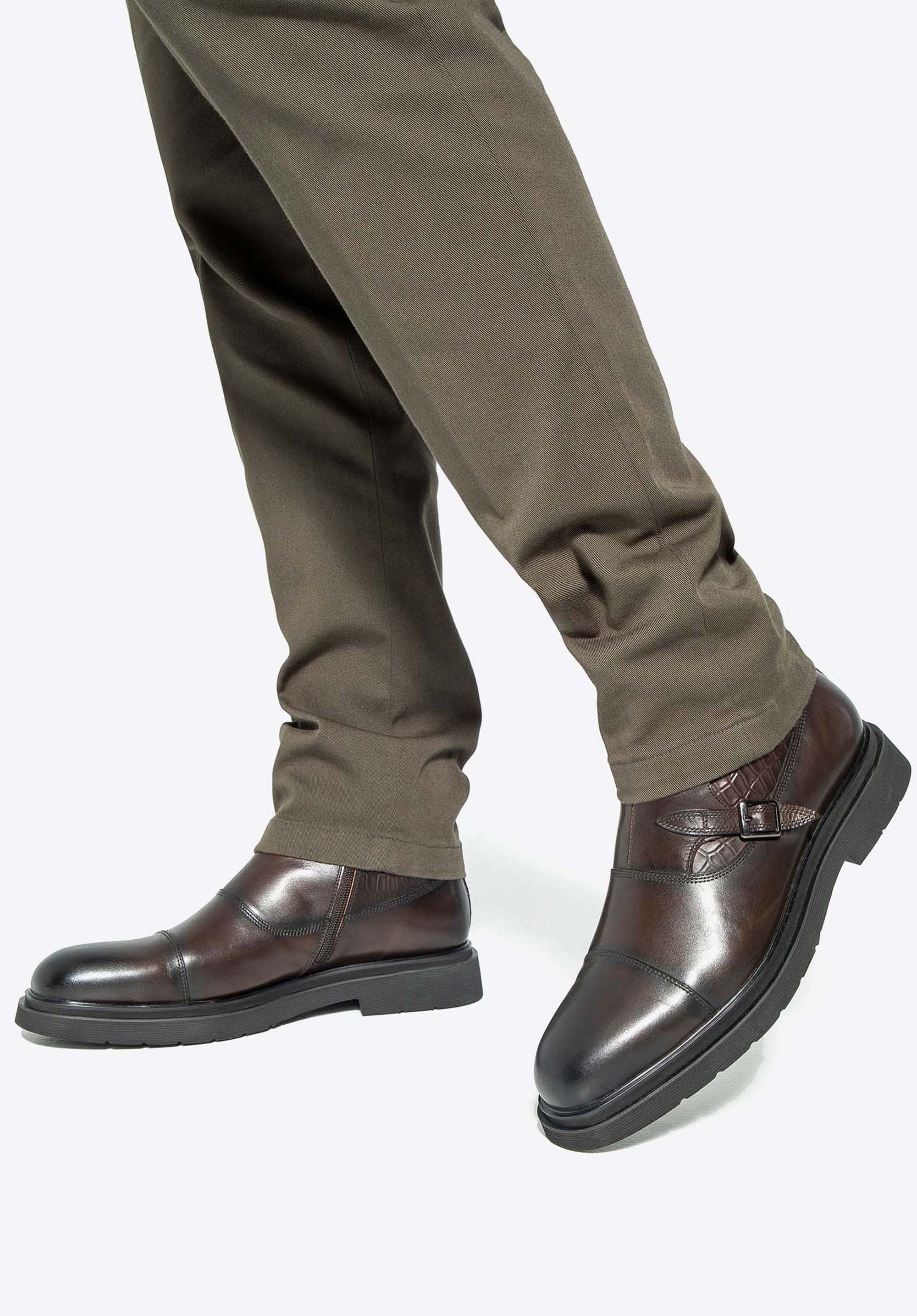 Tyto pánské boty jsou esencí elegance a pohodlí, vyrobené z vysoce kvalitní, přírodní kůže a jsouzdobené krokodýlovými vsadkami. Měkká kožená podšívka a mandlová špička poskytují pohodlí po celý den. Plochý podpatek a pevná guma na patě zaručují stabilitu na jakémkoli povrchu. Praktický zip usnadňuje nazouvání, zatímco dvě ozdobné přezky a prošívání na špičce dodávají botám elegantní vzhled. Dokonalá kombinace stylu a funkčnosti pro moderního muže.