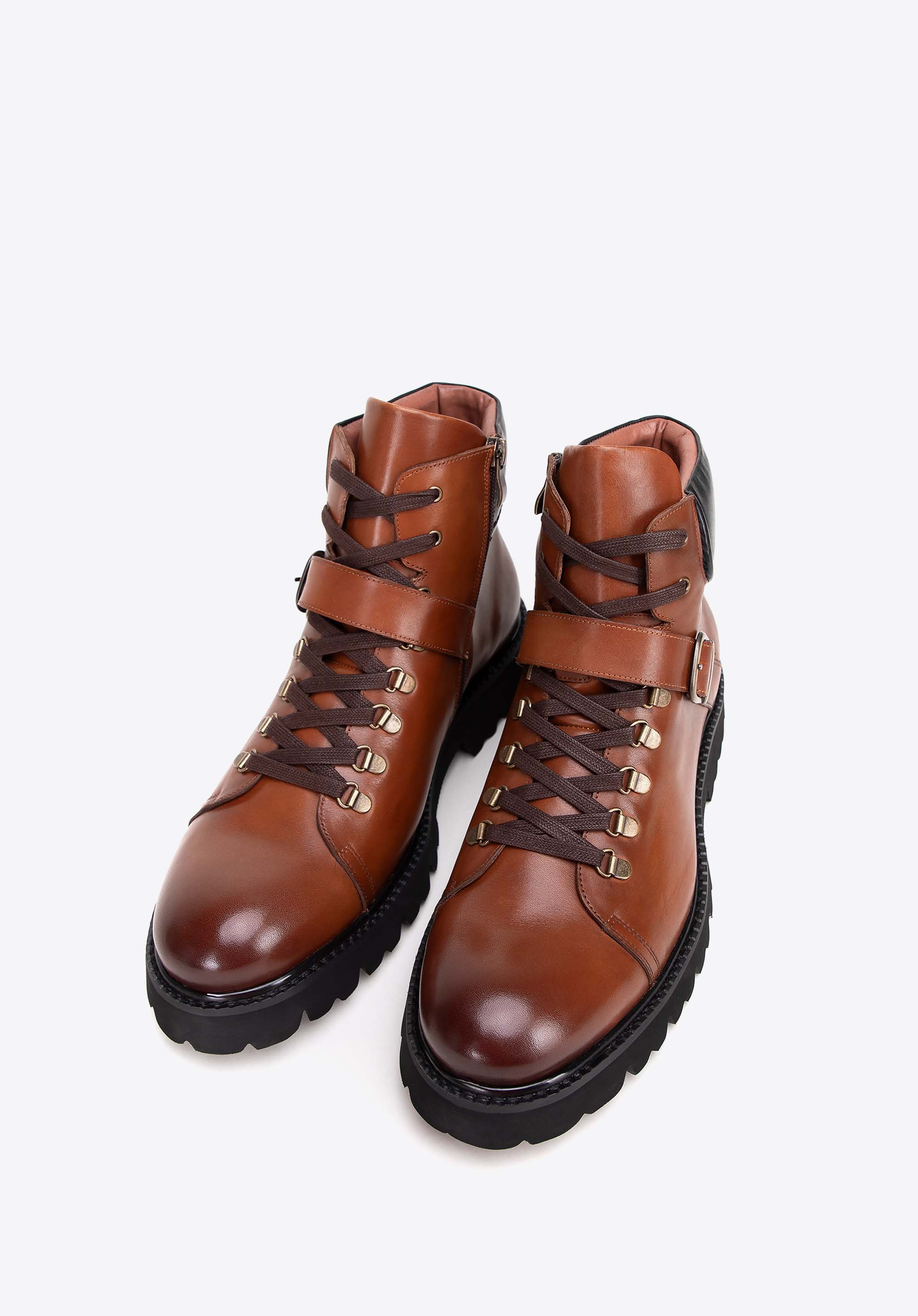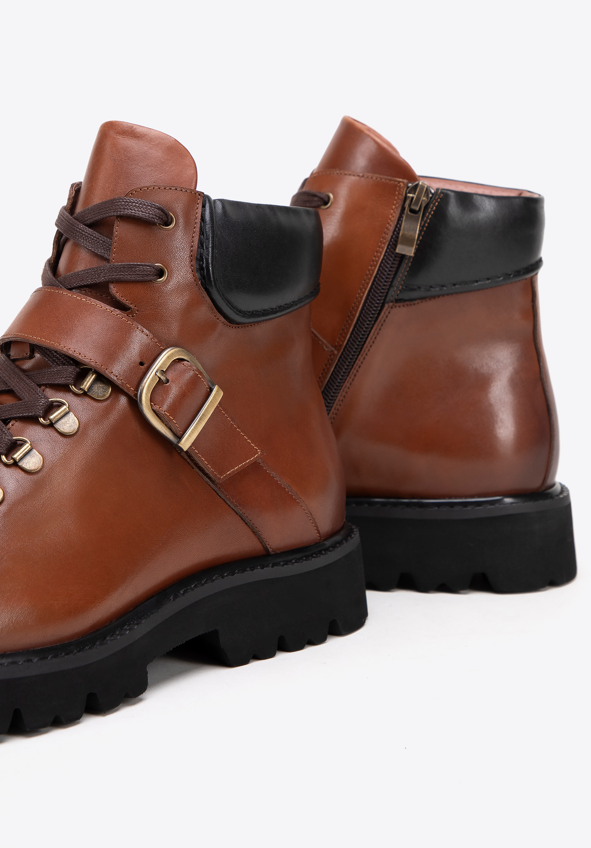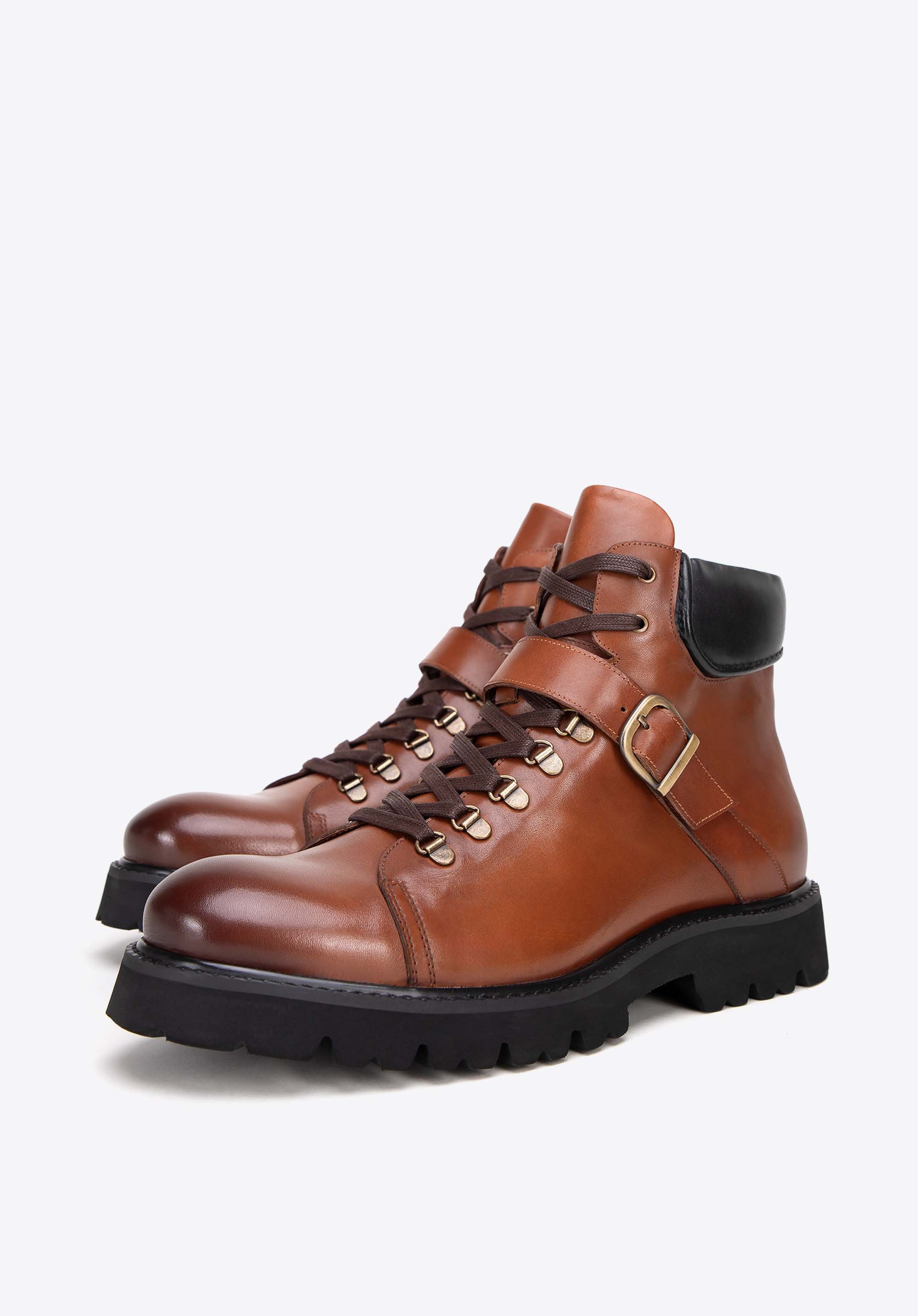 Tyto pánské boty s přezkou jsou kombinací bezkonkurenčního pohodlí a moderního stylu. Jejich vzhled dokonale se ladí s vysoce kvalitními materiály, jako je přírodní kůže a silná plastová podrážka, která zajišťuje stabilitu a izolaci. Každý krok poskytuje nejen pevnost, ale také pohodlí díky kožené vložce a měkkému vnitřku. Vyztužená pata zajišťuje stabilitu nohy a klasické šněrování se zipem zajišťuje snadné nazouvání a vyzouvání.