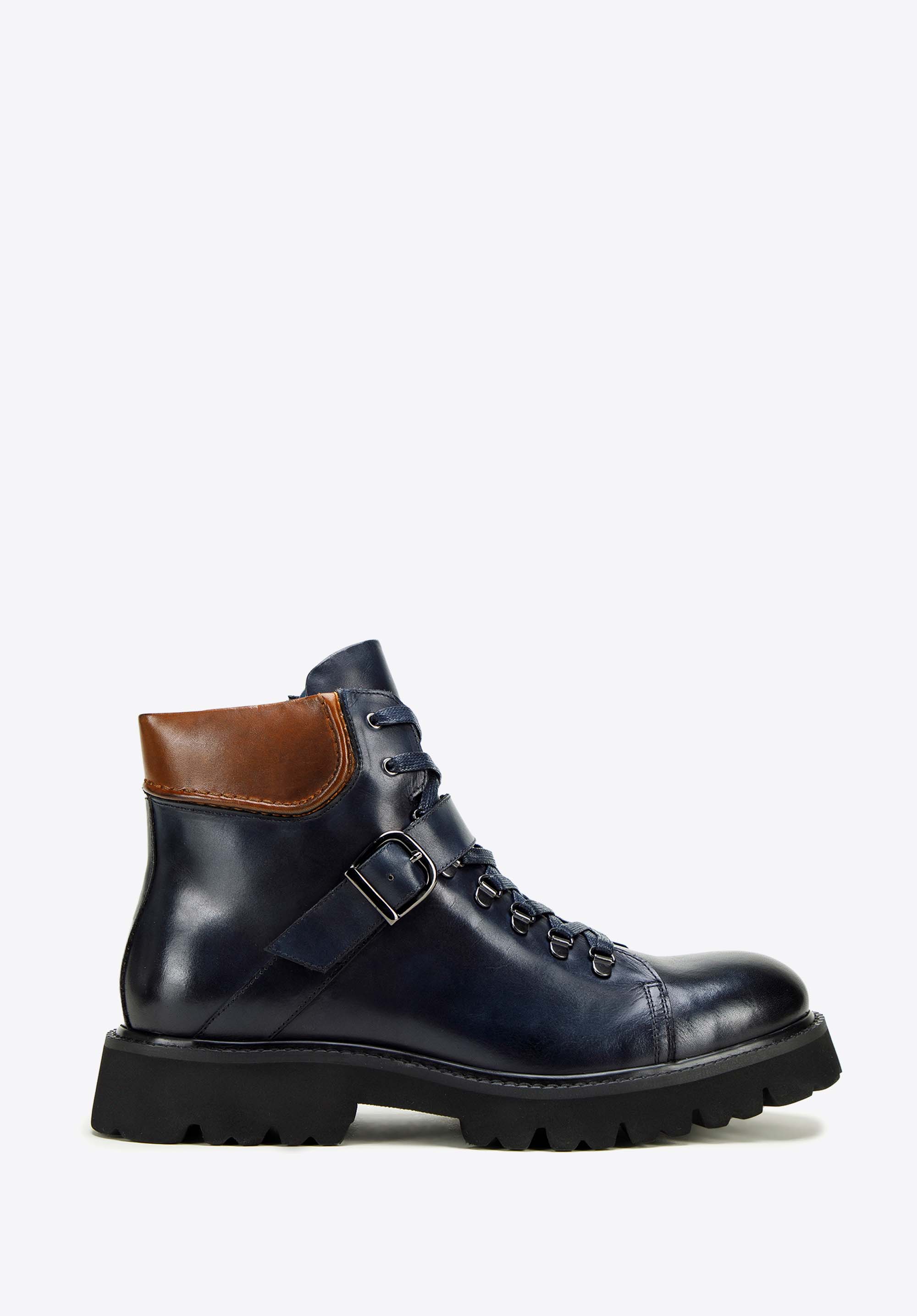 Tyto pánské boty s přezkou jsou kombinací bezkonkurenčního pohodlí a moderního stylu. Jejich vzhled dokonale se ladí s vysoce kvalitními materiály, jako je přírodní kůže a silná plastová podrážka, která zajišťuje stabilitu a izolaci. Každý krok poskytuje nejen pevnost, ale také pohodlí díky kožené vložce a měkkému vnitřku. Vyztužená pata zajišťuje stabilitu nohy a klasické šněrování se zipem zajišťuje snadné nazouvání a vyzouvání.