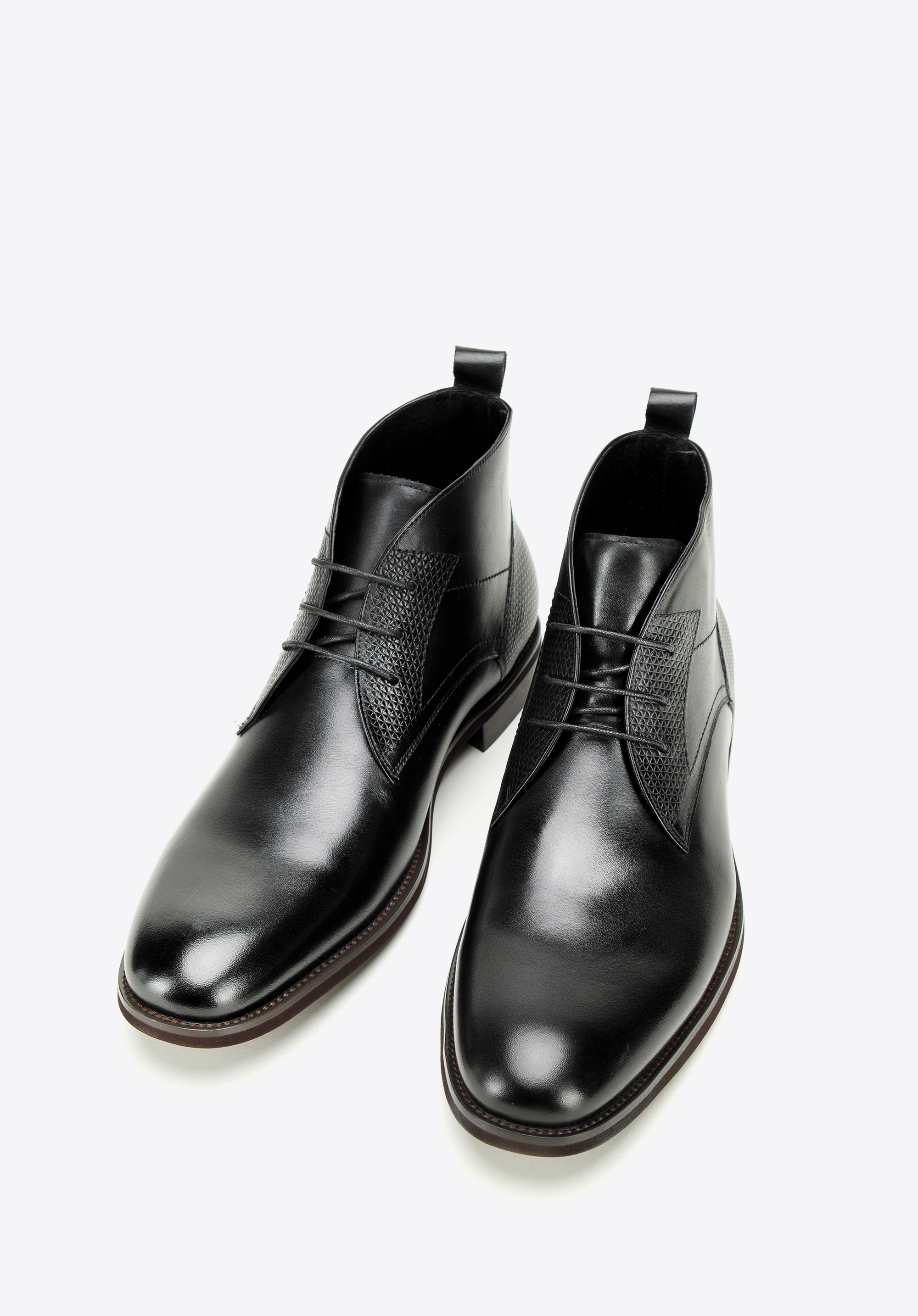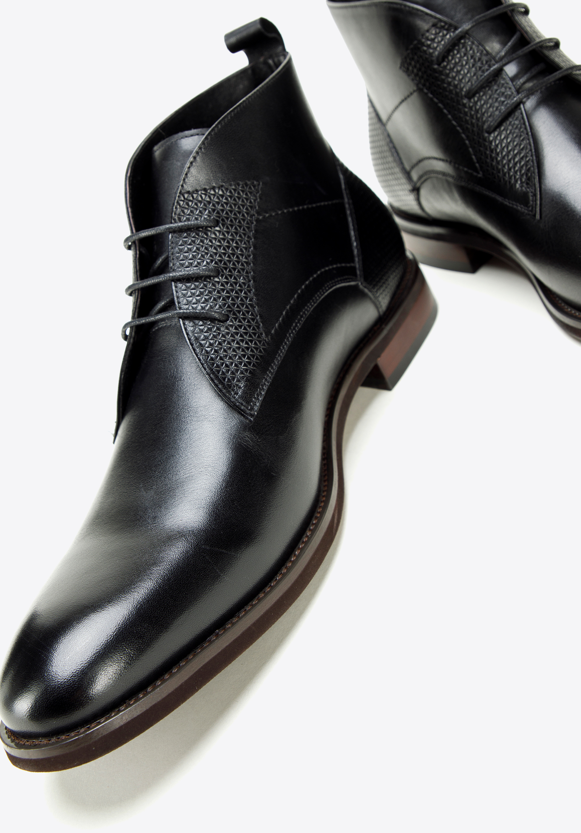Tyto stylové pánské boty jsou perfektní volbou na jaro a podzim pro každého muže. Vyrobeny z vysoce kvalitní přírodní kůže, vyznačují se klasickým střihem, který byl zpestřen ozdobnými vsadkami s geometrickým vzorem. Tyto detaily nejen vyniknou, ale také podtrhnou eleganci svého nositele.