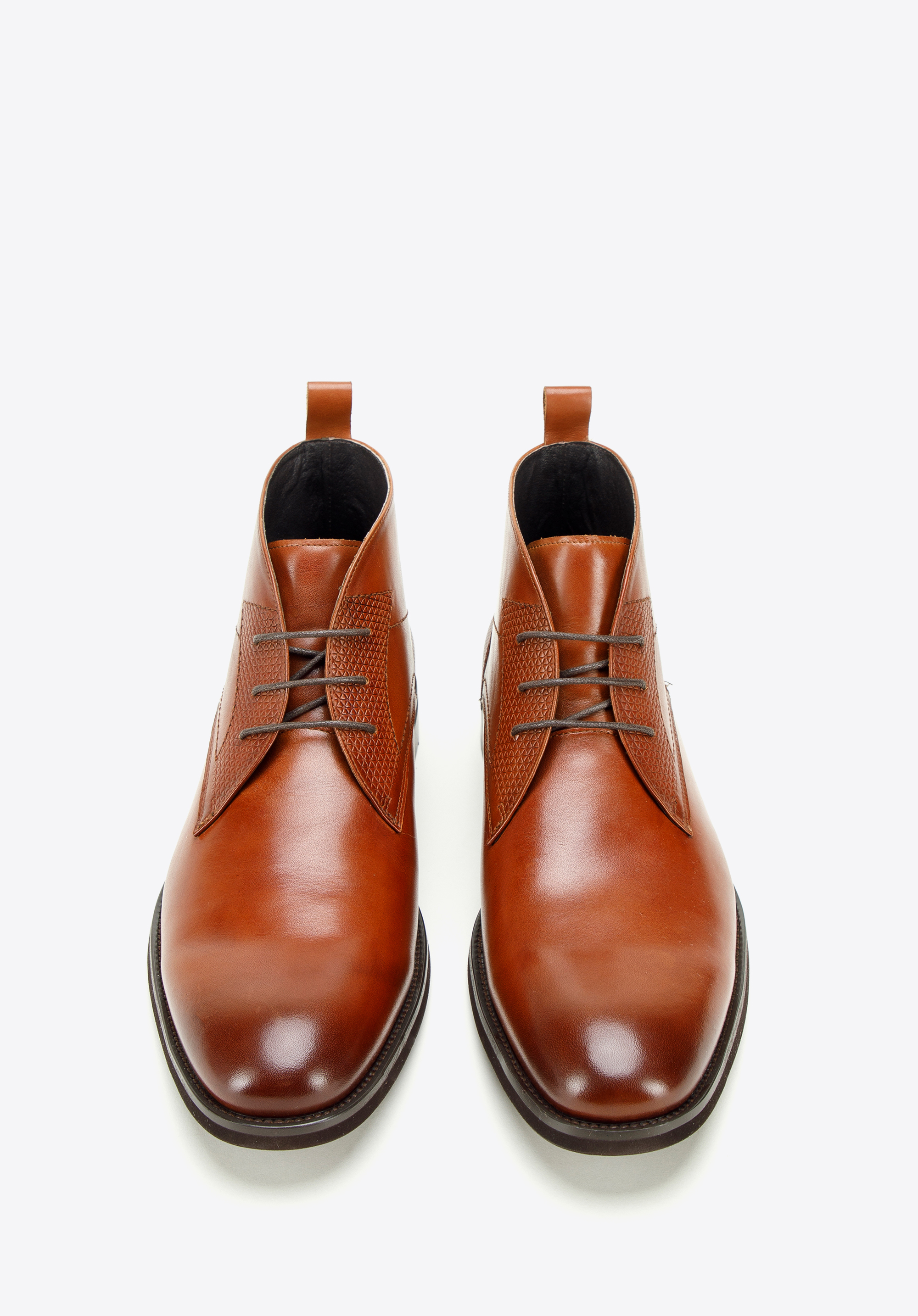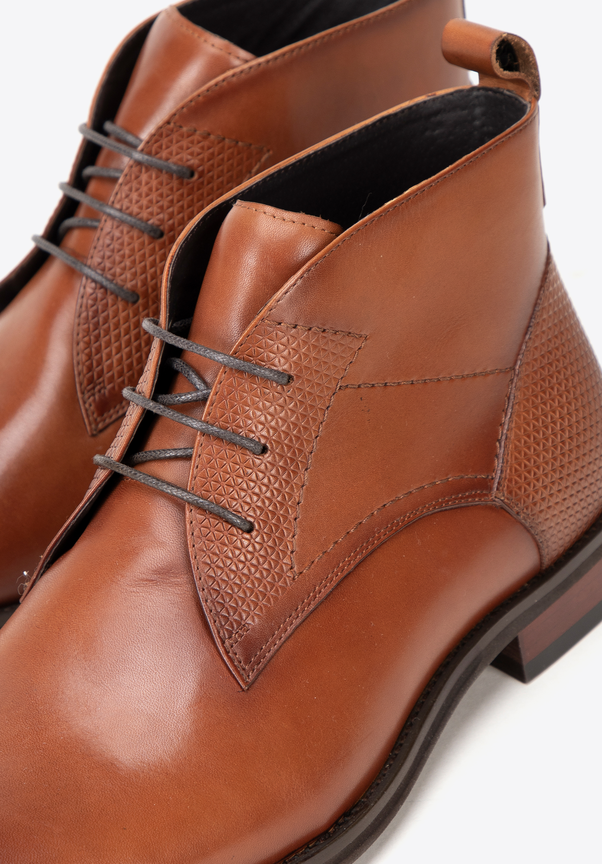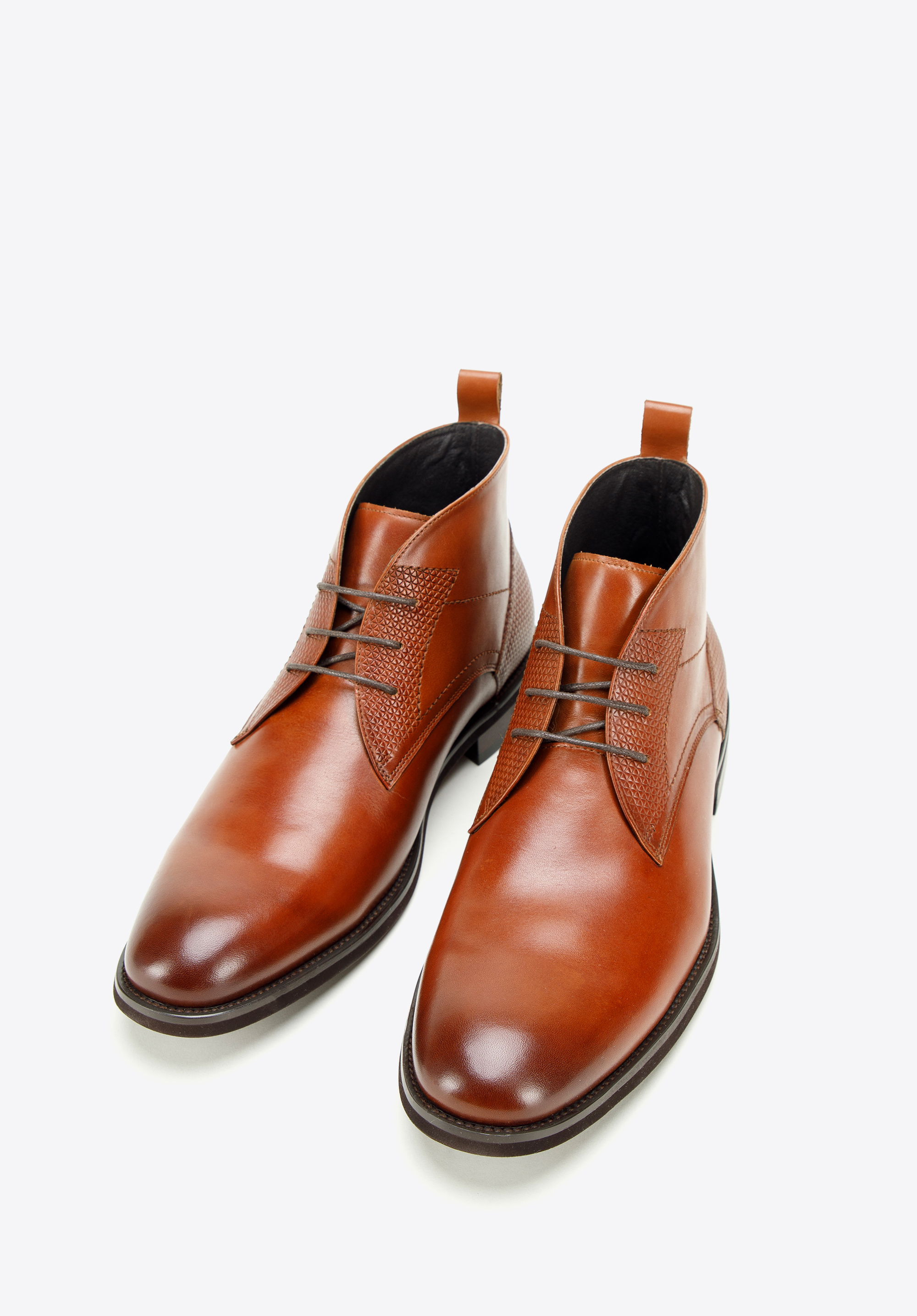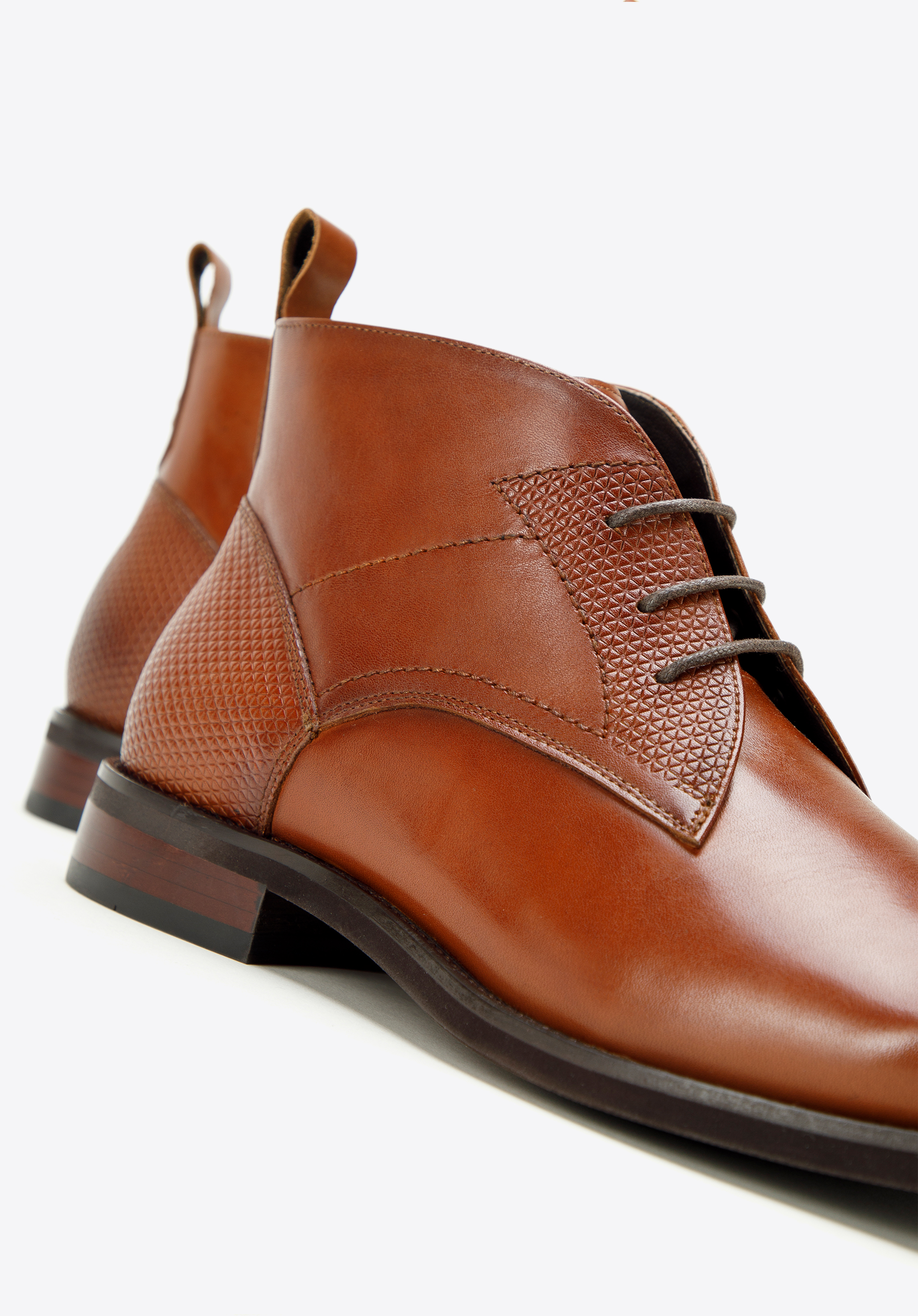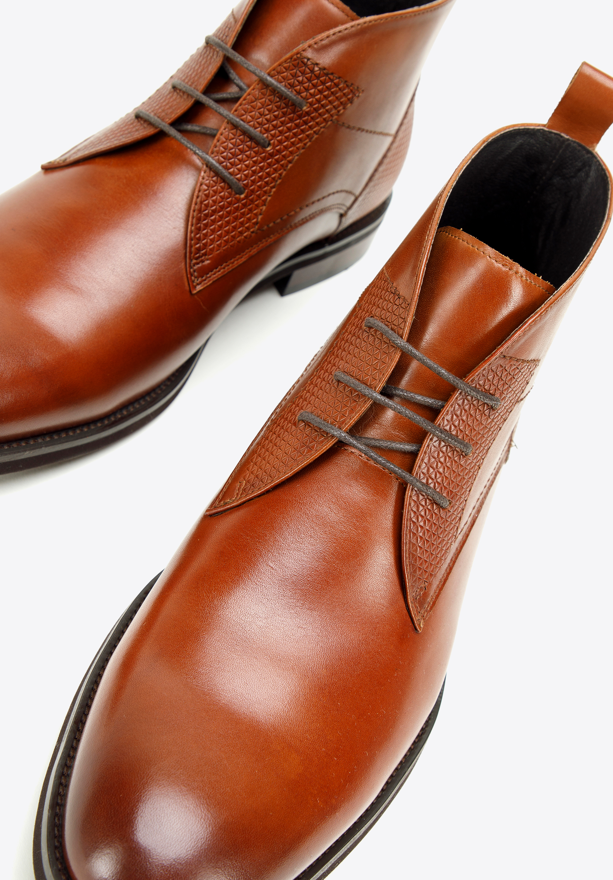 Tyto stylové pánské boty jsou perfektní volbou na jaro a podzim pro každého muže. Vyrobeny z vysoce kvalitní přírodní kůže, vyznačují se klasickým střihem, který byl zpestřen ozdobnými vsadkami s geometrickým vzorem. Tyto detaily nejen vyniknou, ale také podtrhnou eleganci svého nositele.