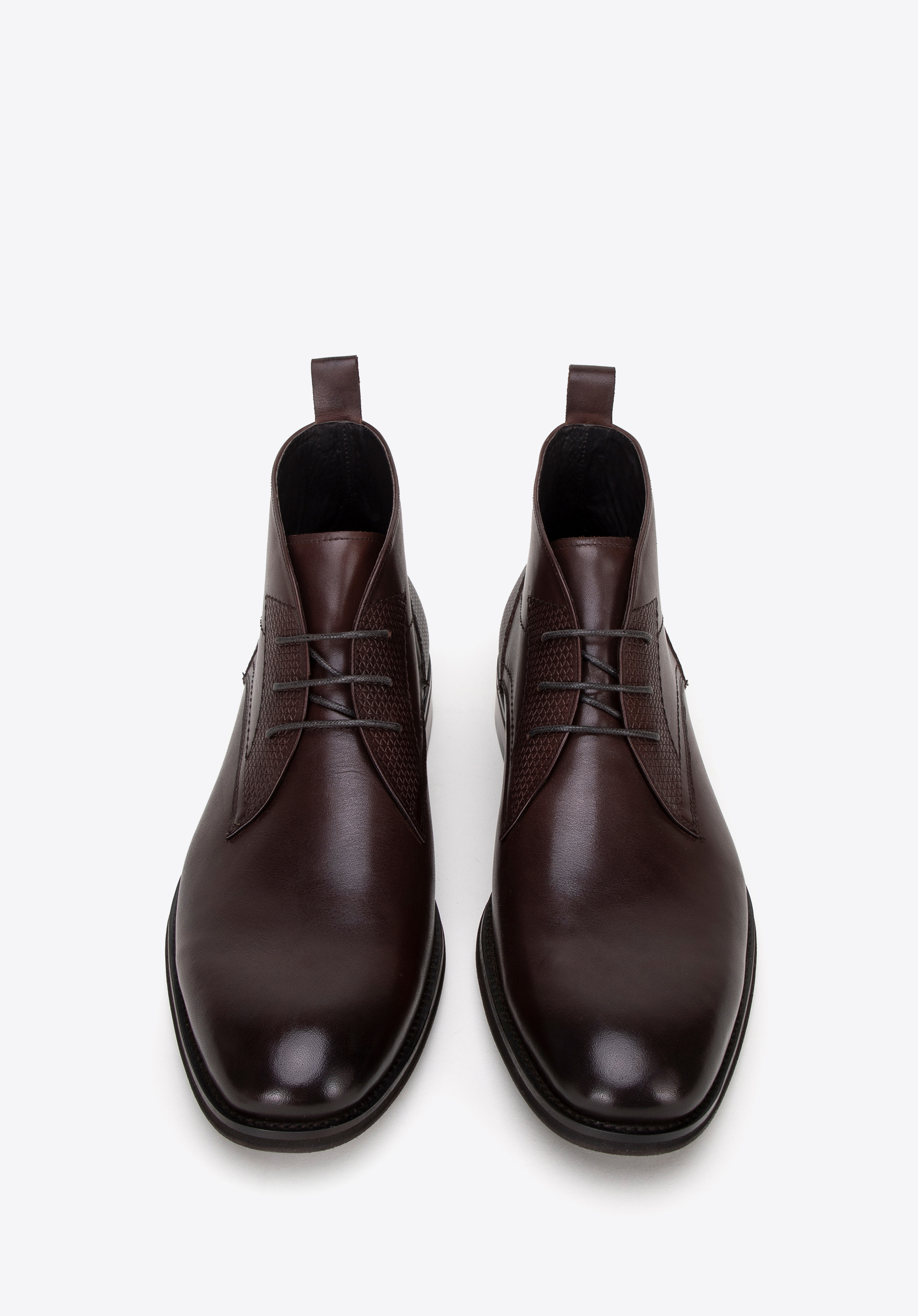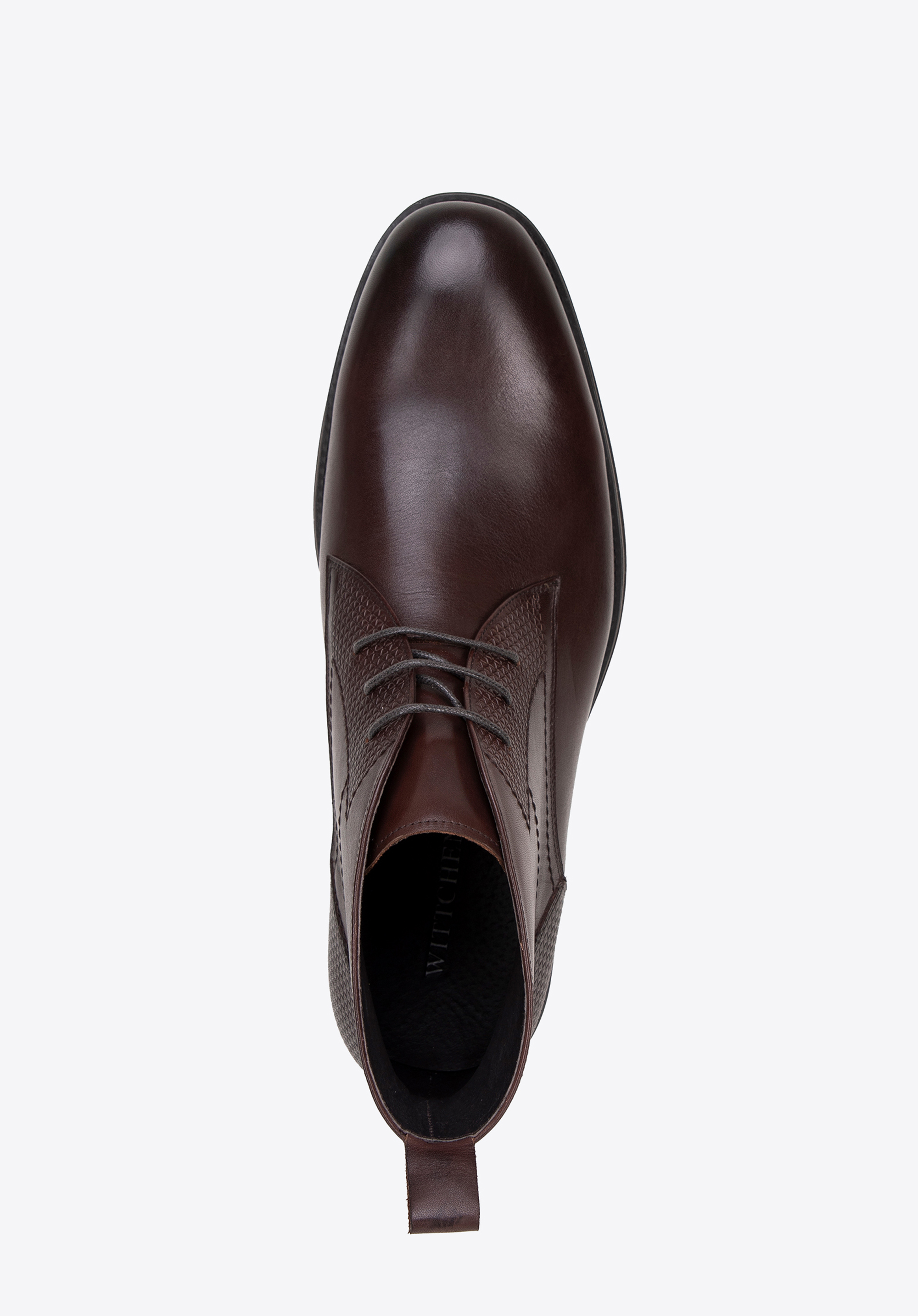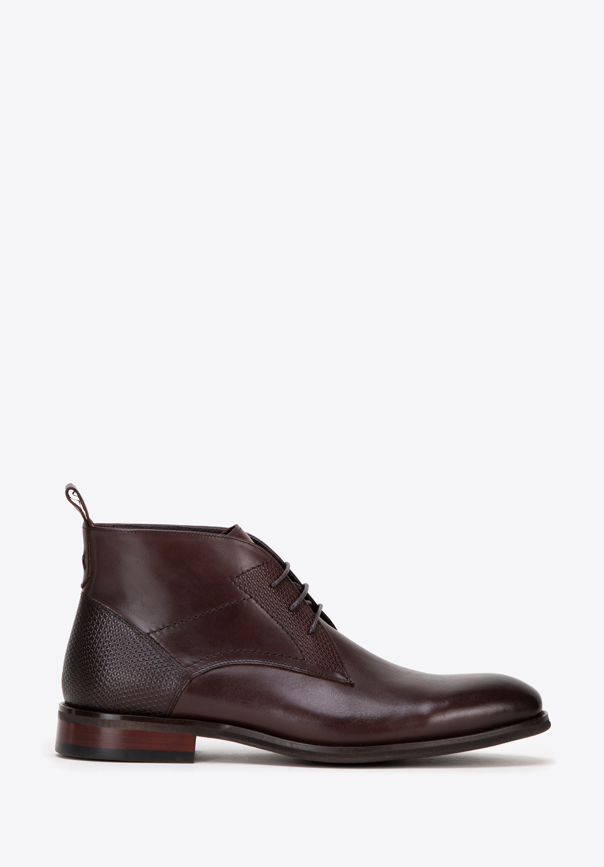 Tyto stylové pánské boty jsou perfektní volbou na jaro a podzim pro každého muže. Vyrobeny z vysoce kvalitní přírodní kůže, vyznačují se klasickým střihem, který byl zpestřen ozdobnými vsadkami s geometrickým vzorem. Tyto detaily nejen vyniknou, ale také podtrhnou eleganci svého nositele.