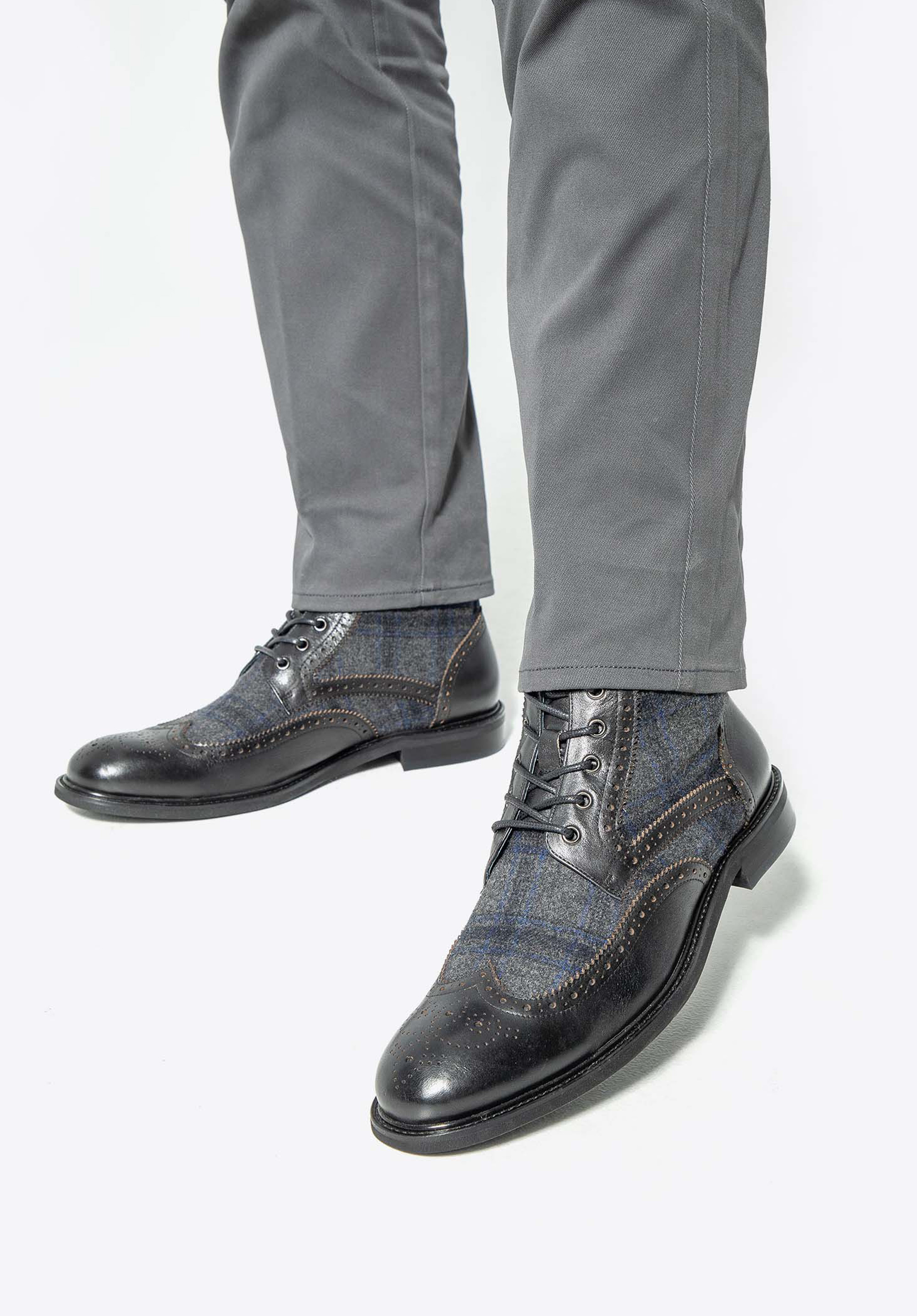 Pánské kožené kotníkové boty s perforací Barva: černá