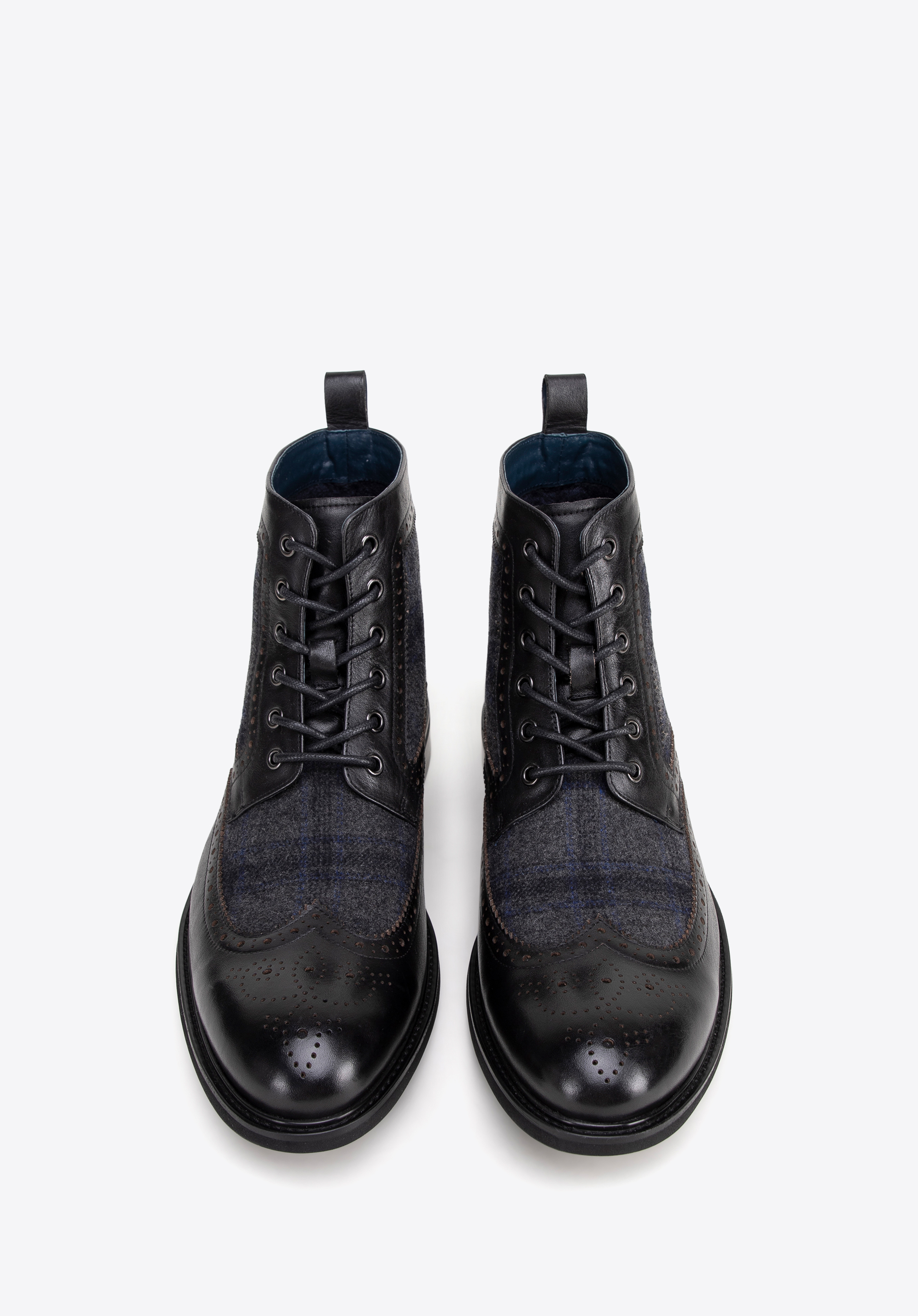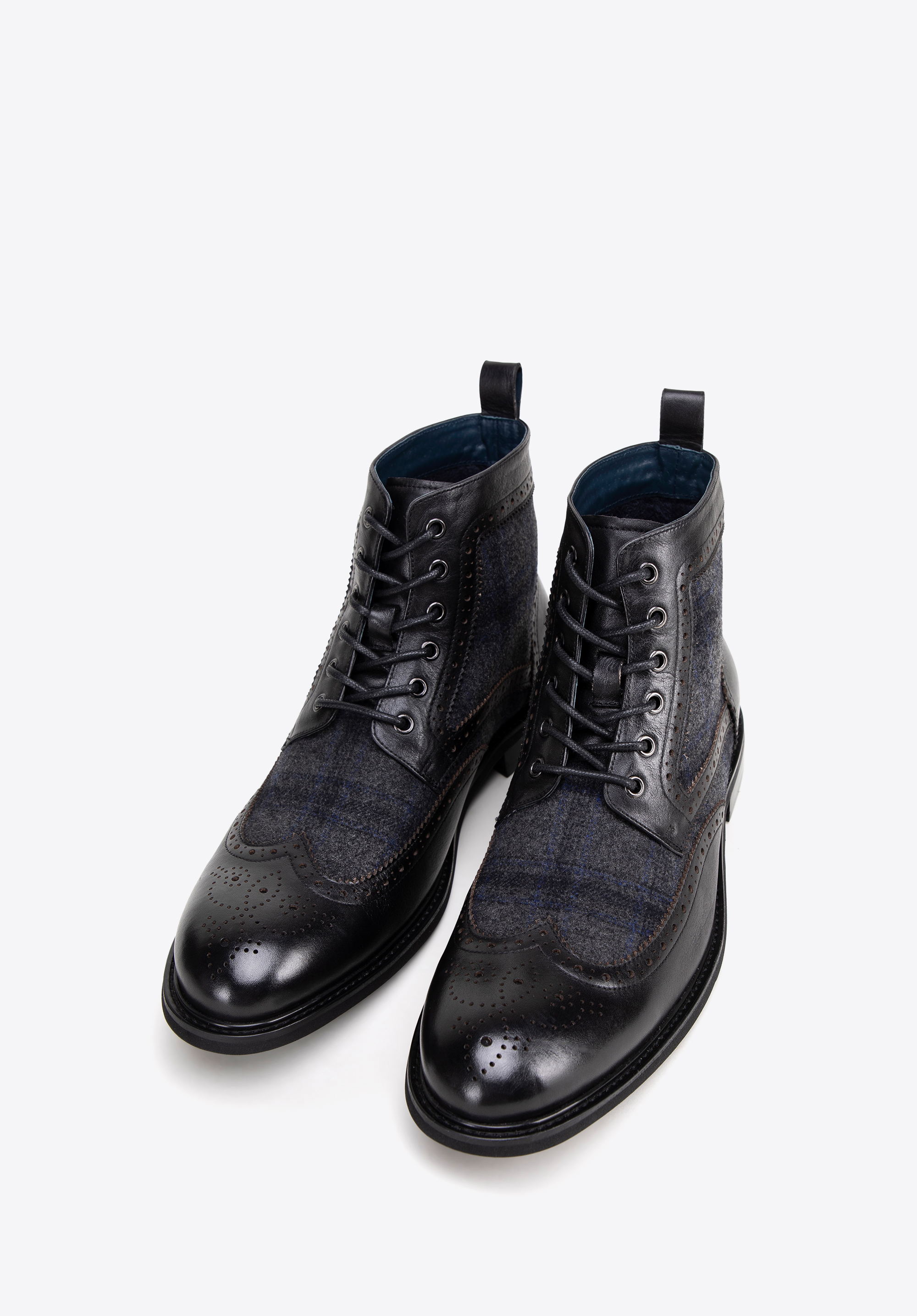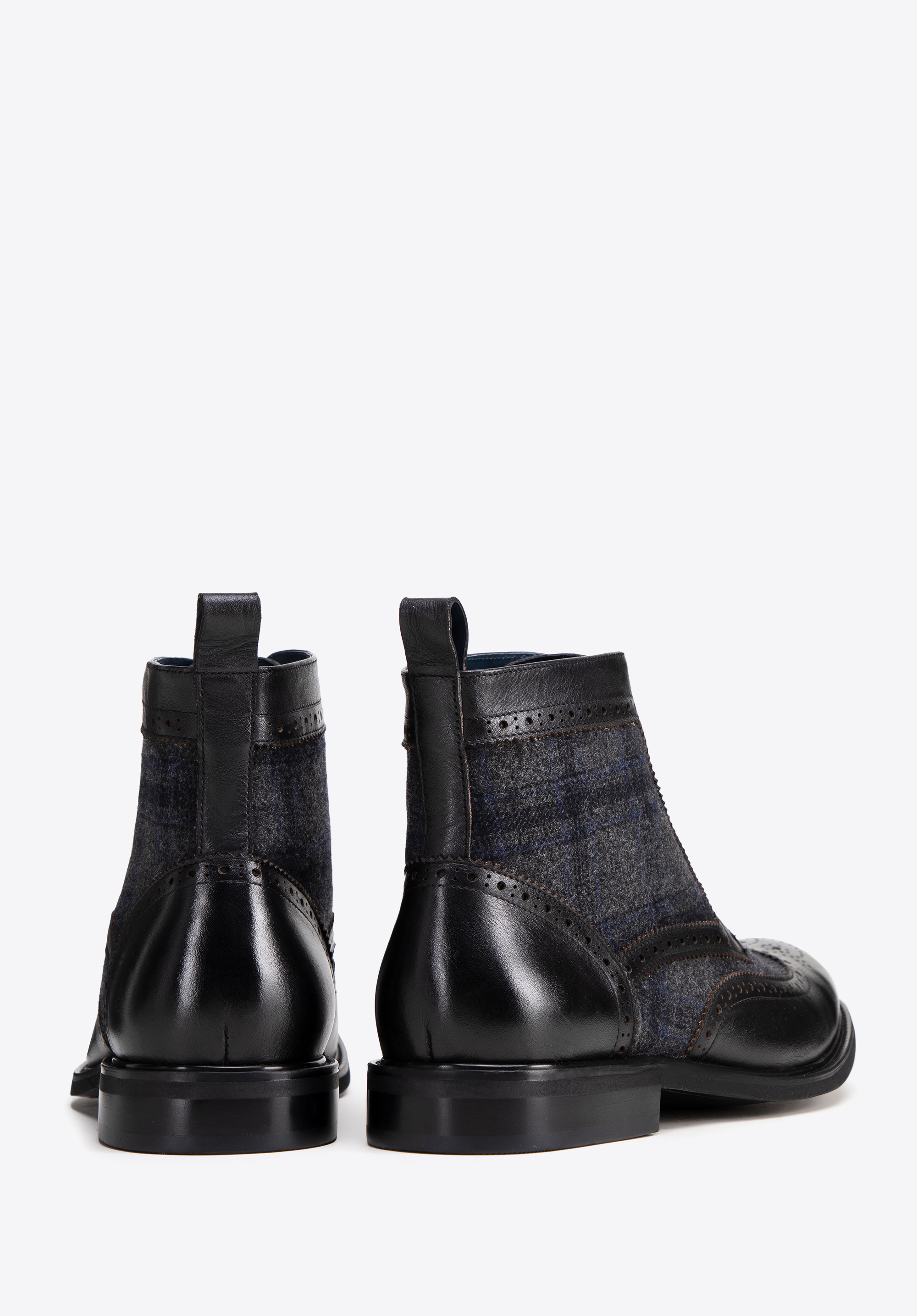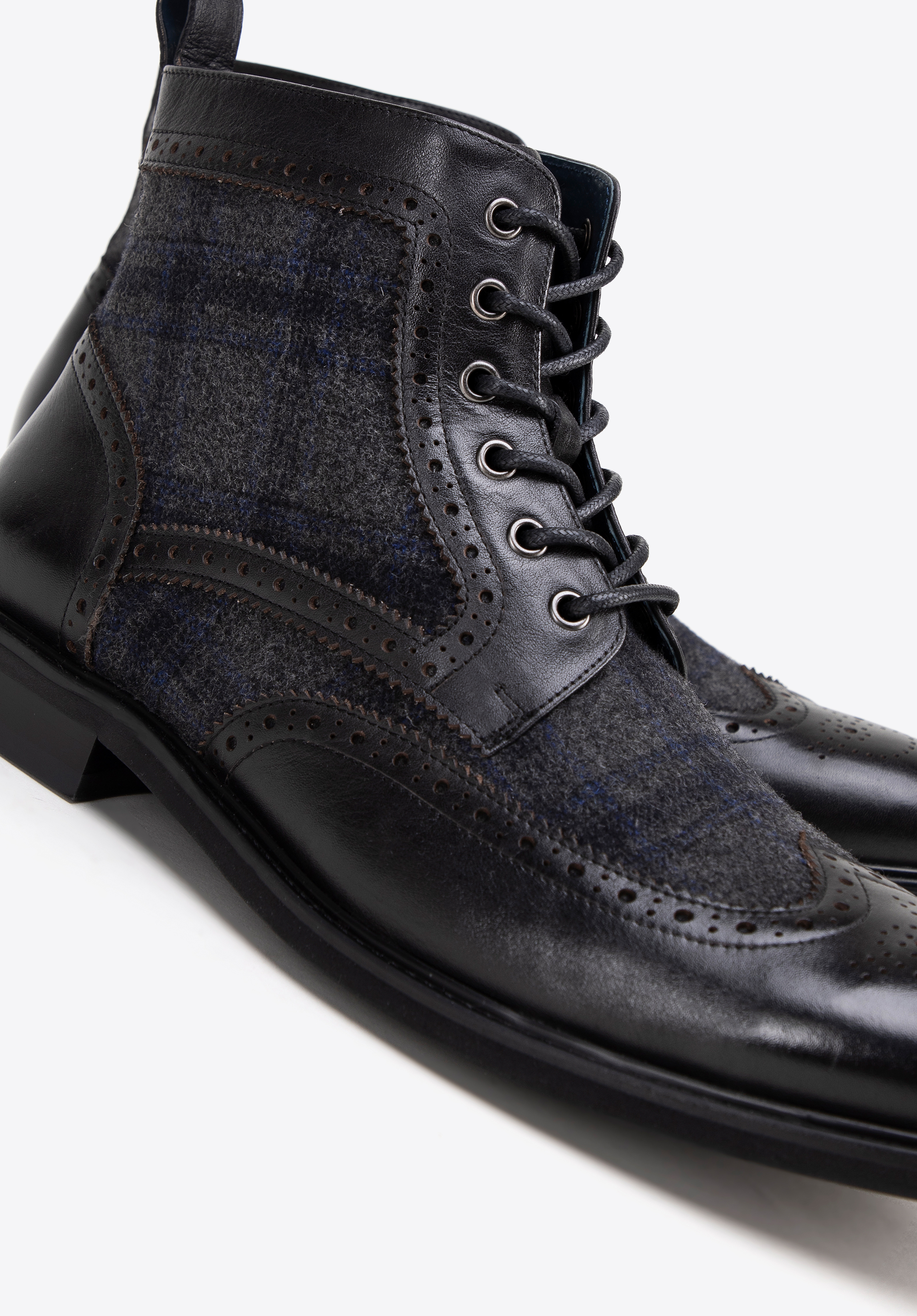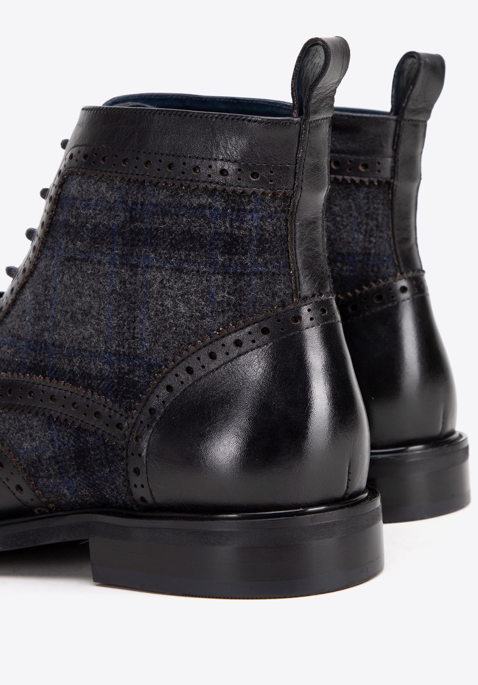 Detaily: Perforace na svršku a elegantní rybí vložky dodávají botám elegantní charakter a estetickou úpravu.