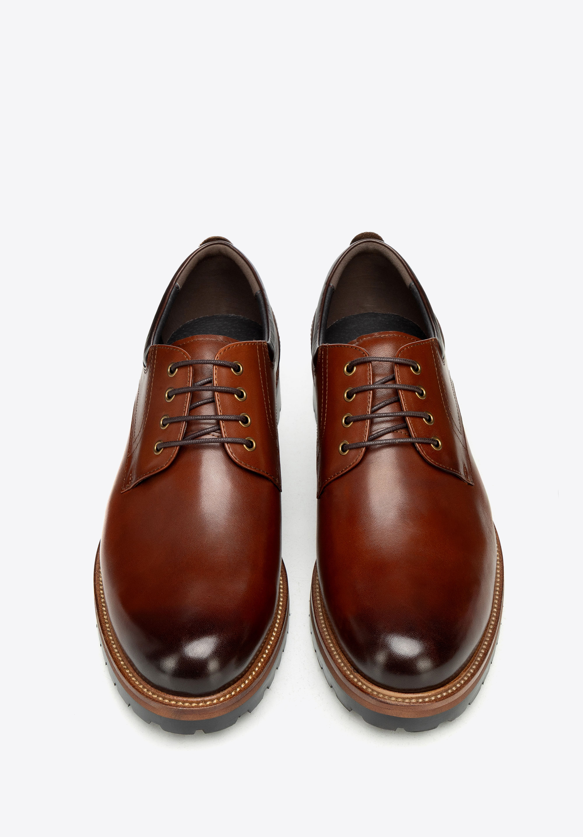 Zvolte nadčasovou eleganci a spolehlivé pohodlí s pánskými koženými botami vyrobenými z prémiové přírodní hovězí kůže . Jejich elegantní design v derby stylu dokonale spojuje klasickou estetiku s moderním charakterem, zatímco mandlový tvar špičky jim dodává rafinovaný a elegantní vzhled. Šněrovací svršek zajišťuje perfektní padnutí a plochý podpatek v kombinaci s robustní gumovou podrážkou ve stylu běžecké obuvi poskytuje stabilitu a jistotu při každém kroku.